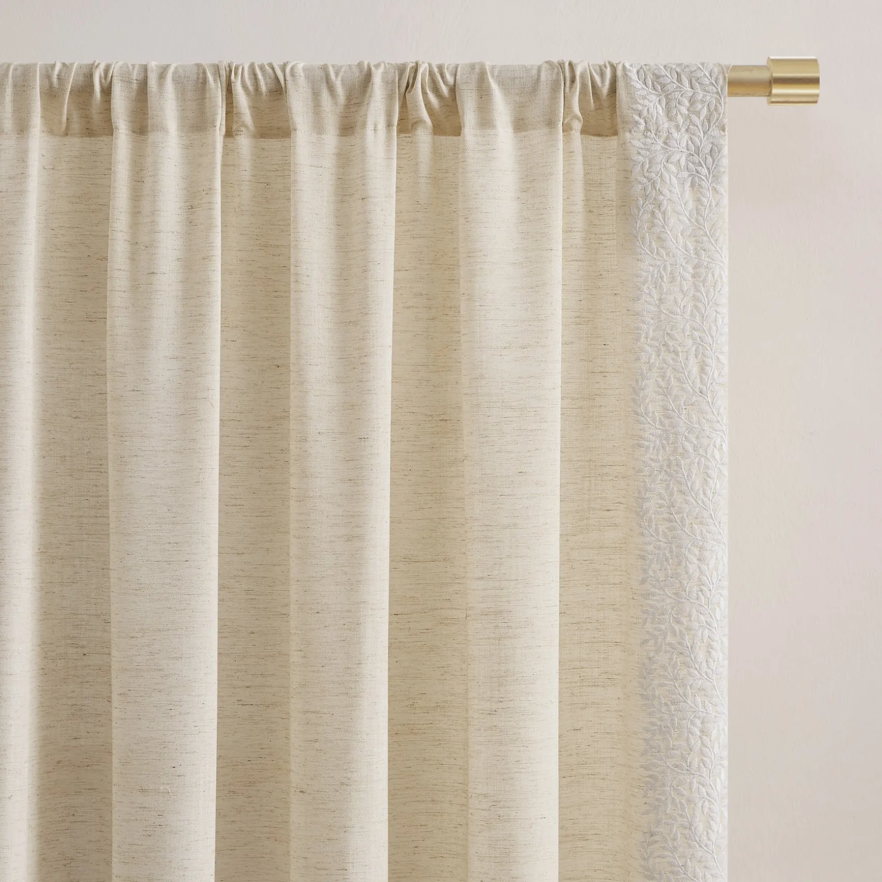 Adorn your windows with these chic drapes, featuring leaf embroidery. The 2-way rod pocket allows for versatile styling. They provide moderate privacy and help to filter sunlight. Each panel measures 52 inches wide by 84 inches long. Easy to install with a 3″ rod pocket, slide it onto a curtain rod or by using clip rings, not included. STANDARD 100 by OEKO-TEX® certified, all components have been tested and certified free from harmful substances. Dry clean recommended, see care label.