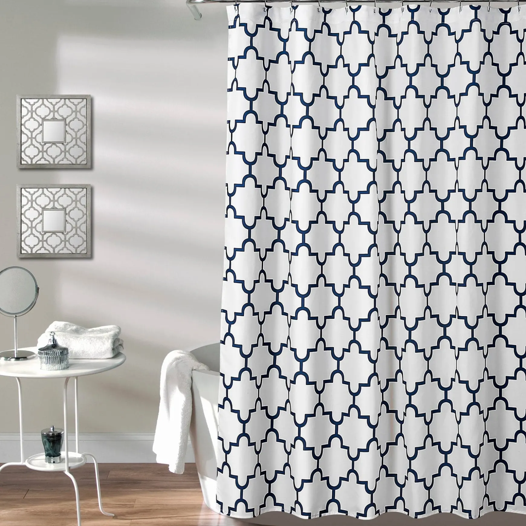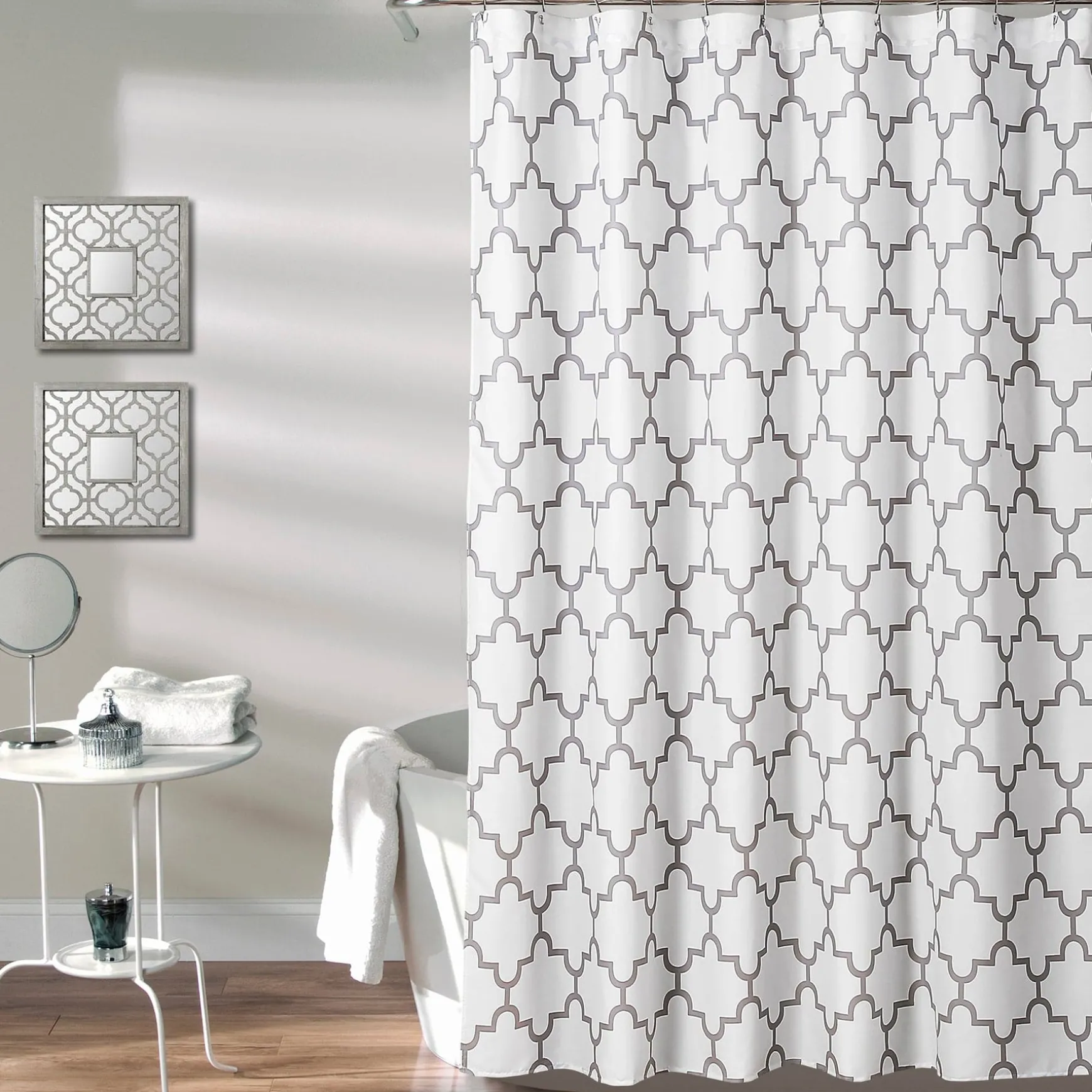 This Bellagio Shower Curtain creates an interesting and eye-catching look in your home with a distinct trellis pattern. The style is sure to turn heads, but the serene look of this shower curtain will not overwhelm your space.