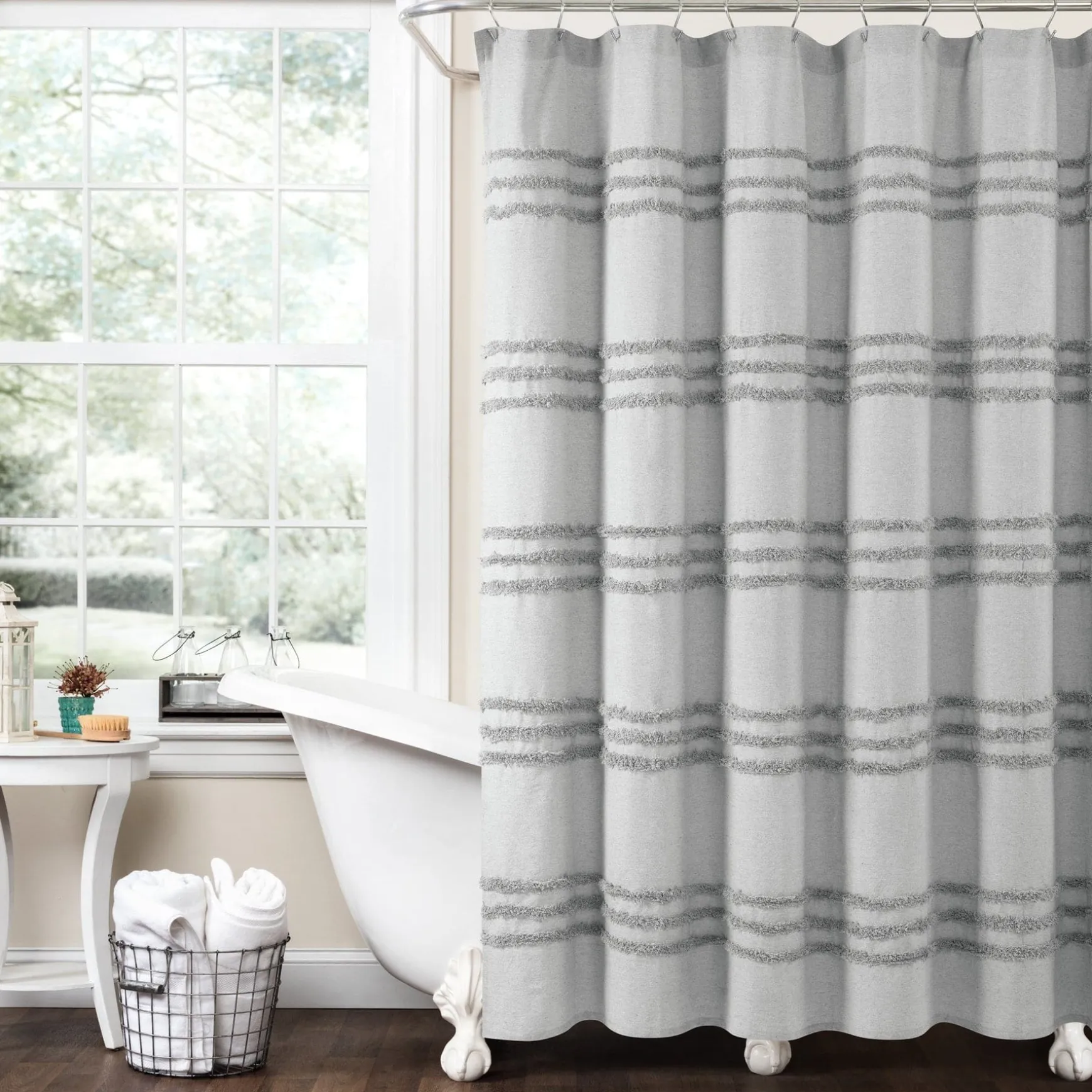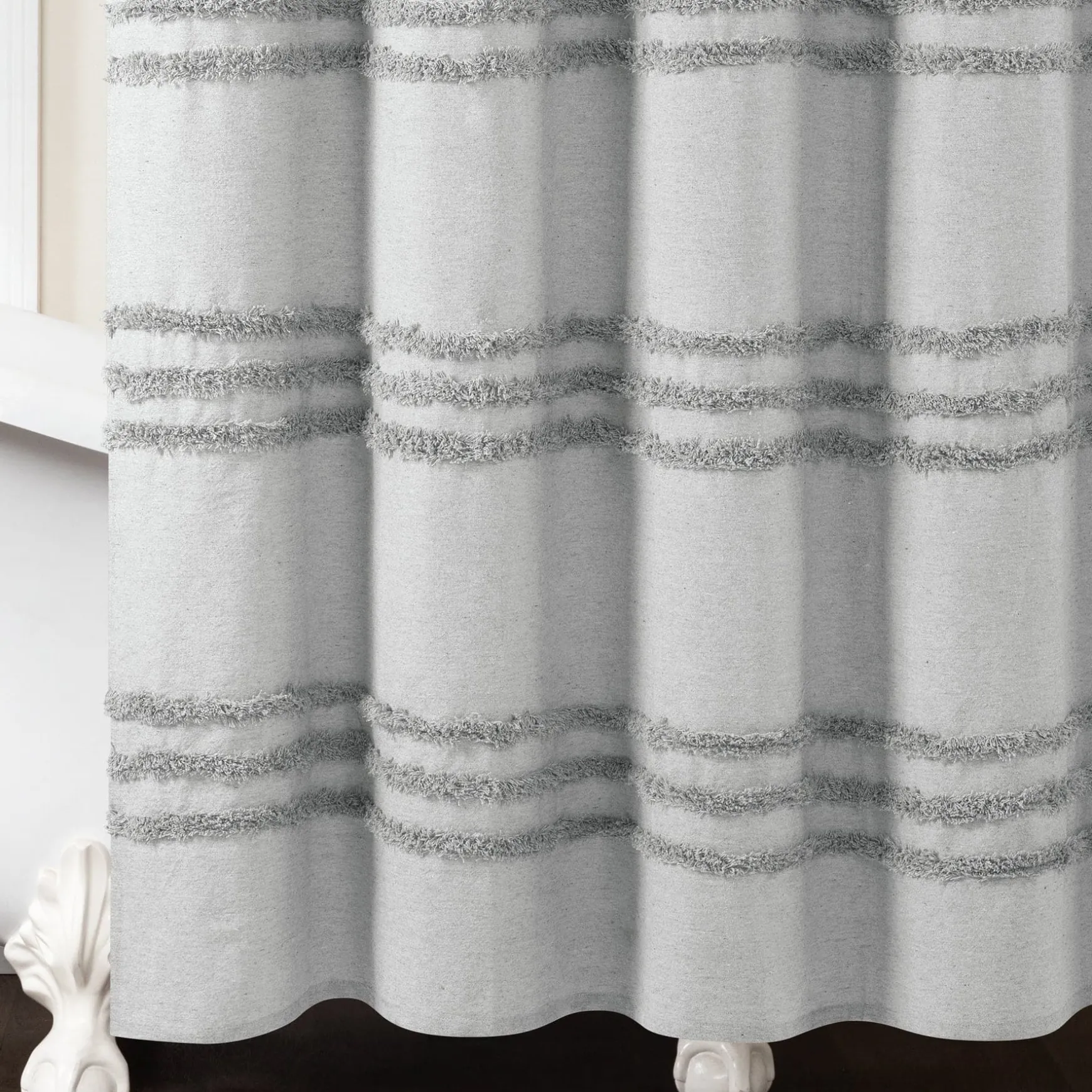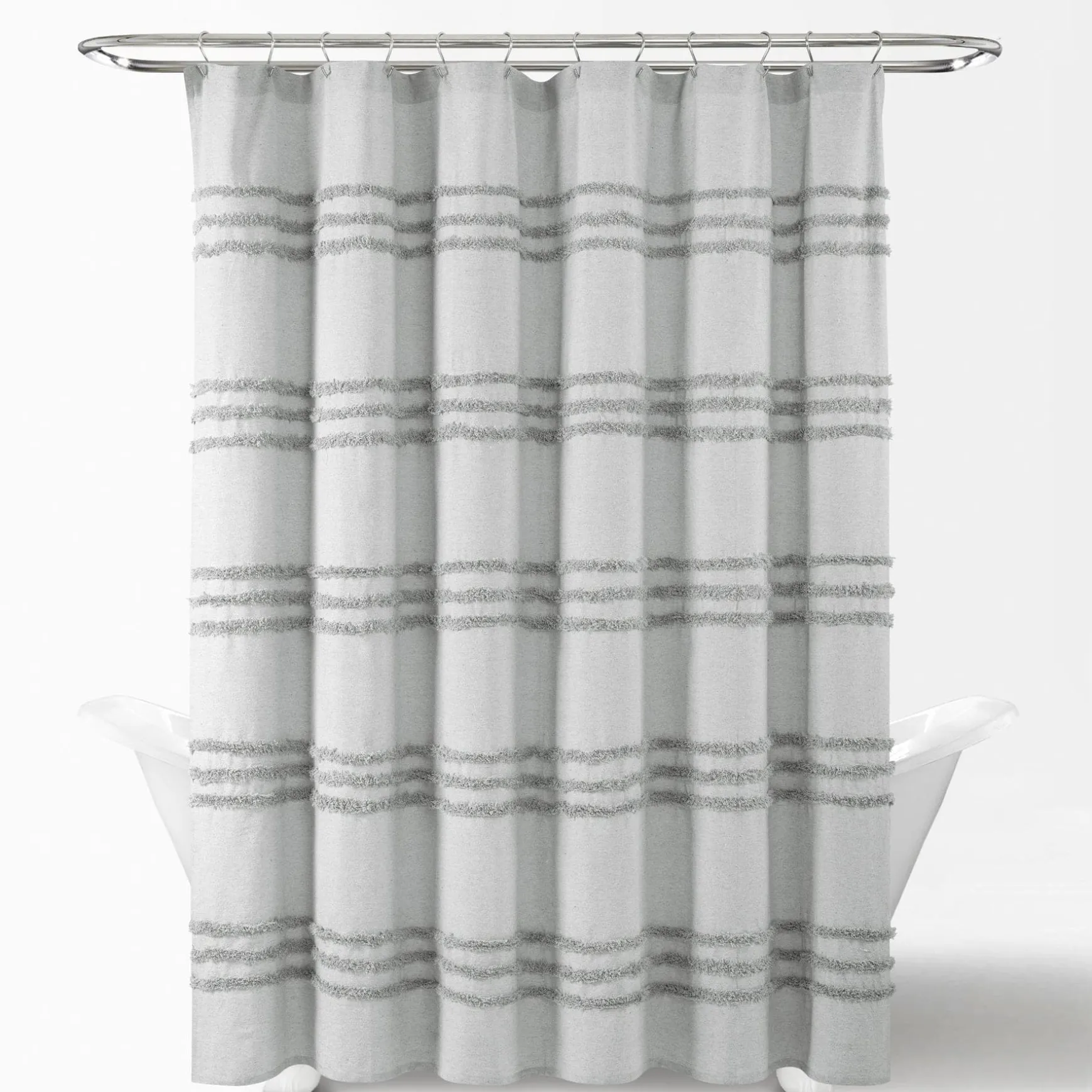 Update your bathroom design with some texture! This Boho Kendra Tufted Yarn Dyed Recycled Cotton Blend Shower Curtain enhances your space with simple stripes that make a stylish impact and easily coordinates with existing decor, while the recycled cotton fabric helps the environment.