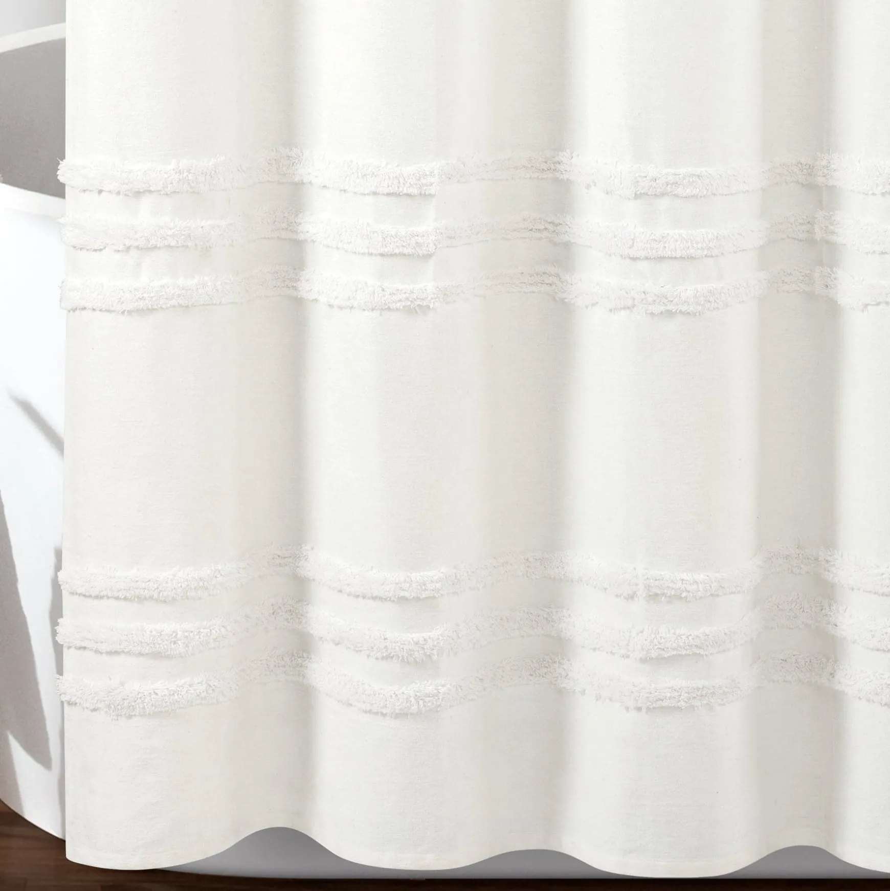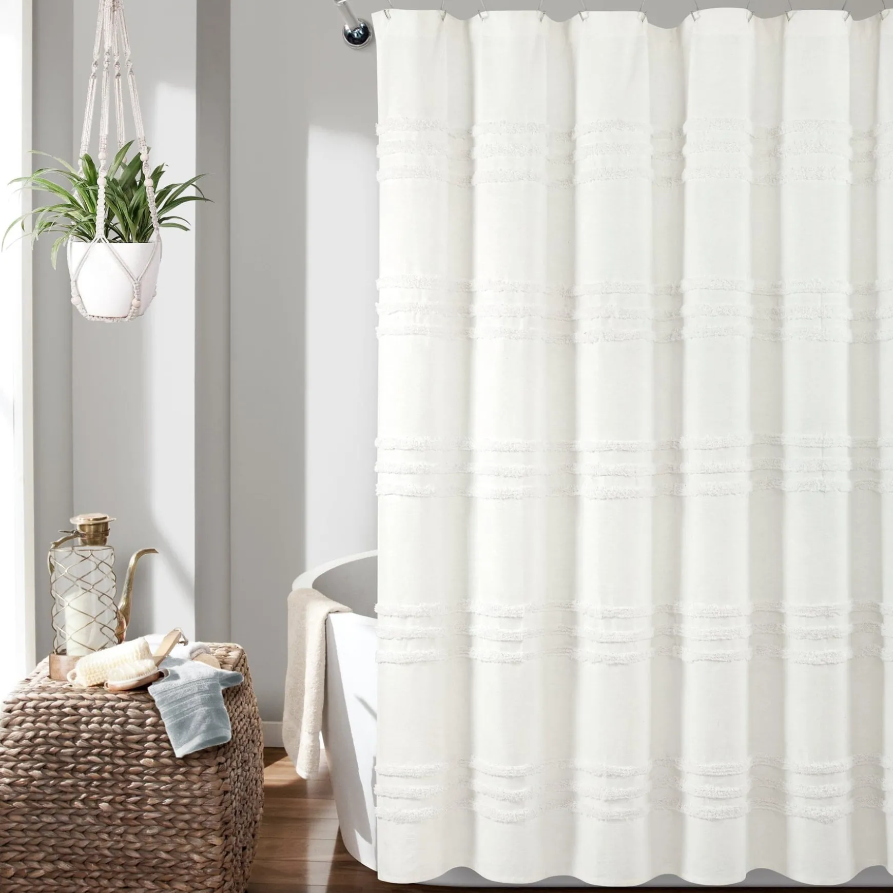 Create a space that reflects a style as unique as your character. Made with eco-friendly recycled cotton, this Boho Kendra Tufted Yarn Dyed Recycled Cotton Shower Curtain will add chic boho vibes to your bathroom decor. With its unique style and dimensional stripe pattern, you’ll love coordinating this piece with similar accessories to show off your eclectic personality.