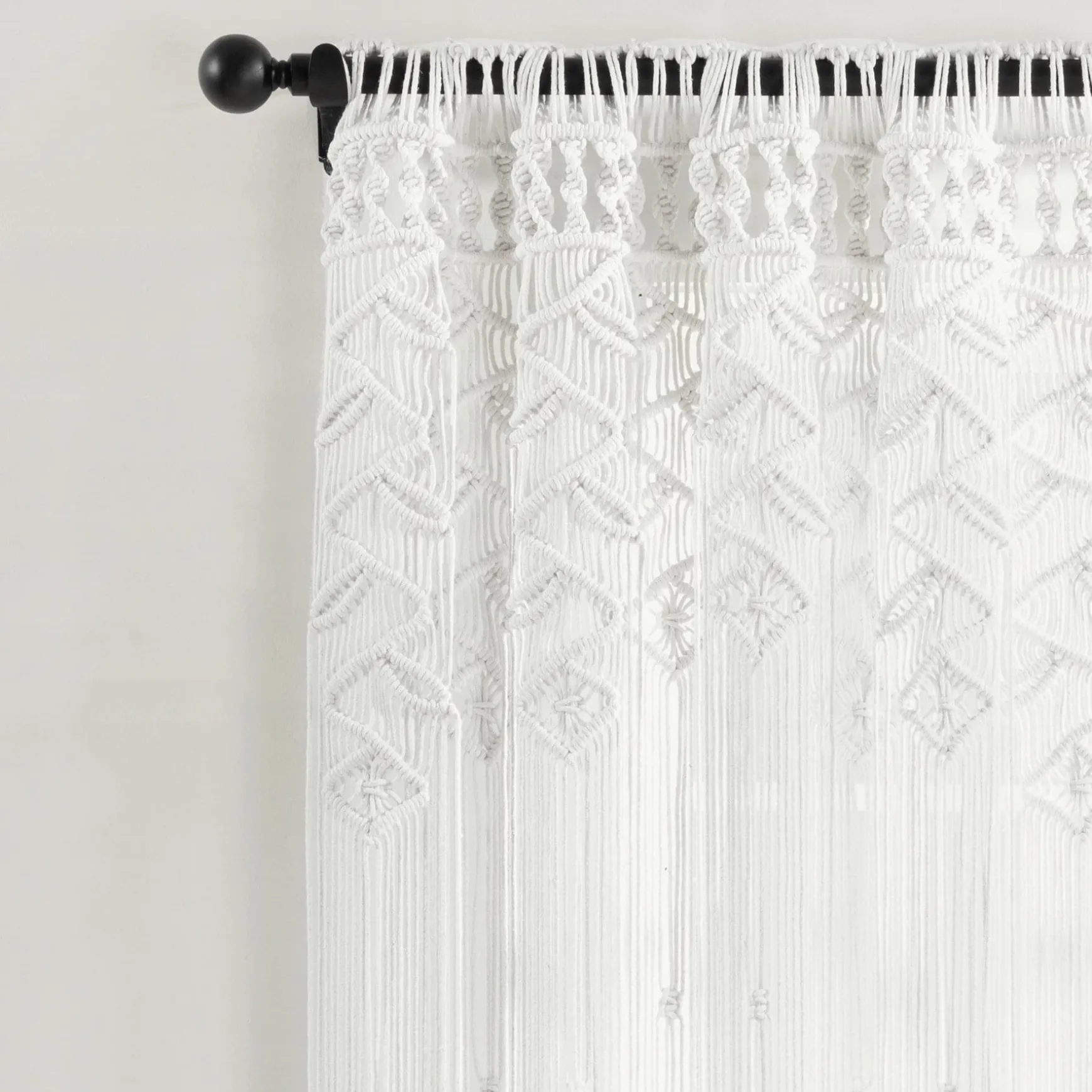 Macrame home decor is always in style. The swoon-worthy look and texture of this Boho Macrame Leaf Cotton Window Curtain makes it easy to see why. Each hand woven knot contributes to the creation of a falling leaf within the overall pattern.