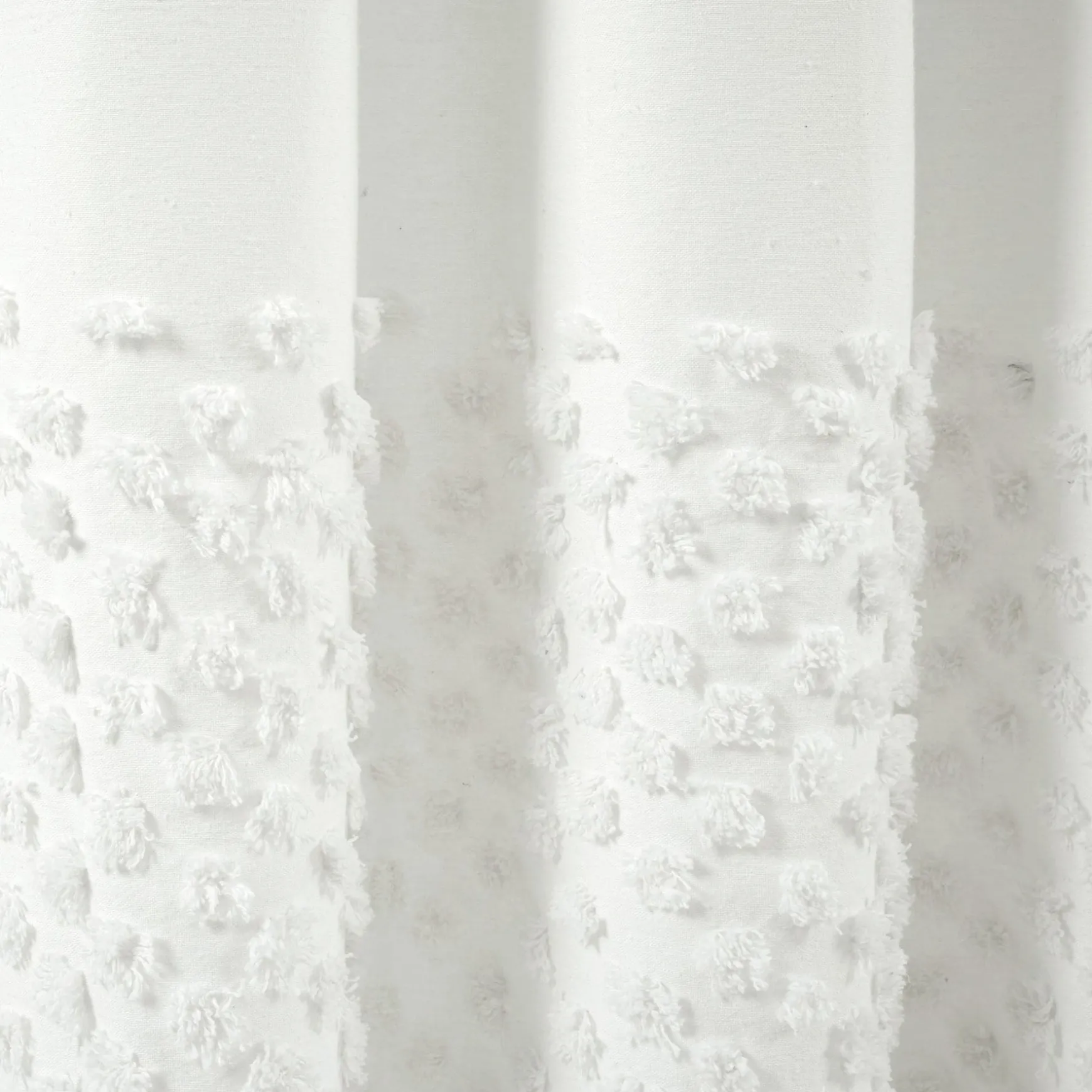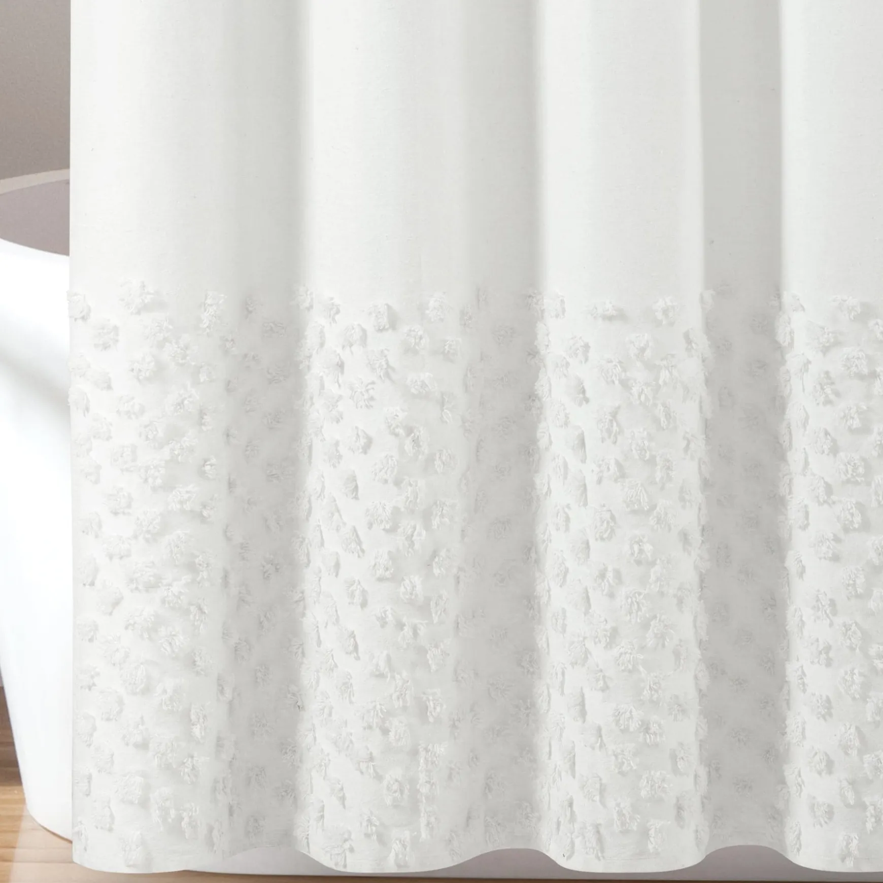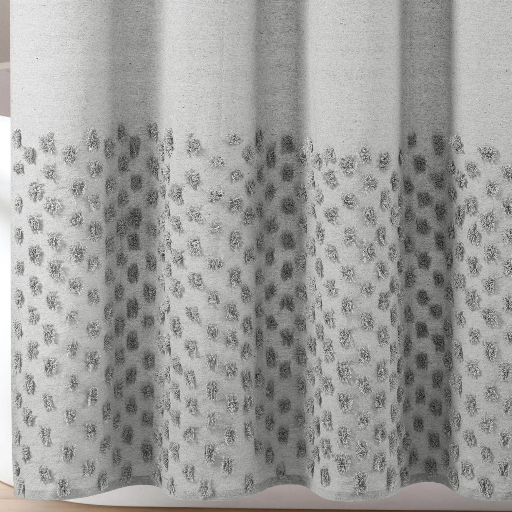 The oversized polka dot border brings texture to your bathroom design. With its yarn dyed solid colors, this Boho Polka Dot Yarn Dyed Recycled Cotton Shower Curtain is easy to style and coordinate for a finished look.