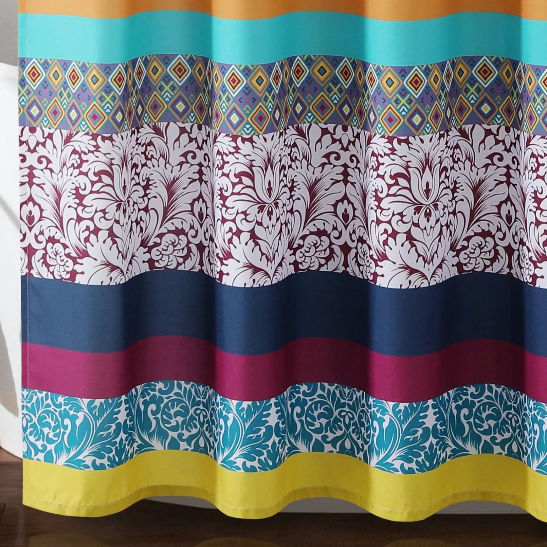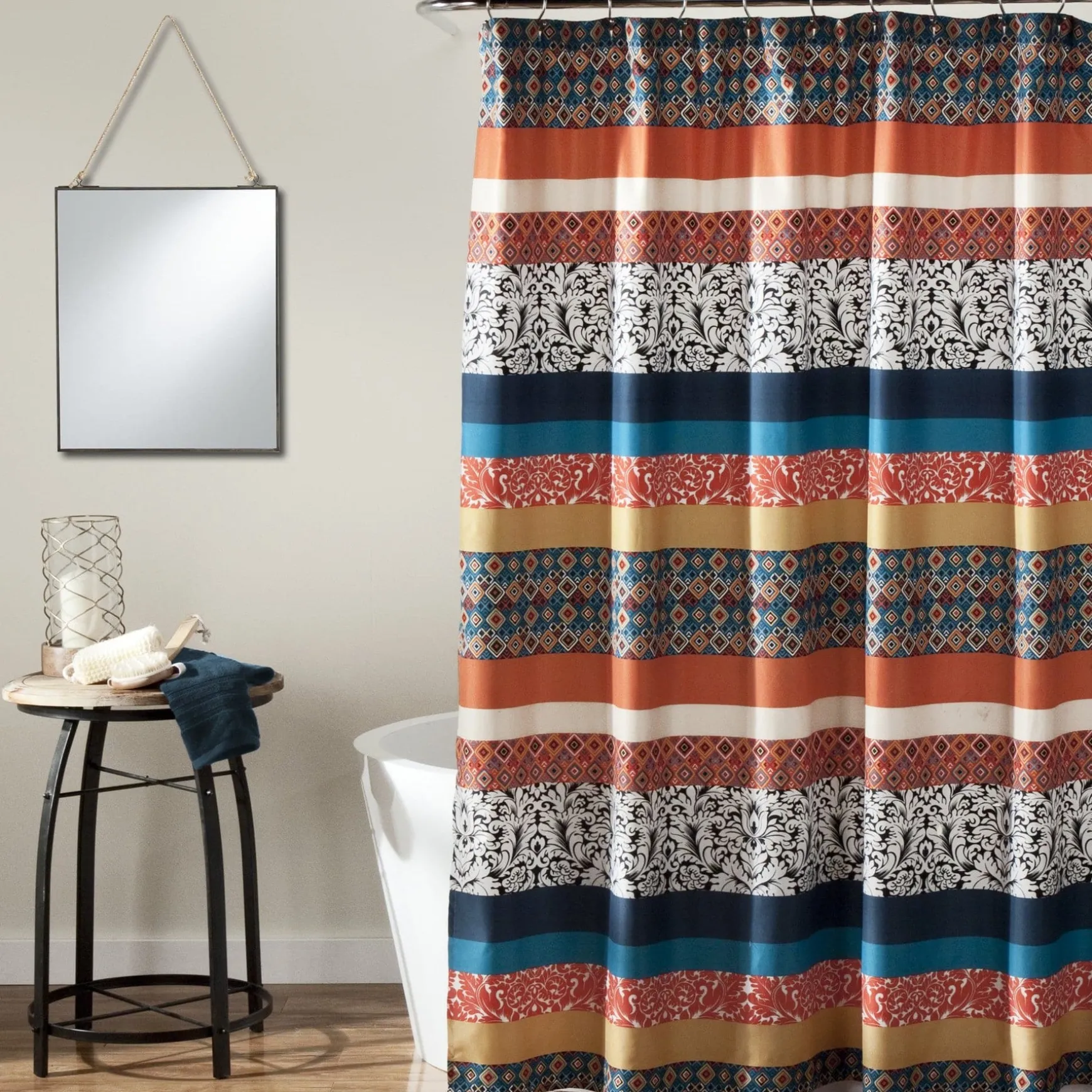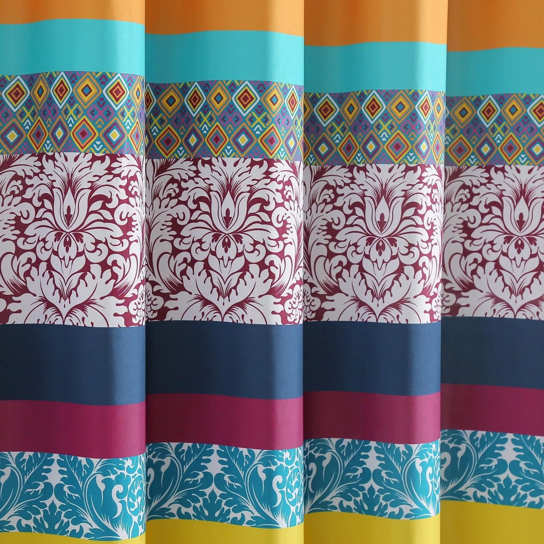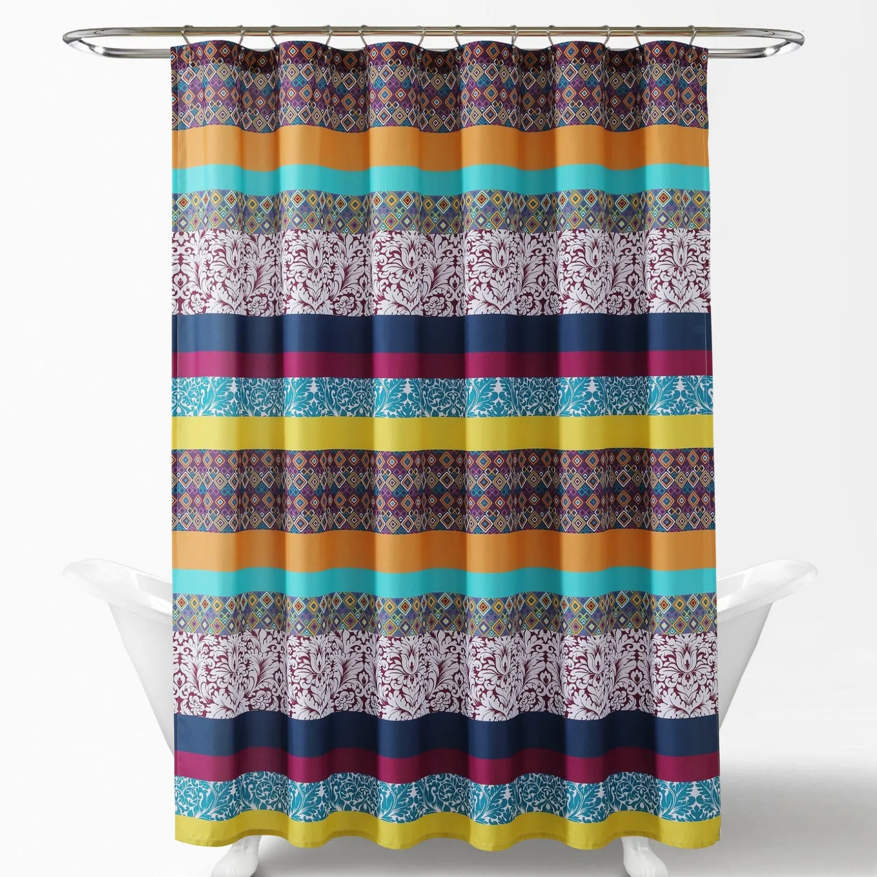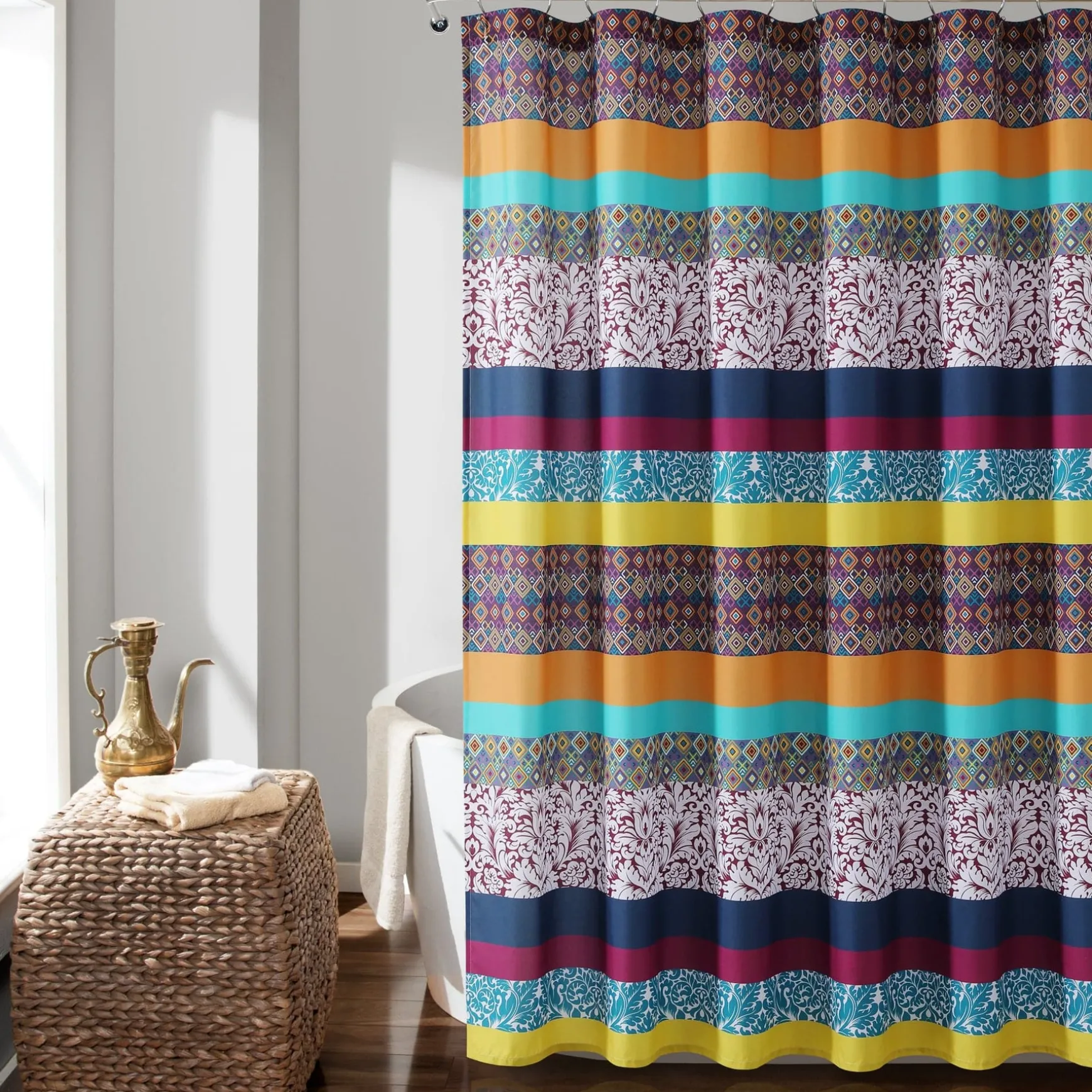 Measuring 72 inches on each side, the Boho Stripe Shower Curtain will fit nearly any bathtub. Its bold colors and unique patterns will instantly enhance the look of your space.