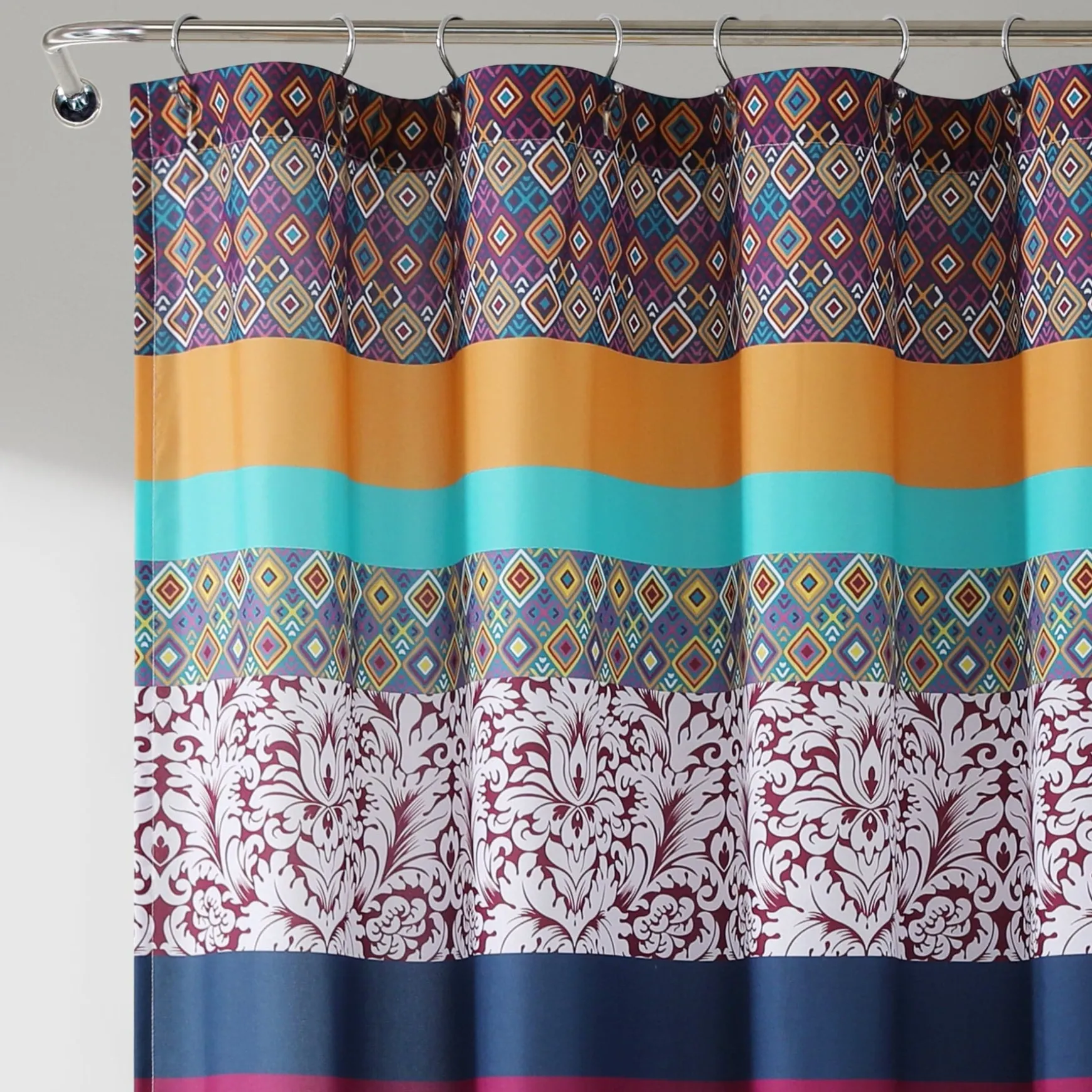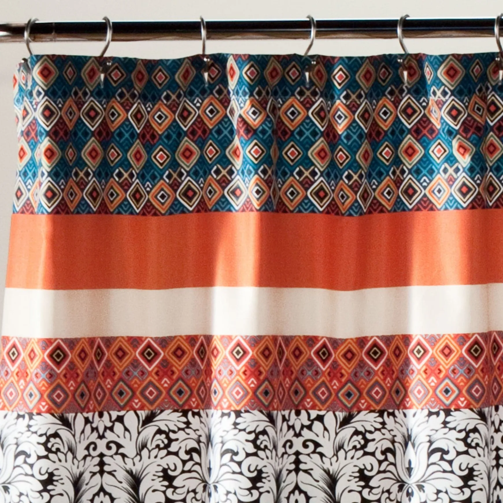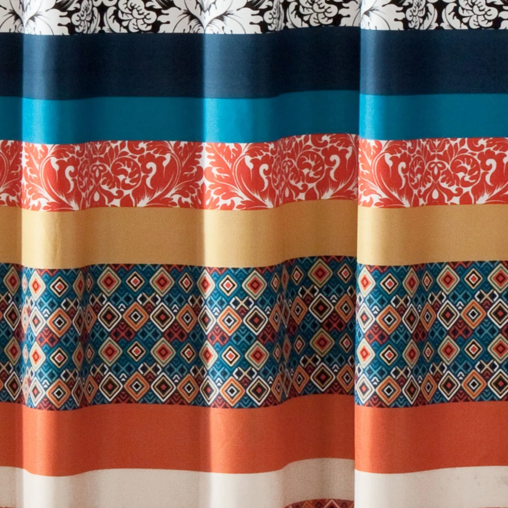 Lush Decor has enhanced its products for your health and well-being. This Boho Stripe Shower Curtain in Turquoise/Tangerine is STANDARD 100 by OEKO-TEX® certified, which means the fabric, dyes and all components have been tested in an independent laboratory and certified against a list of more than 350 harmful substances.