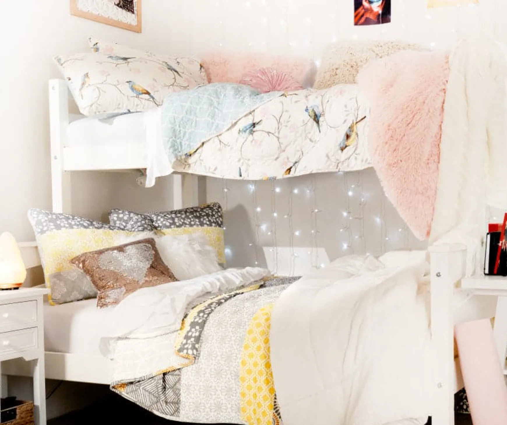 Turn your bedroom into a nature oasis. The nostalgic colors are easy to style and coordinate, and the reversible design means you can switch up your look in seconds. This Botanical Bird & Flower Quilt 3 Piece Set is perfect for a homey vintage aesthetic.