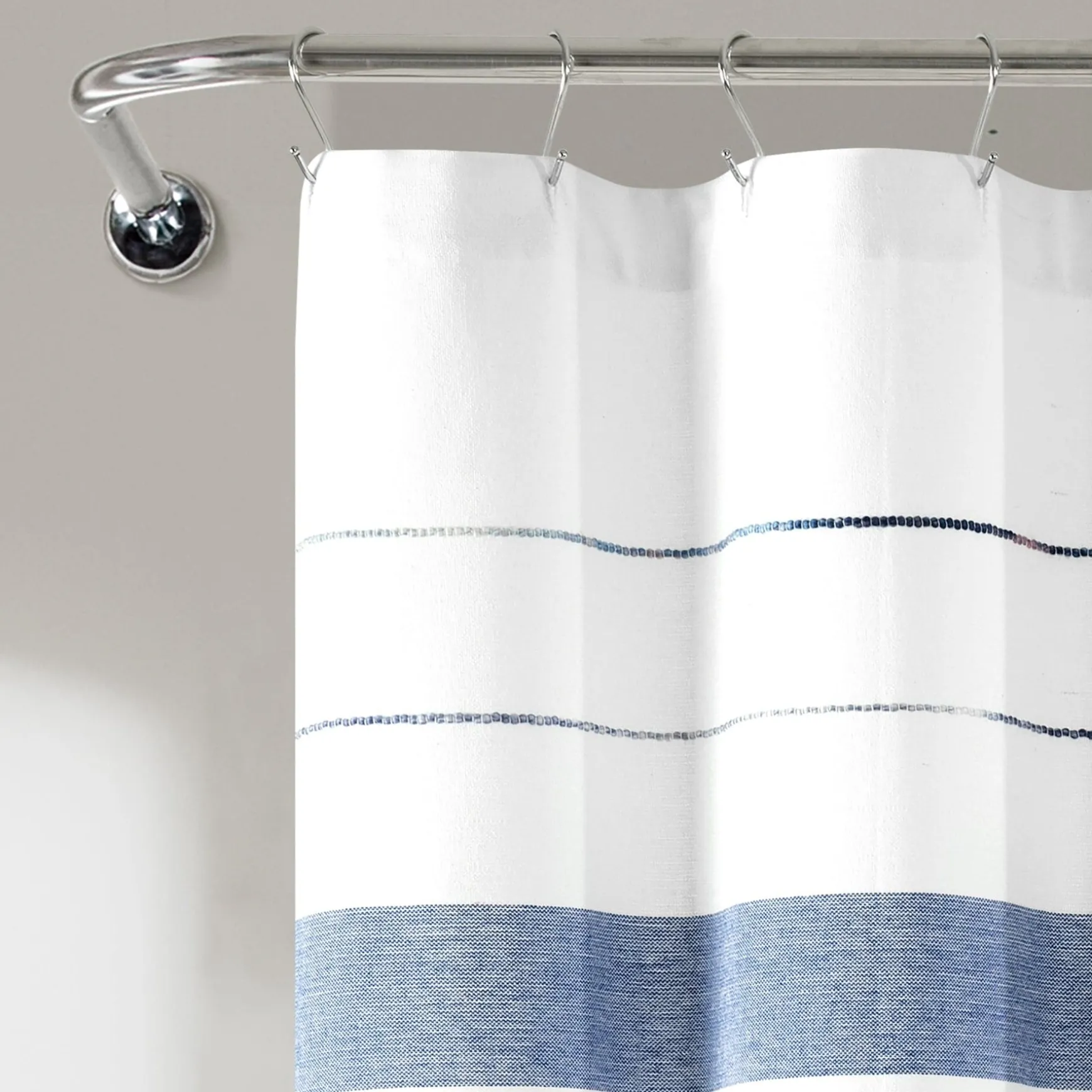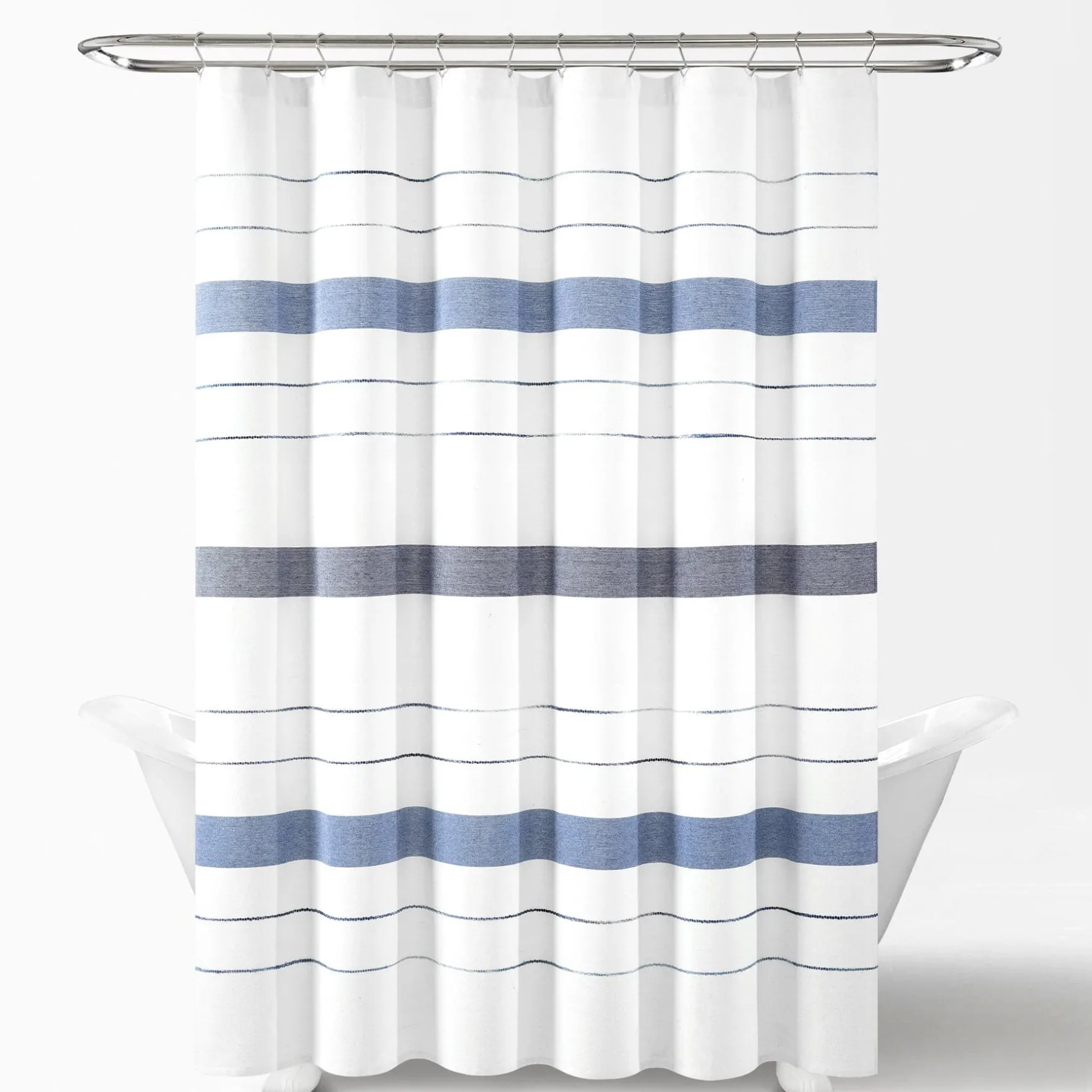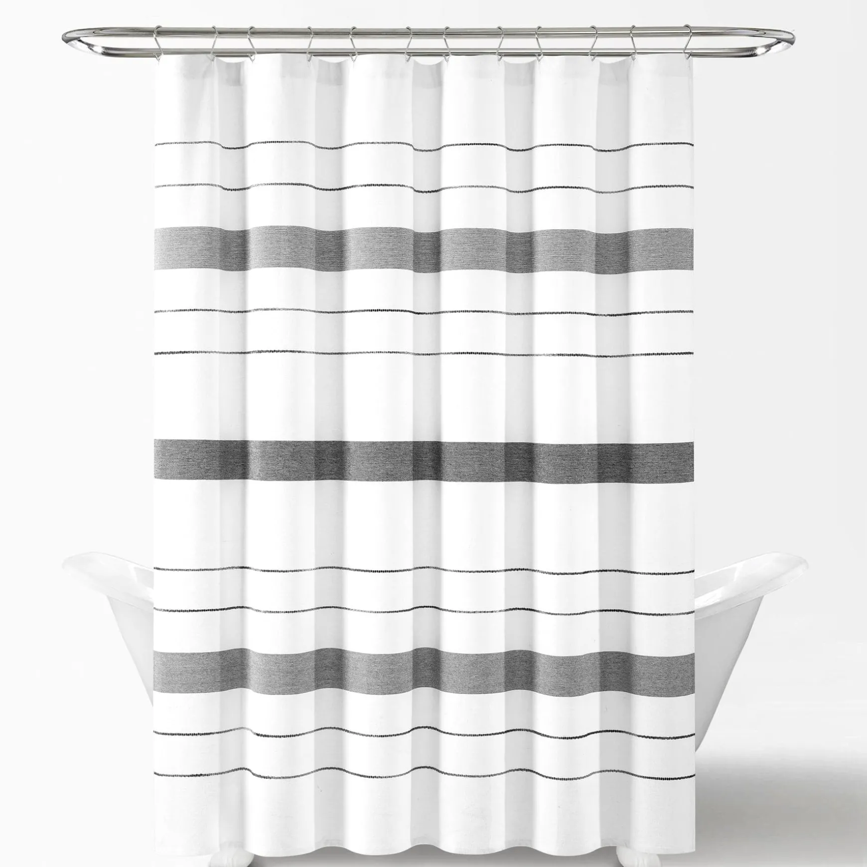 This Chic Stripe Yarn Dyed Eco-Friendly Recycled Cotton Shower Curtain adds tremendous style to your primary or guest bathroom without taking over the design. Measuring 72 inches on each side, this stylish shower curtain will fit most any bathtub and installs easily with standard shower curtain rings or hooks. Its opacity adds full privacy to the person taking a bath or shower.