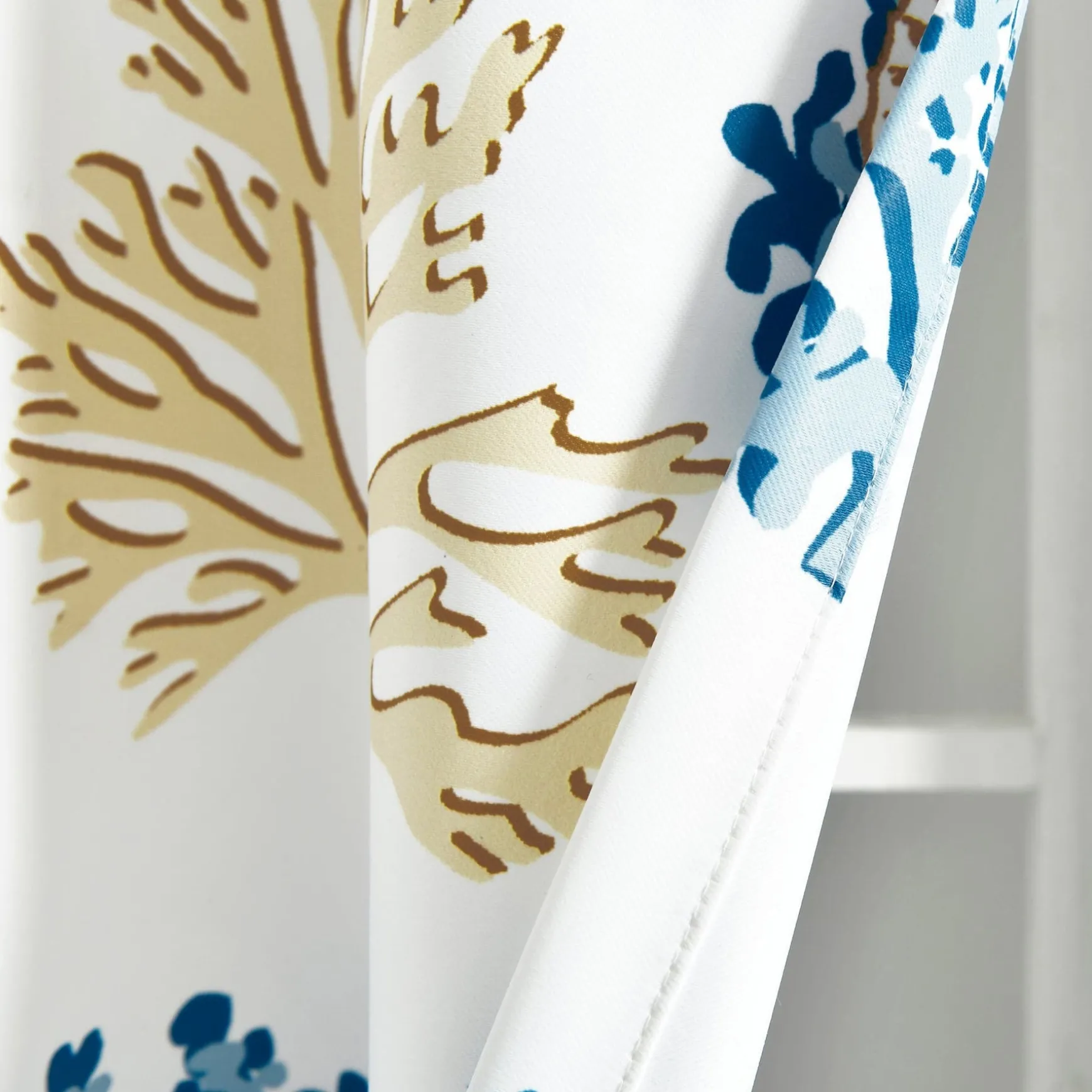 This coastal print design adds a fashionable look to your bedroom, nursery, living room, dining room, or home office. Use this Coastal Reef Feather Light Filtering Window Curtain Panel Set in your own home or in your vacation home. Pair it with the rest of our Coastal Reef Feather Collection for a well-coordinated design.