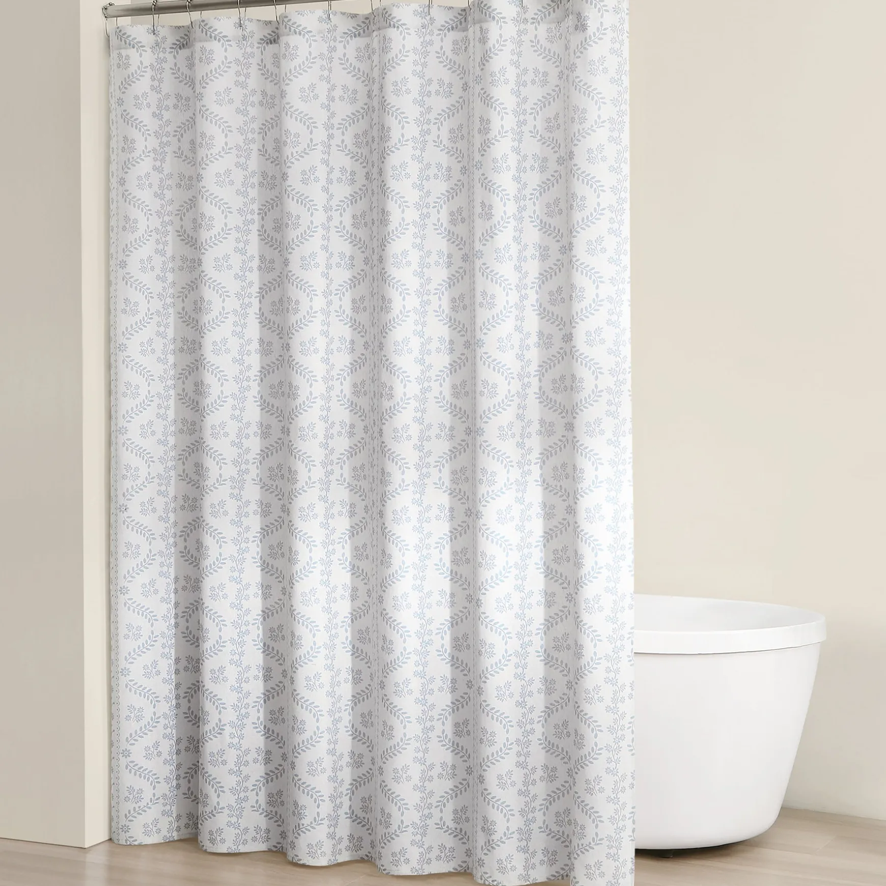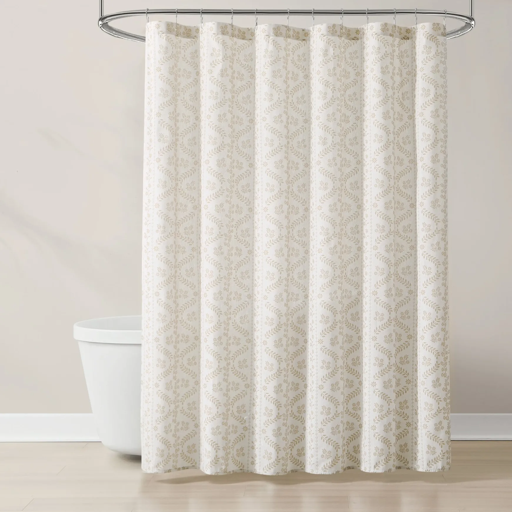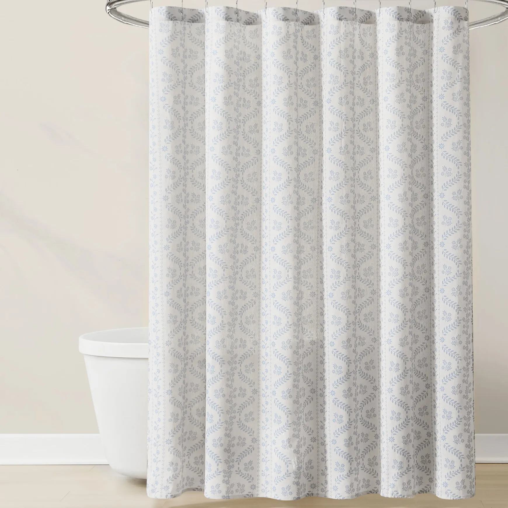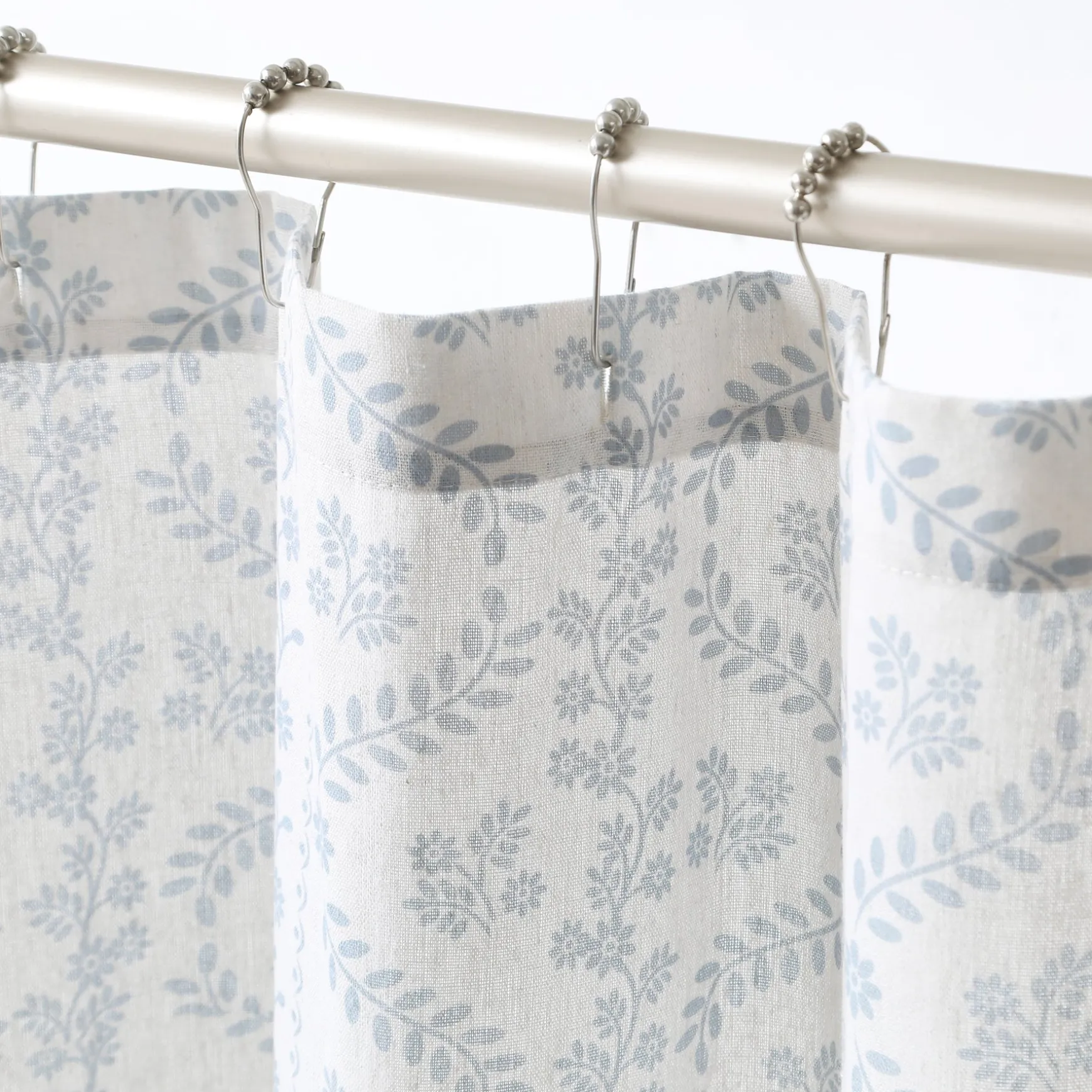 This Doreen Delicate Floral Linen Textured Shower Curtain blends nature’s beauty with elegant design. The dainty floral pattern on linen textured fabric brings the outdoors in with captivating charm. Embrace your love for nature with this pretty botanical shower curtain. Ideal for a country, cottage, or farmhouse styled home.
