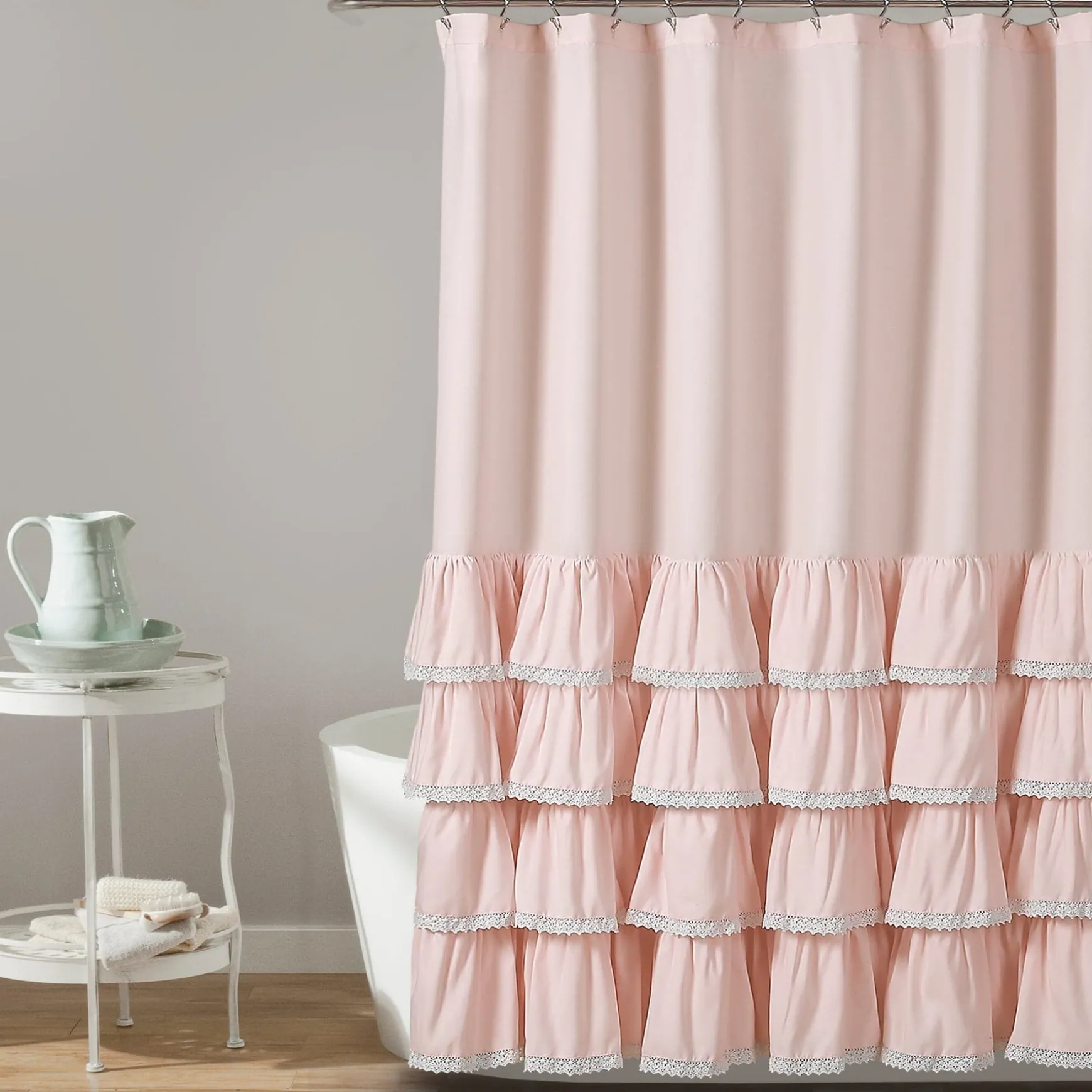 This Ella Ruffle Lace Shower Curtain is so versatile you can use it for your master bathroom, guest bathroom or child’s bathroom. The fancy and frilly look is ideal for girls and women of any age.