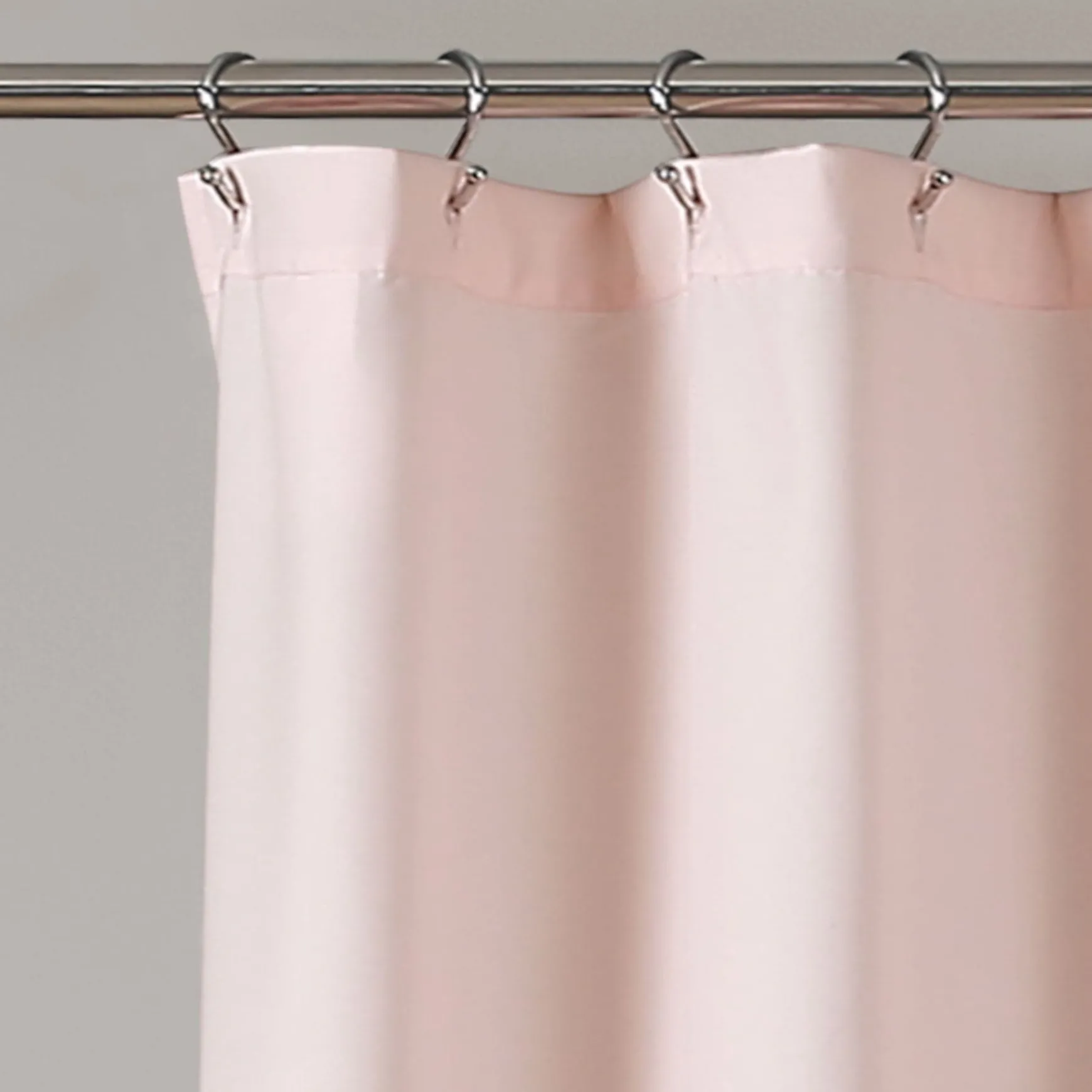 The Ella Ruffle Lace Shower Curtain measures 72 inches on each side. It hangs easily with any standard shower curtain rings or hooks.