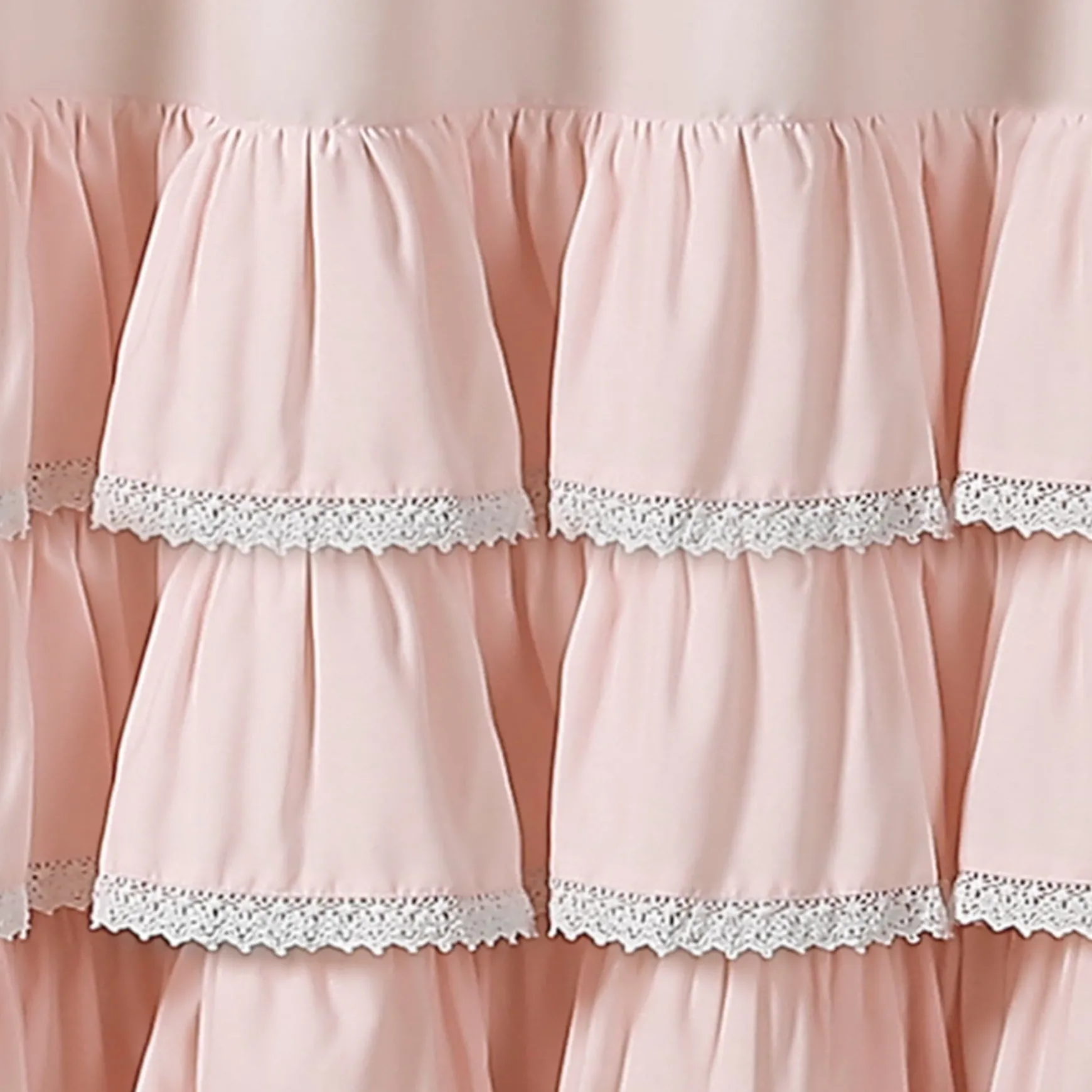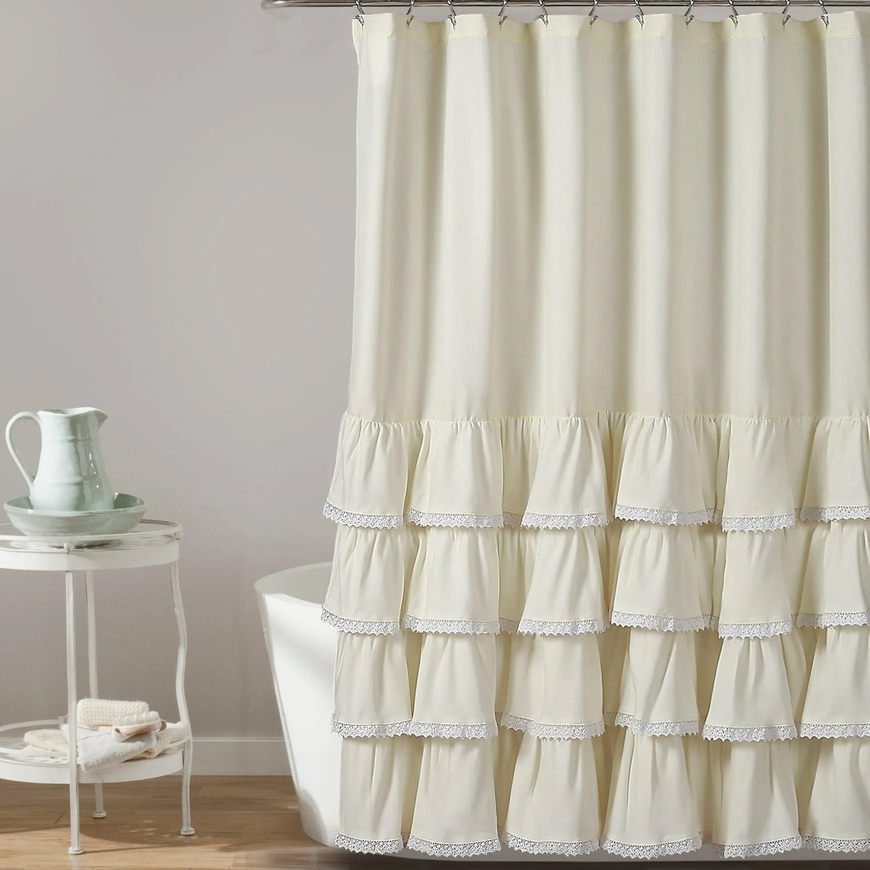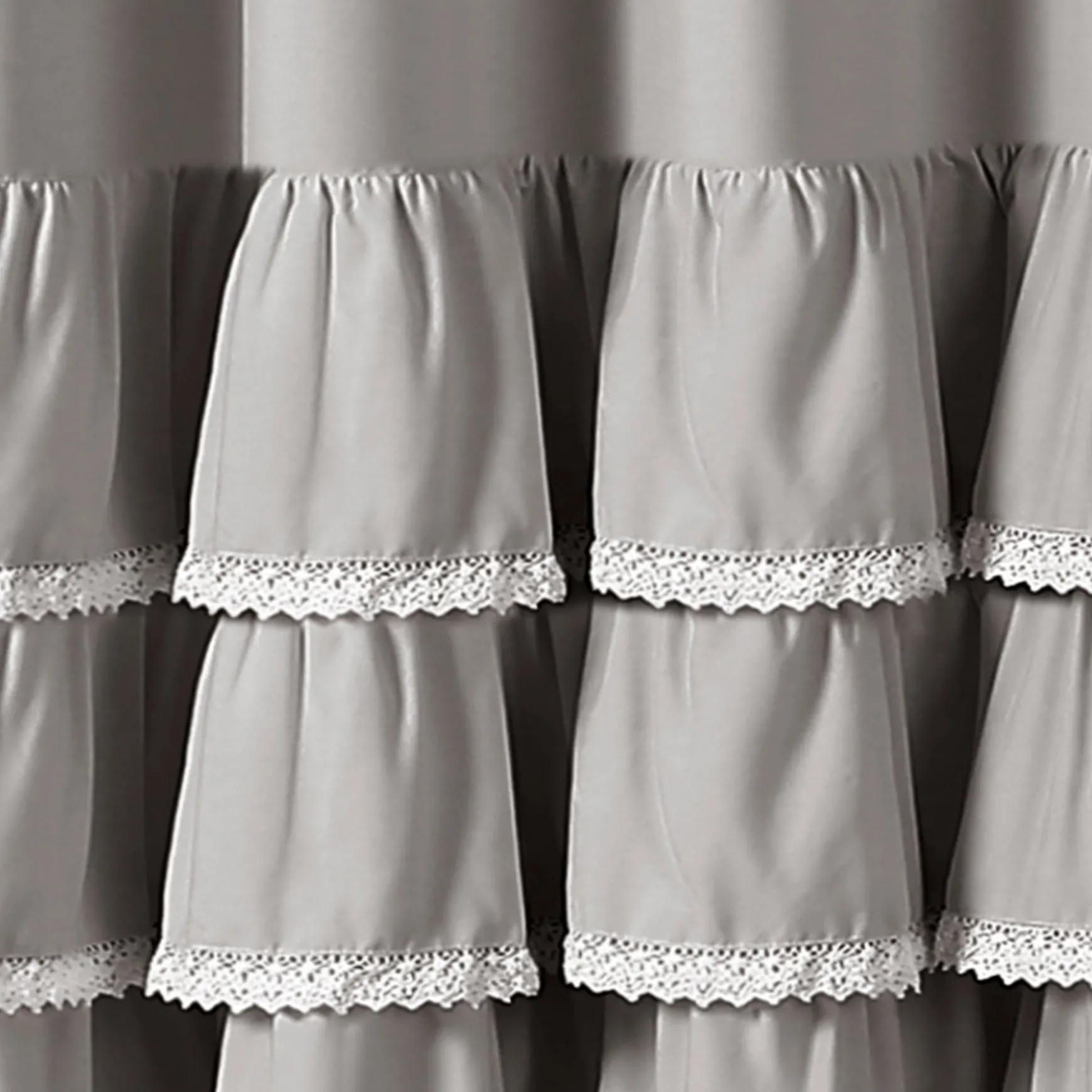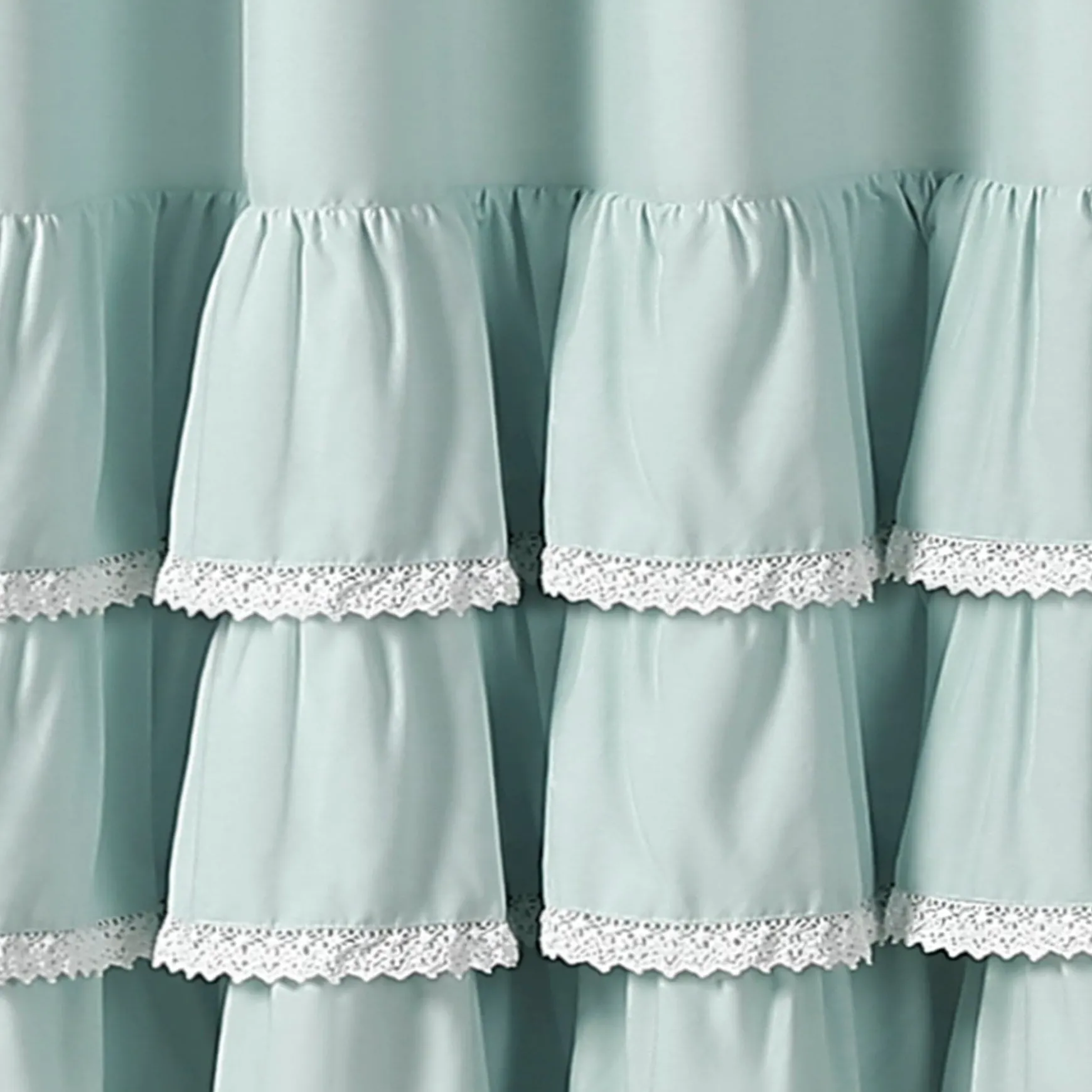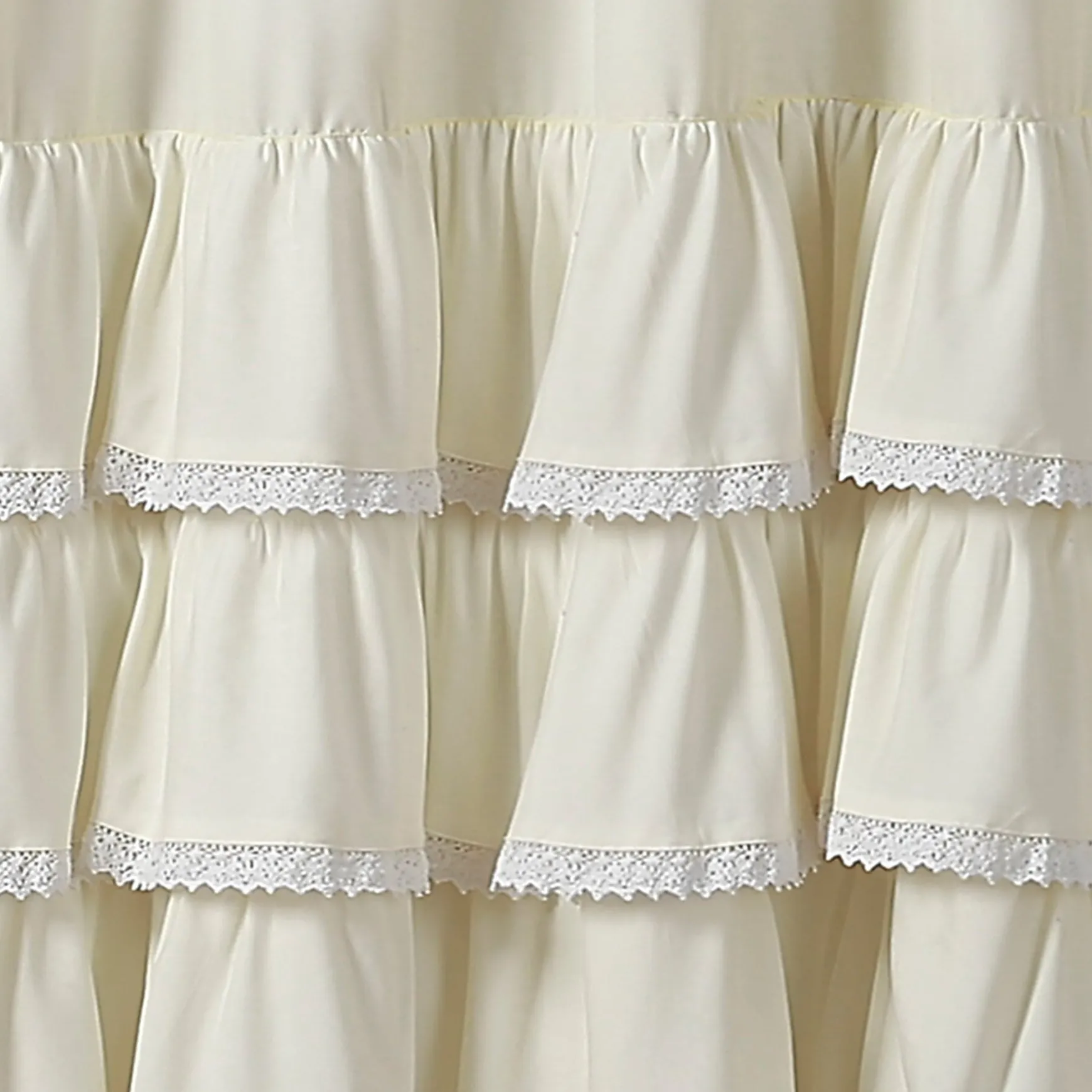 Quickly transform your bathroom into your own personal sanctuary with this stunning Ella Ruffle Lace Shower Curtain. The lower part of the shower curtain features layers of ruffles with lace borders, giving this shower curtain a look that creates a spa-like atmosphere.