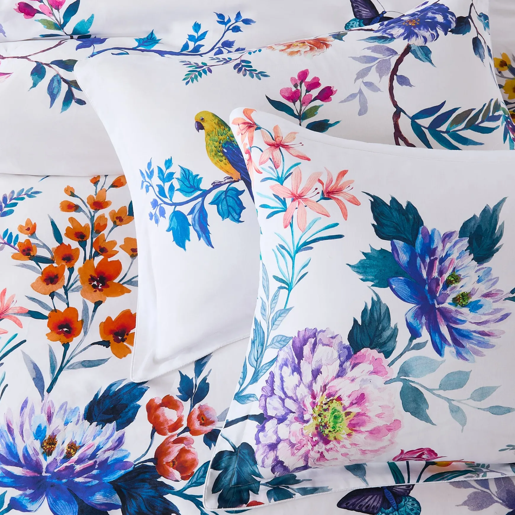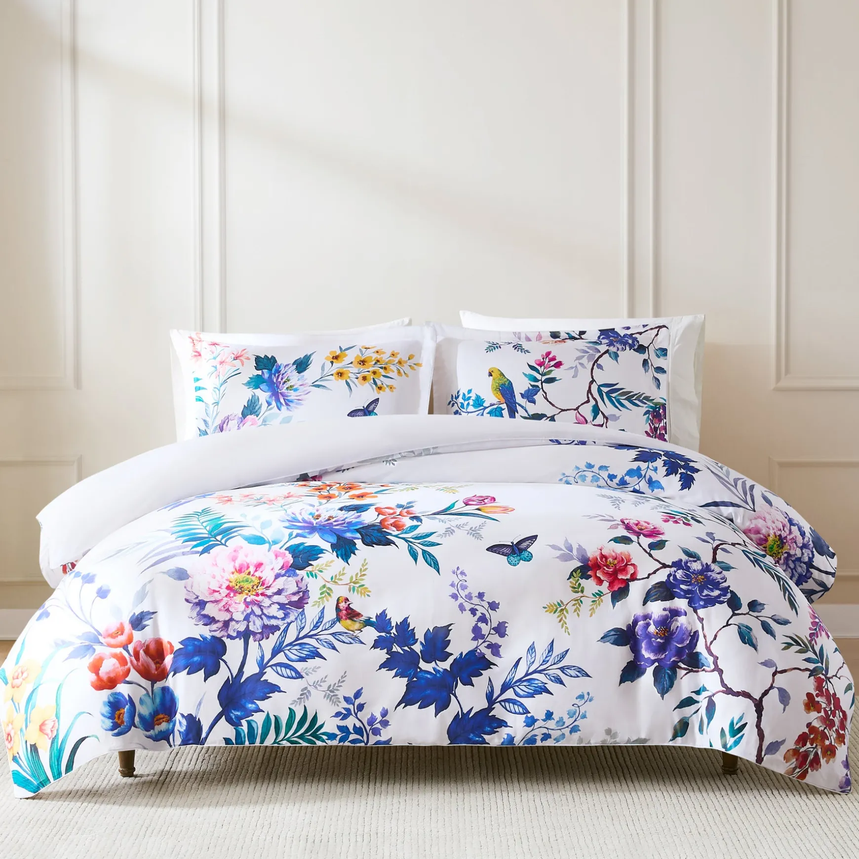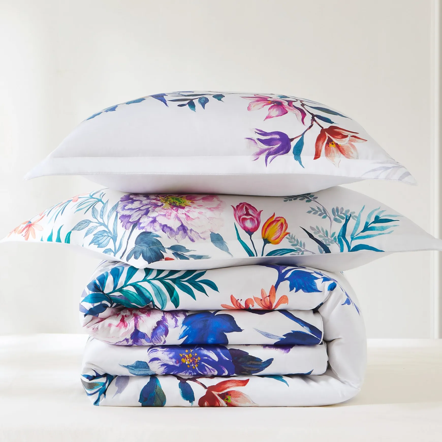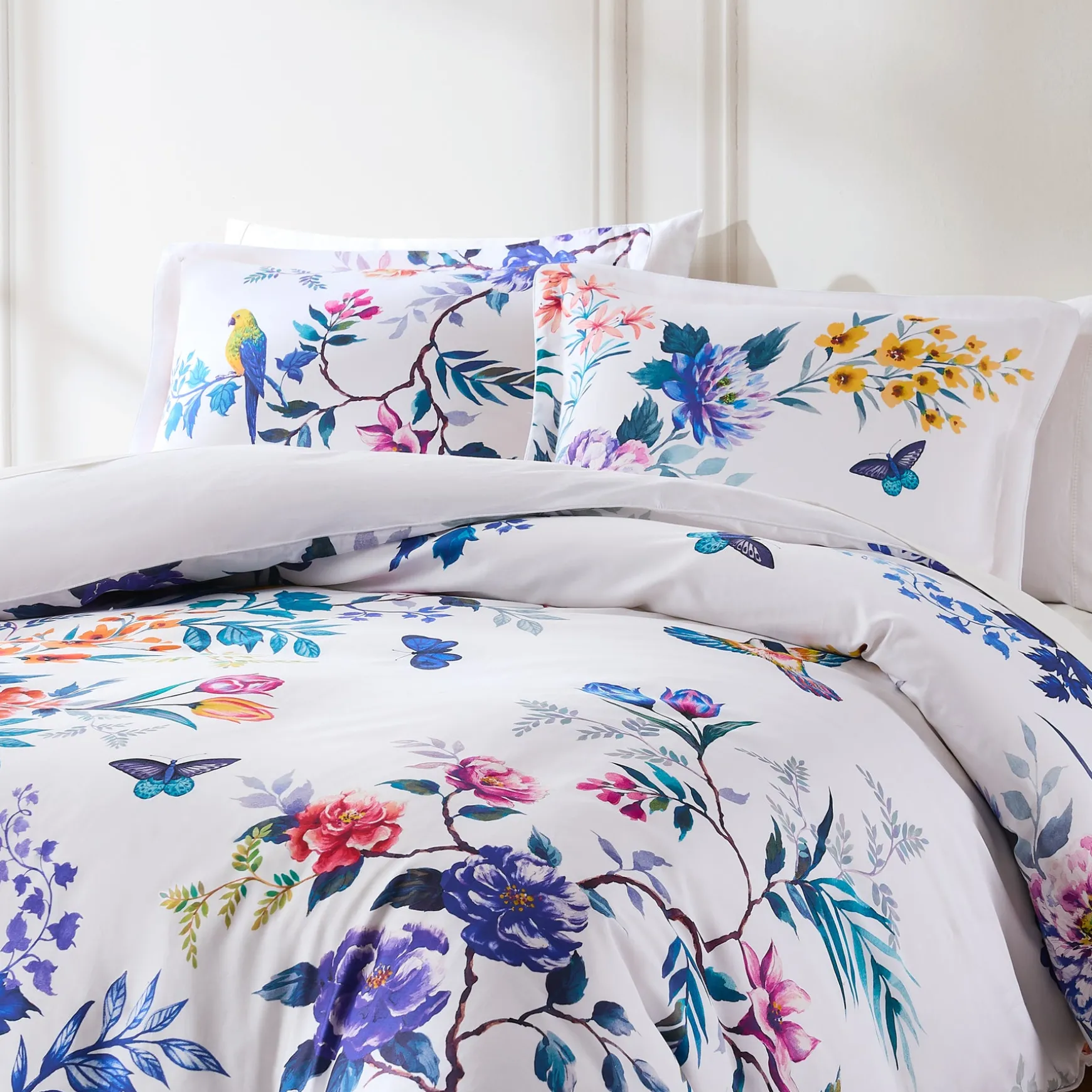 Rest in a forest of florals with this colorful duvet cover set. Ideal for a modern or maximalist styled space, displaying a bold floralscape with a solid white backing. Crafted from 100% cotton, this 3 piece bedding set includes 1 duvet cover and 2 shams. Add your ideal insert weight for year-round comfort and easily secure it with button closures and corner ties. STANDARD 100 by OEKO-TEX® certified, all components have been tested and certified free from harmful substances. Machine washable.