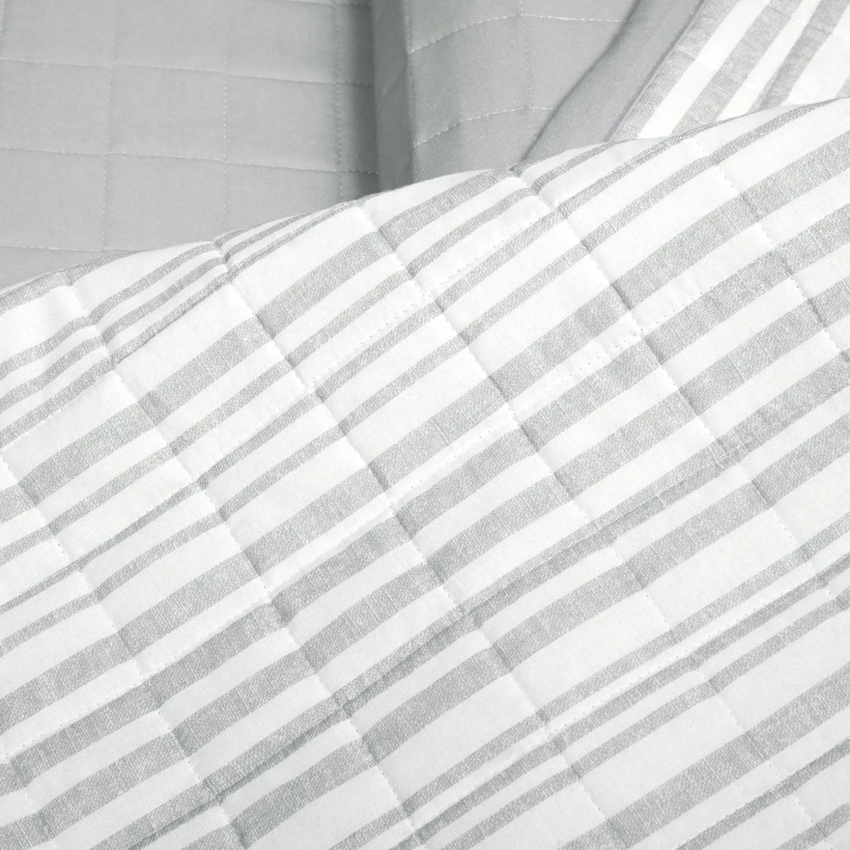 The Farmhouse Box Stitch And Stripe Cotton Quilt 3 Piece Set includes a reversible 200 GSM quilt and 2 matching pillow shams. It is available in your choice of Full/Queen or King Sizes.