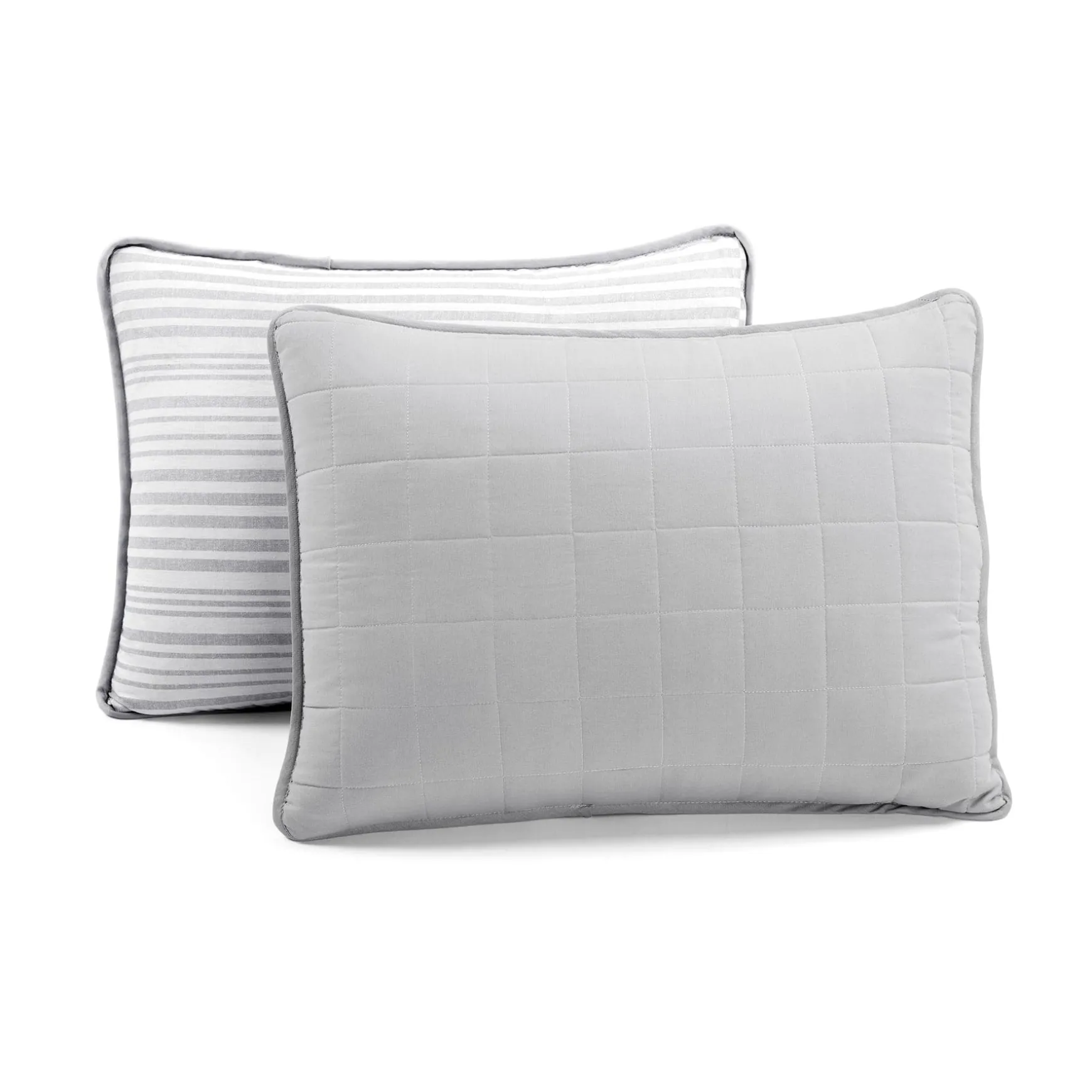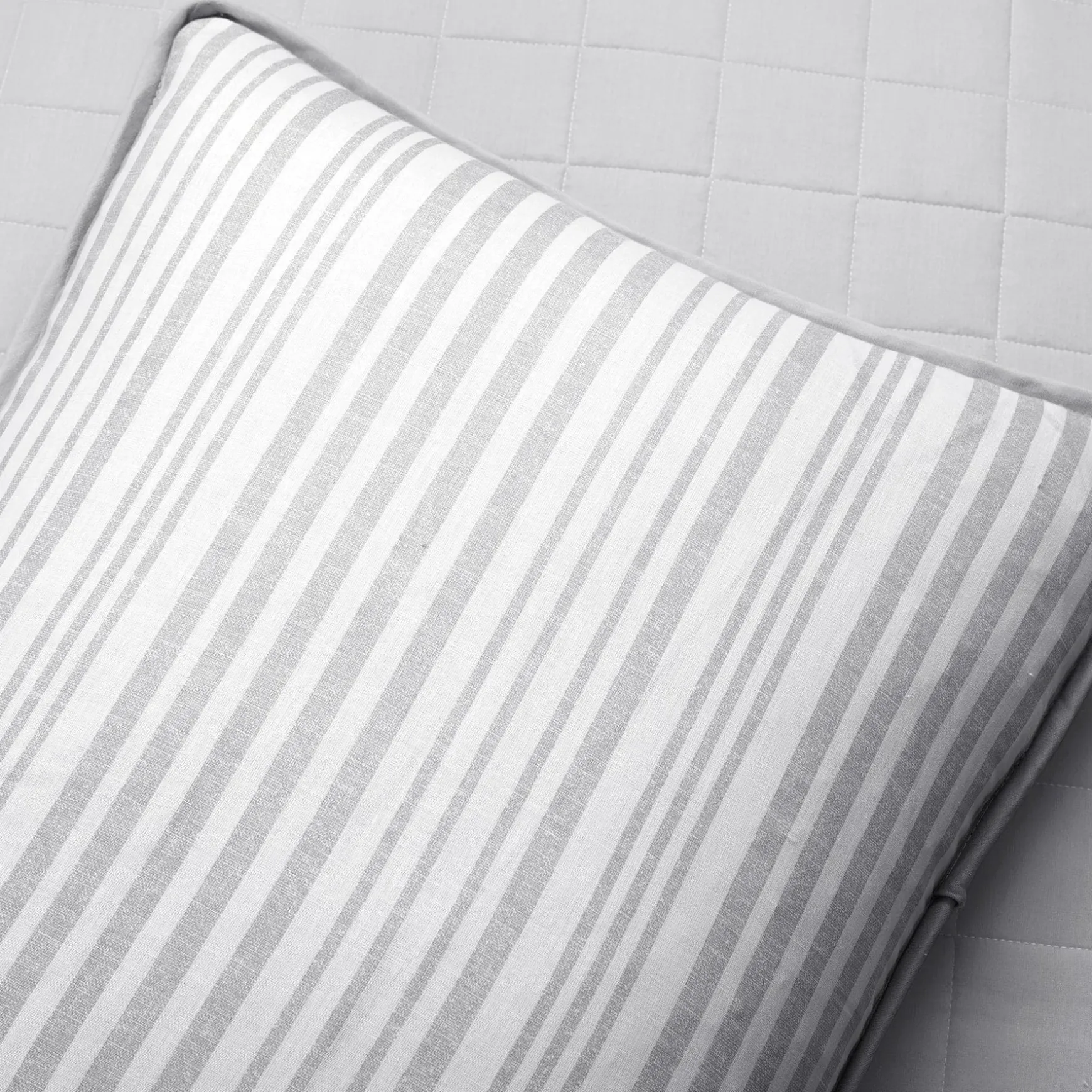Simple in design and extraordinary in comfort, this oversized Farmhouse Box Stitch And Stripe Cotton Quilt 3 Piece Set is just what you need for year long cozy coverage. The cotton fabrication is breathable and soft so you can sleep restfully night after night. This set includes 3 matching pieces.