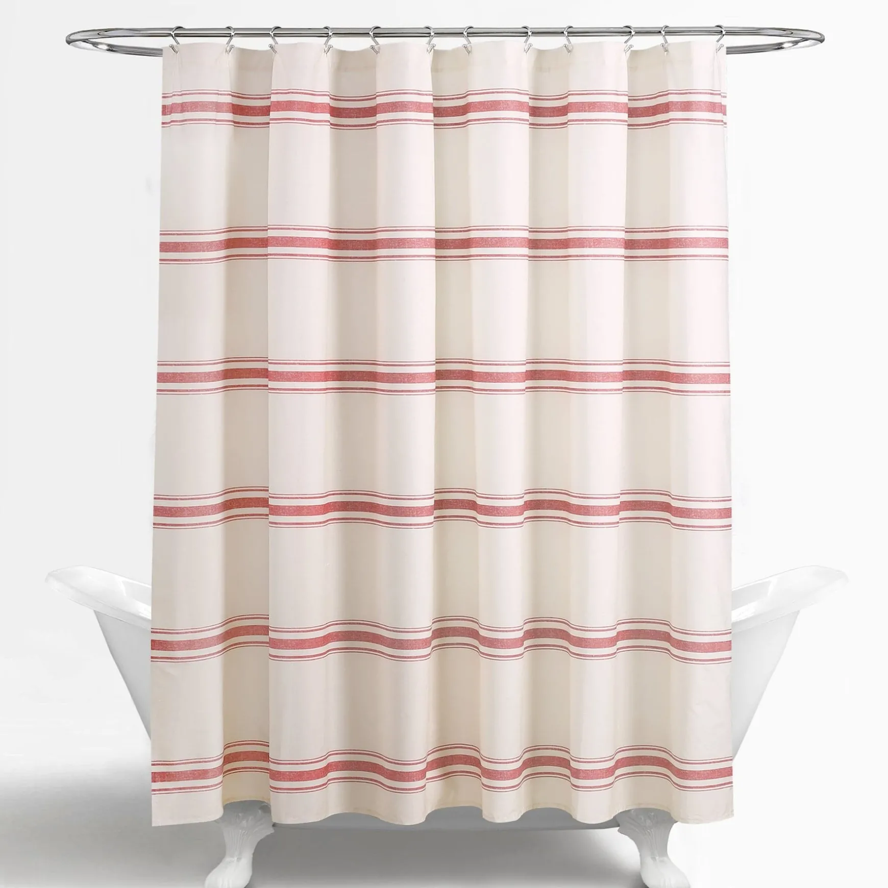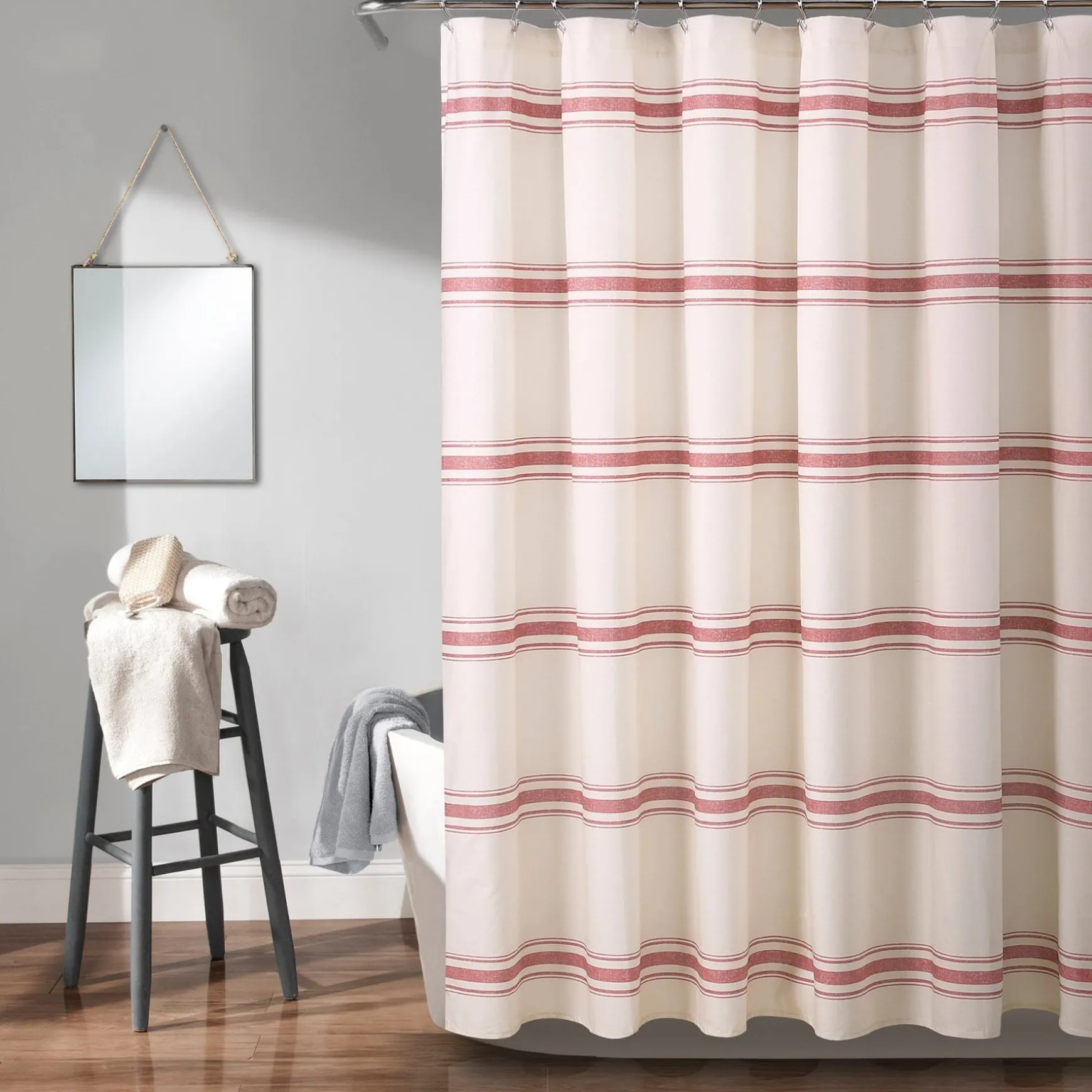 This Farmhouse Stripe Shower Curtain is ideal for your primary bathroom or guest bathroom. It is available in eight color options, including stripes in blue, red, navy, neutral or gray against an ivory/beige background. Any of the color options available will surely enhance your bathroom decor.