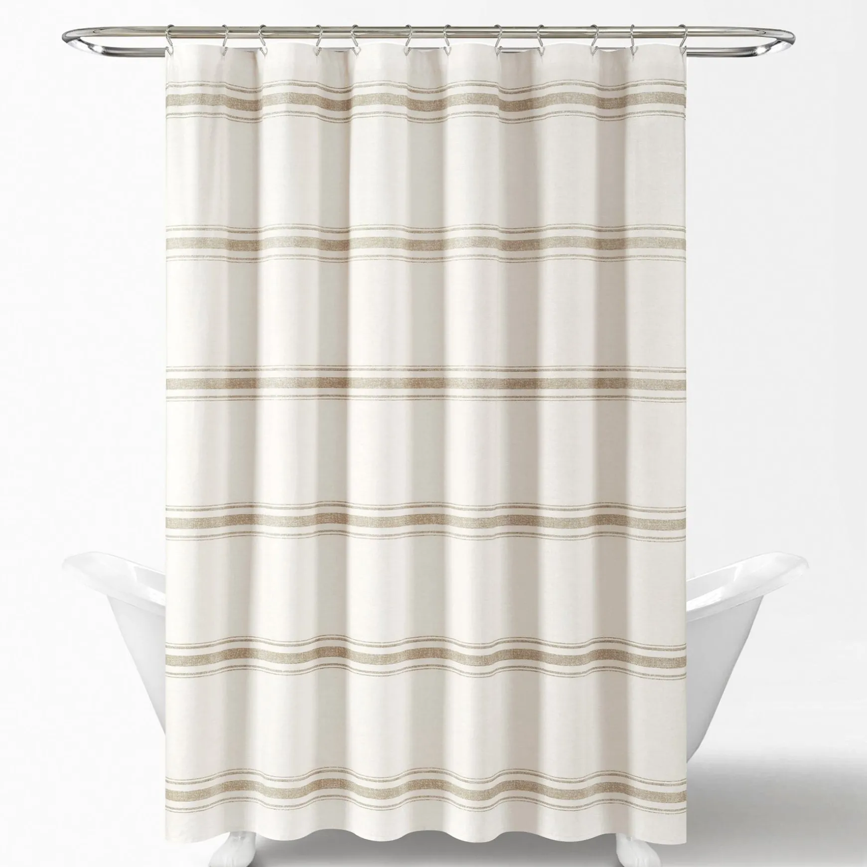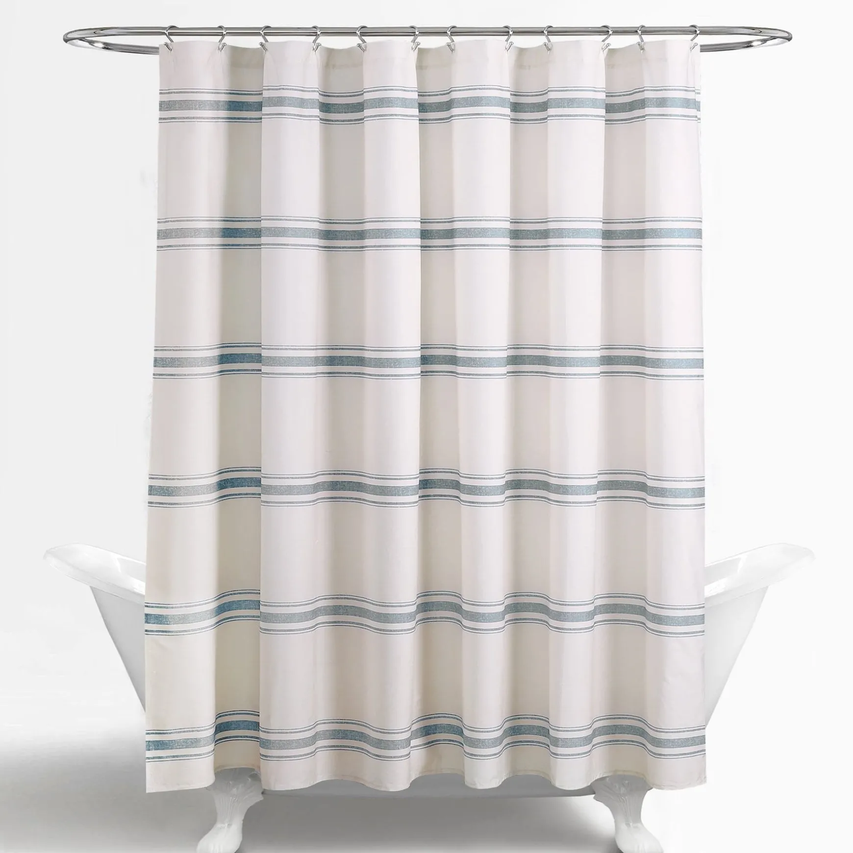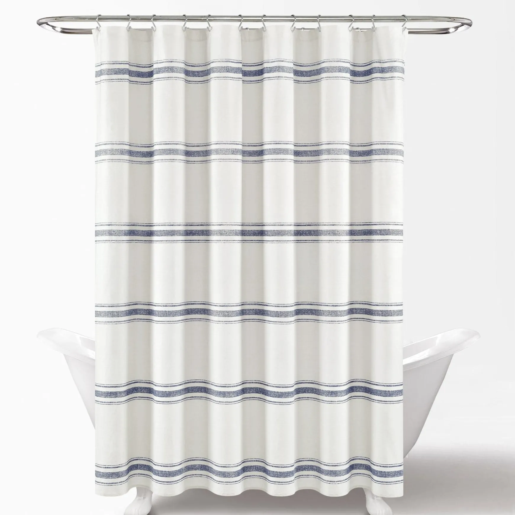 Measuring 72 inches long and 72 inches wide, the Farmhouse Stripe Shower Curtain will fit nearly any bathtub. It hangs easily with any standard shower curtain hooks or rings.