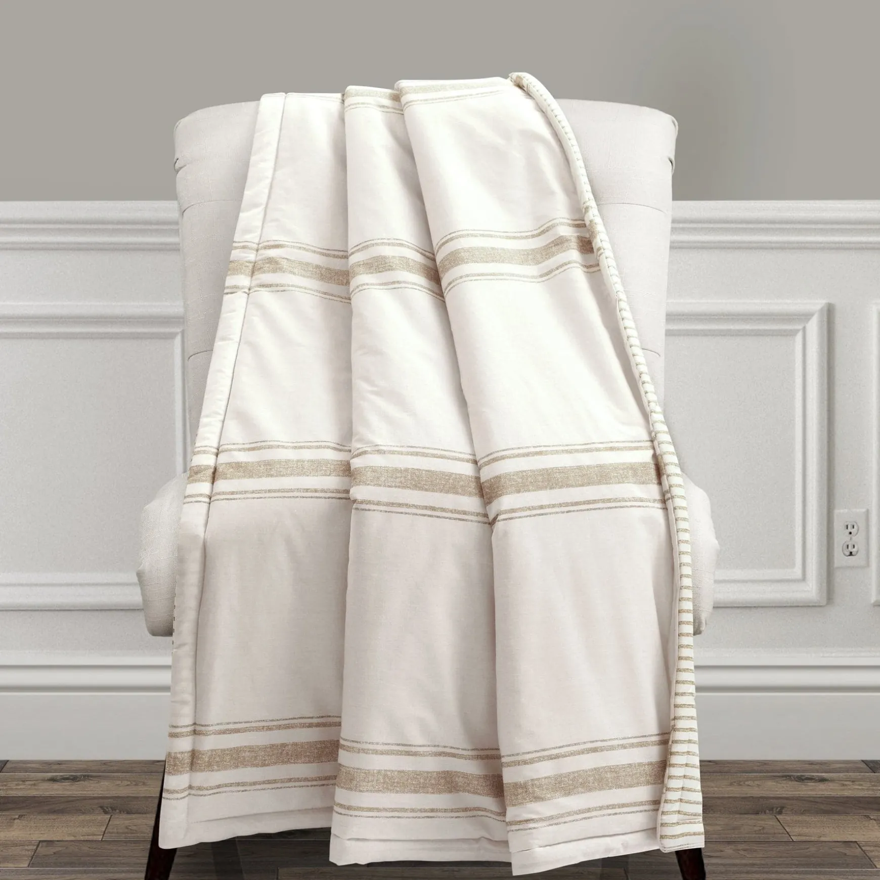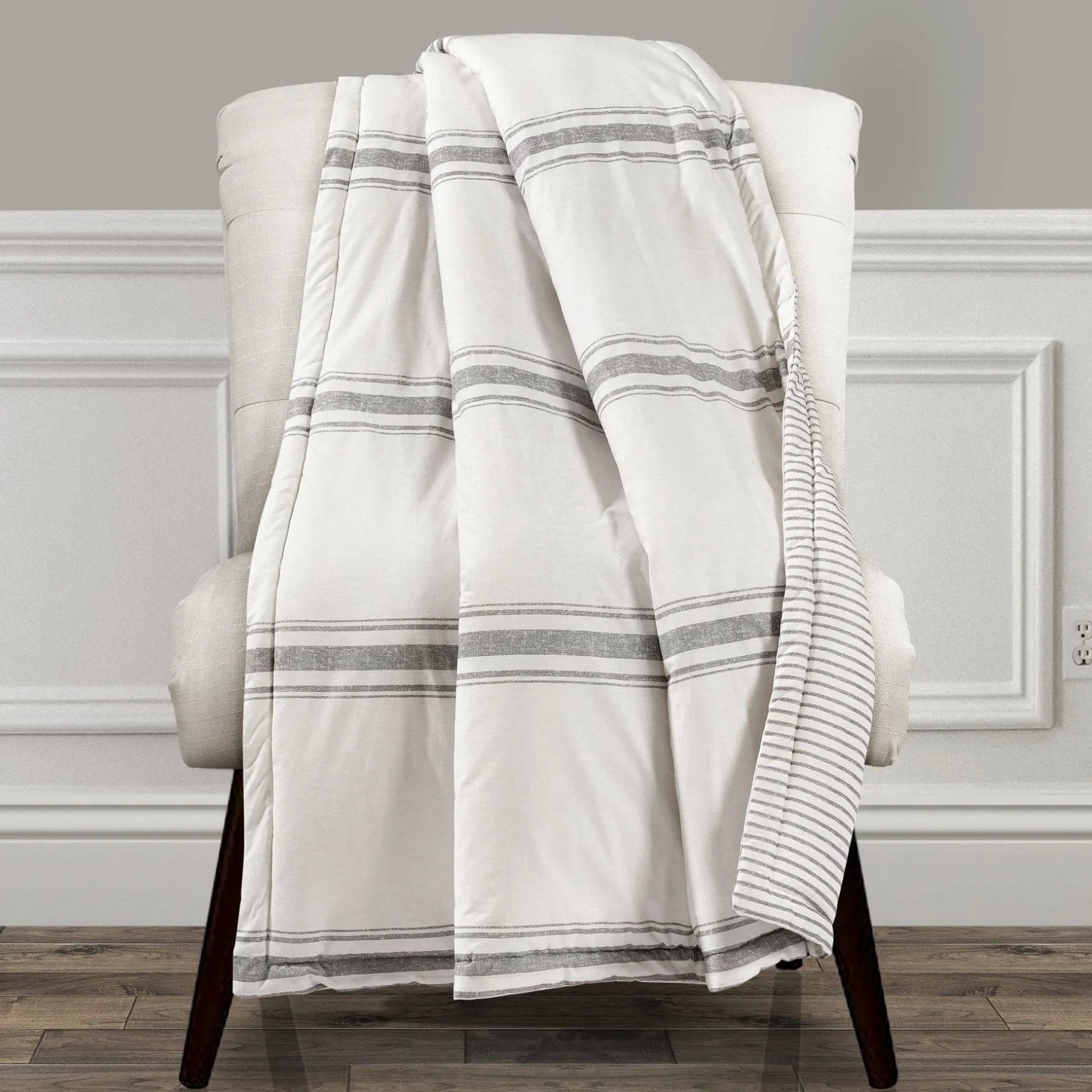 There is no easier way to add traditional farmhouse style to your home than with this Farmhouse Stripe Throw. The printing on the front looks almost like shiplap beams. The back features a thinner pinstripe print.