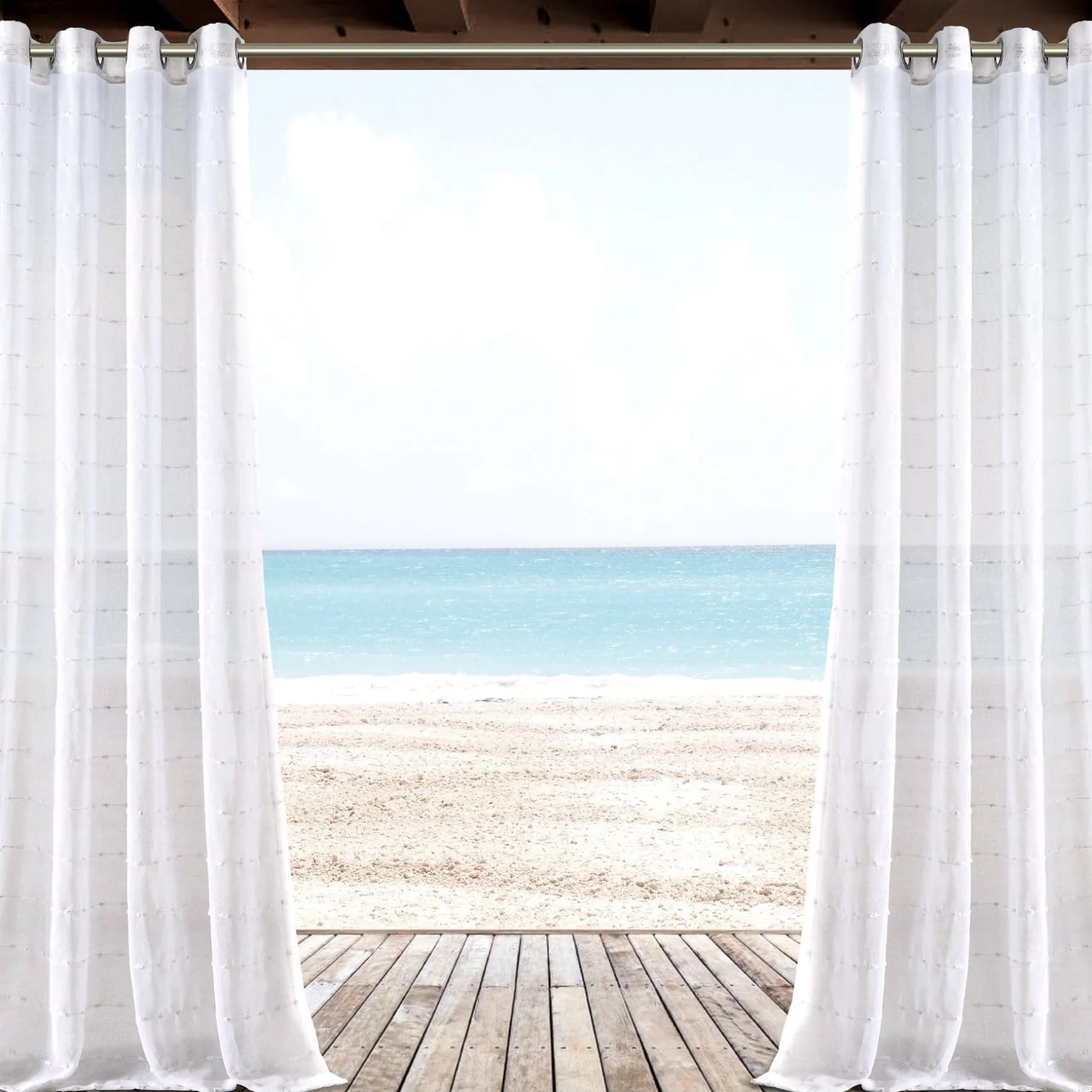 These outdoor window curtain panels are a great way to brighten your patio or other outdoor living space. The sheer fabric lets plenty of light flow through while providing some privacy. No matter your style, this simply designed Farmhouse Textured Grommet Sheer Indoor/Outdoor Window Curtain will only add to the elegance.