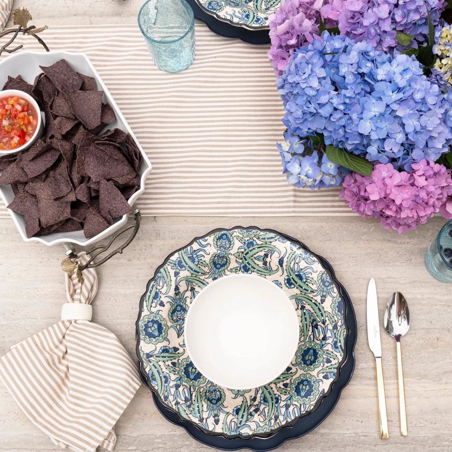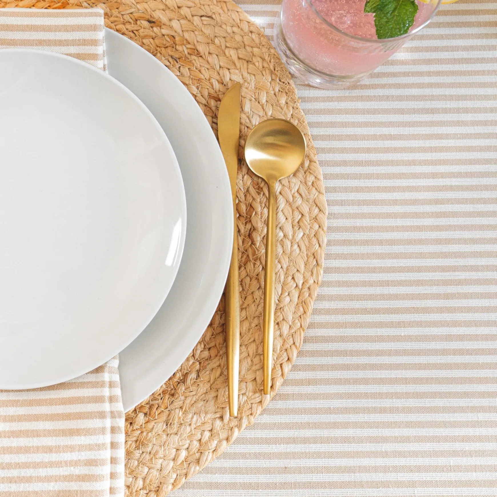 The simple ticking stripe design adds a vintage vibe that’s just right for your indoor dining gatherings. Your table set is sure to match perfectly with the neutral colors of the Farmhouse Ticking Stripe Yarn Dyed Napkin 4-Pack Set.