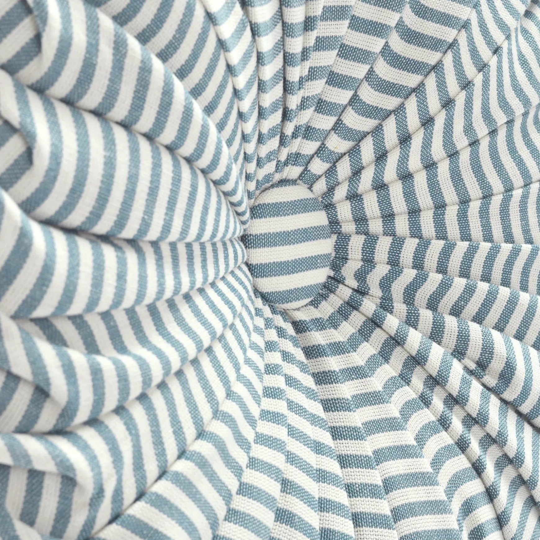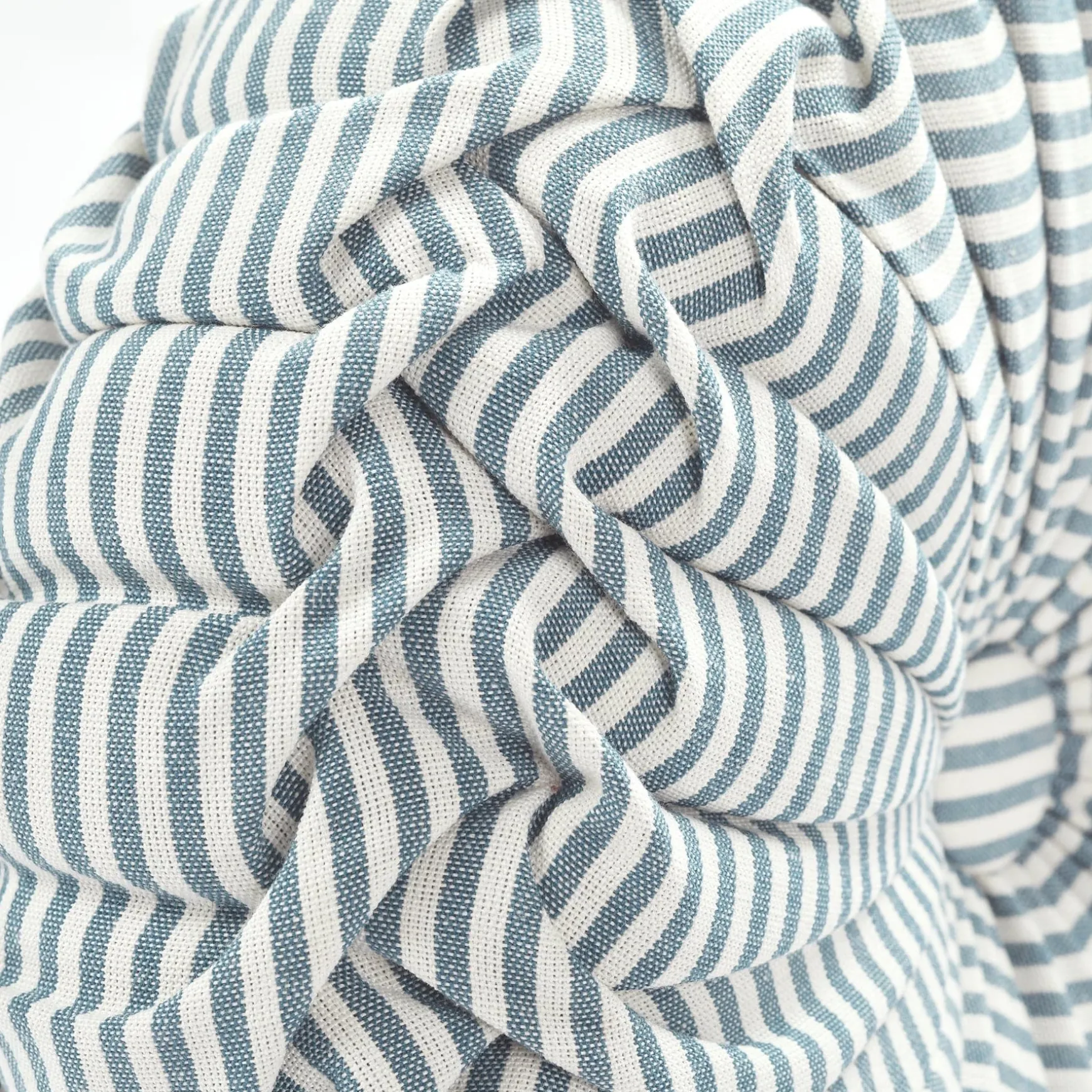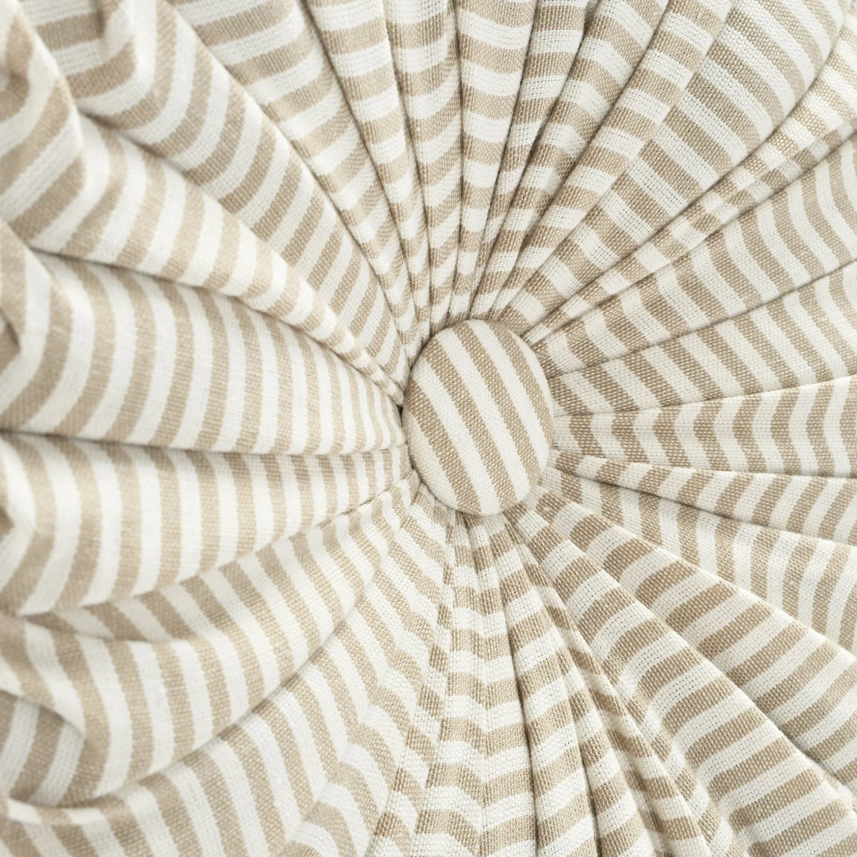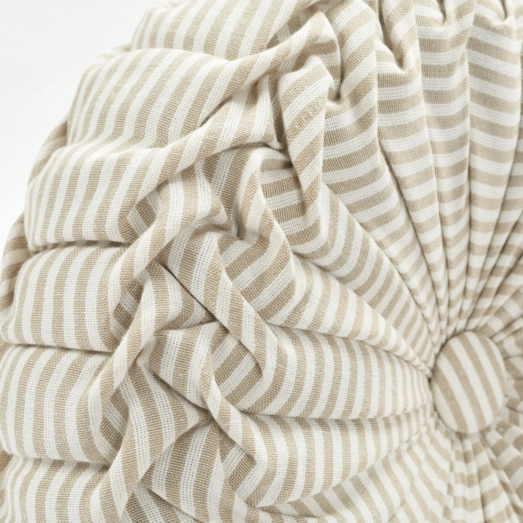 This circular accent pillow measures 14 inches in diameter. This Farmhouse Ticking Stripe Yarn Dyed Pleated Decorative Pillow is a standard size that is large enough to make an impact on your design but not so big that it will take over the look of the room.