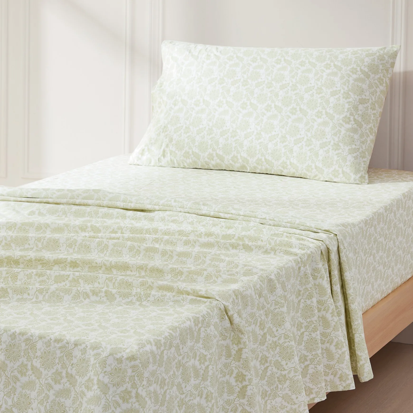 Add bold blooming patterns to your home with this paisley floral sheet set. This cotton bed sheet’s timeless botanical pattern adds a classic look to any kid’s or teen’s room ideal for traditional style bedscapes! Made from 100% cotton for a lightweight, comfortable feel. This sheet set includes flat sheet, fitted sheet, and pillowcase. STANDARD 100 by OEKO-TEX® certified, all components have been tested and certified free from harmful substances. Machine washable for easy care.
