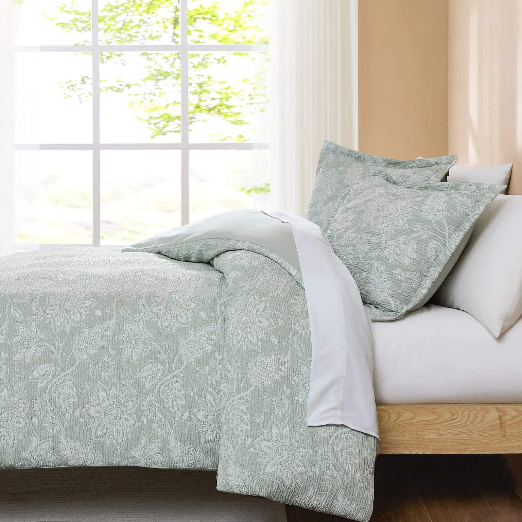 Add a pop of paisley to your bed with this woven floral duvet set. The timeless botanical pattern complements a vintage or coquette decor style. Made from a lightweight poly gauze fabric with a cotton backing. This 3 piece includes 1 duvet cover and 2 shams. Add your ideal insert weight for year-round comfort and easily secure it with button closures and corner ties. STANDARD 100 by OEKO-TEX® certified, all components have been tested and certified free from harmful substances. Machine washable.