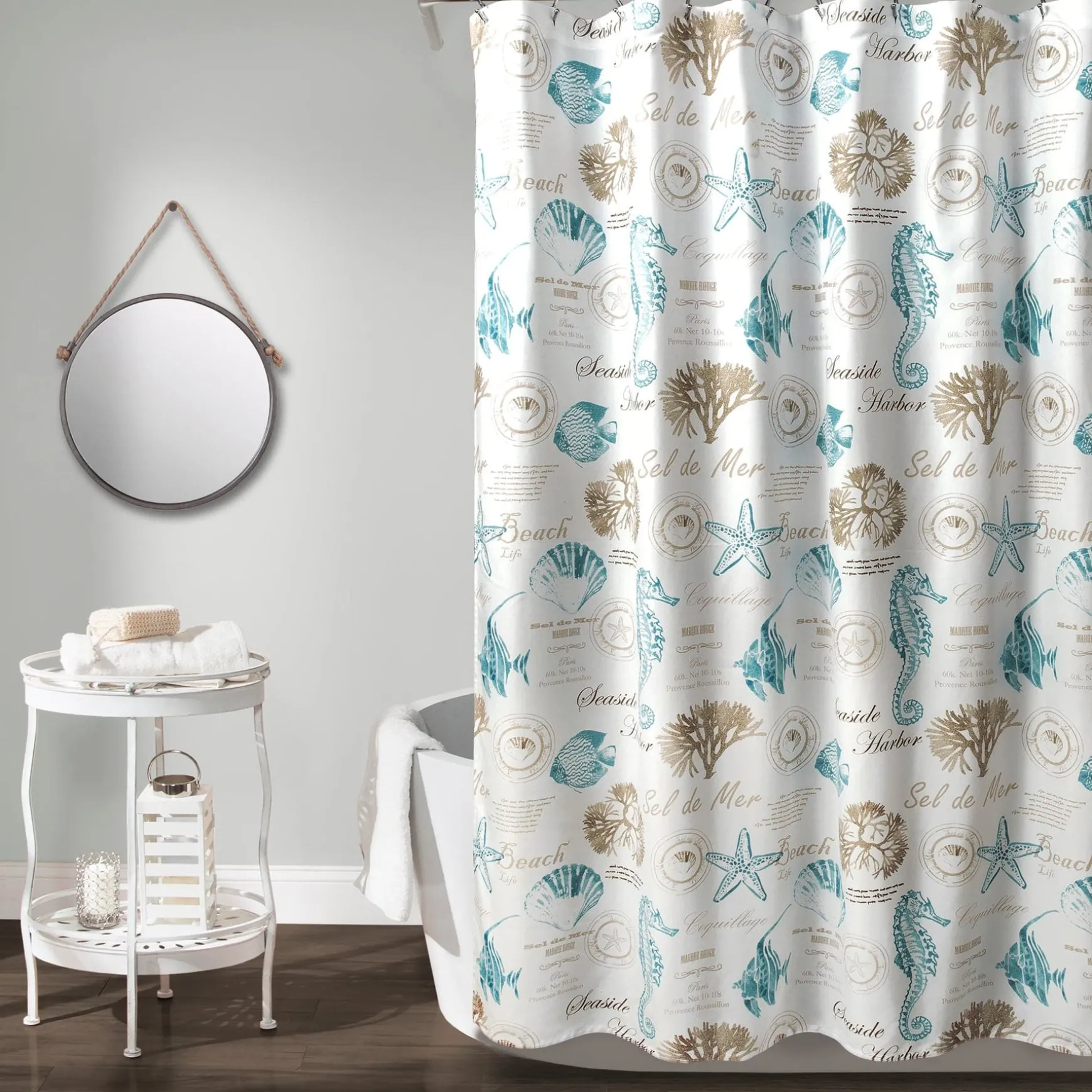 If you love a coastal look, this Harbor Life Shower Curtain is for you. Neutral color tones and various types of sea life, including starfish, seahorses, reefs, fish and more come together beautifully. Your bathroom will feel like an ocean retreat.
