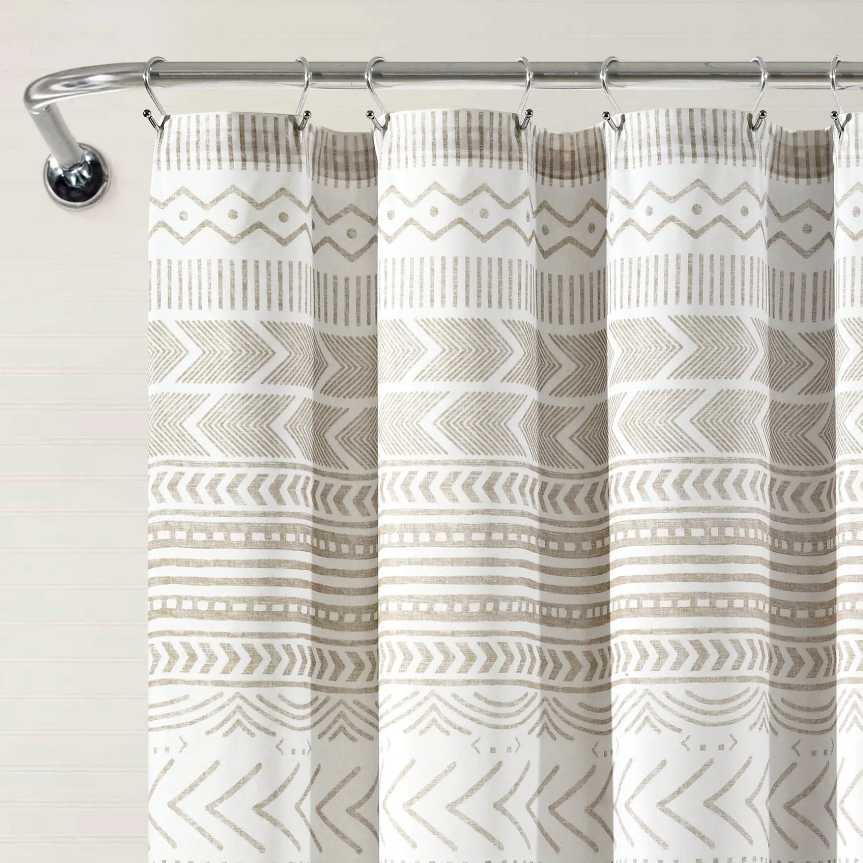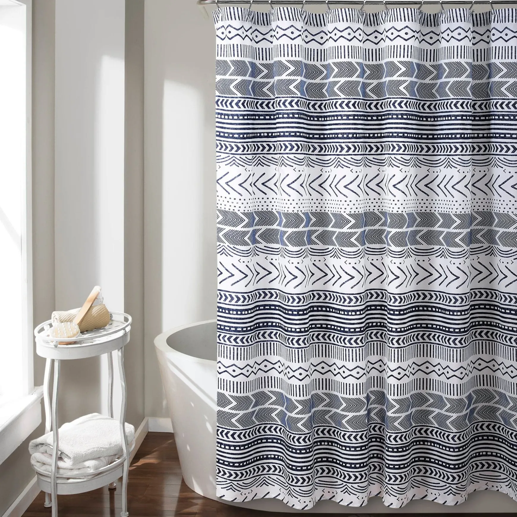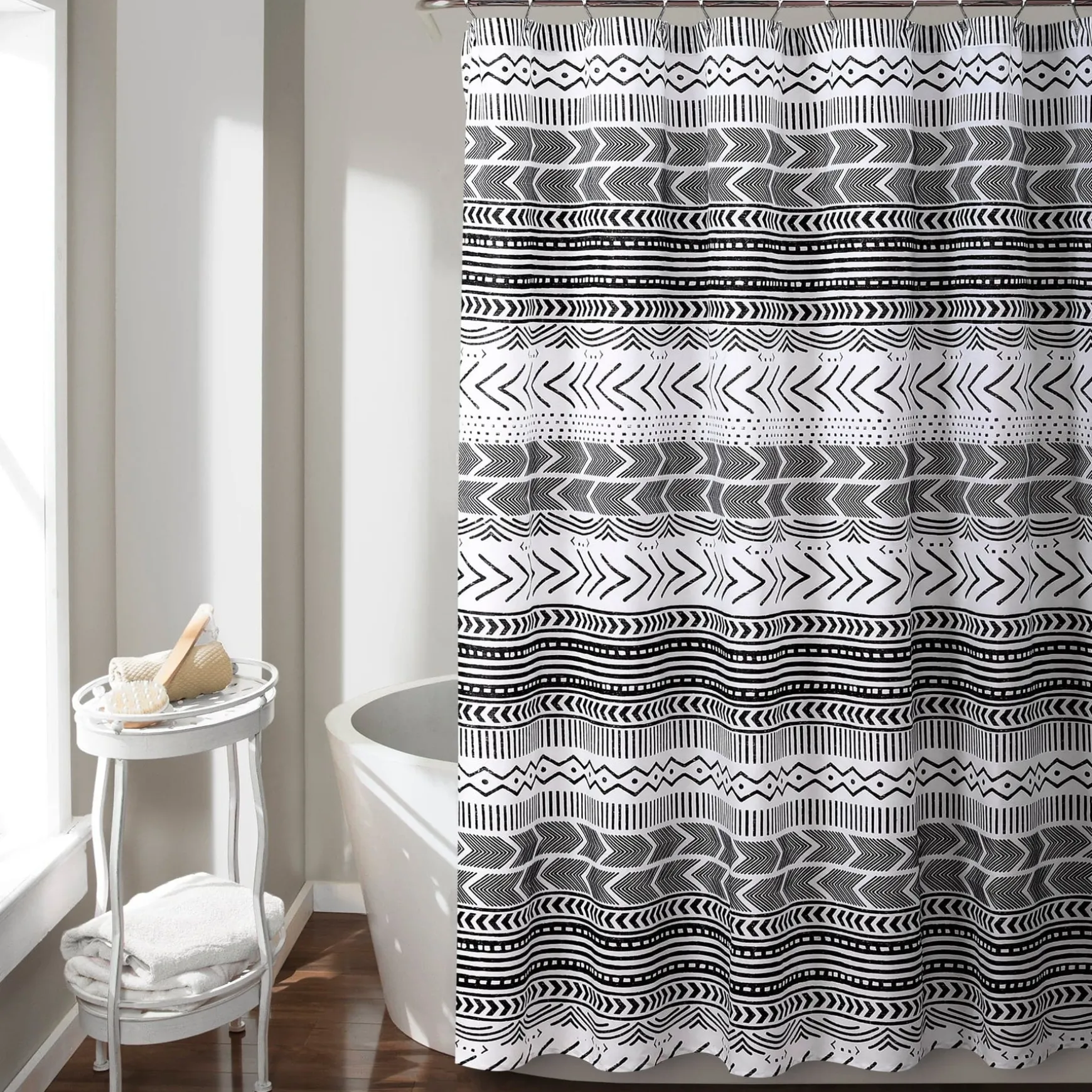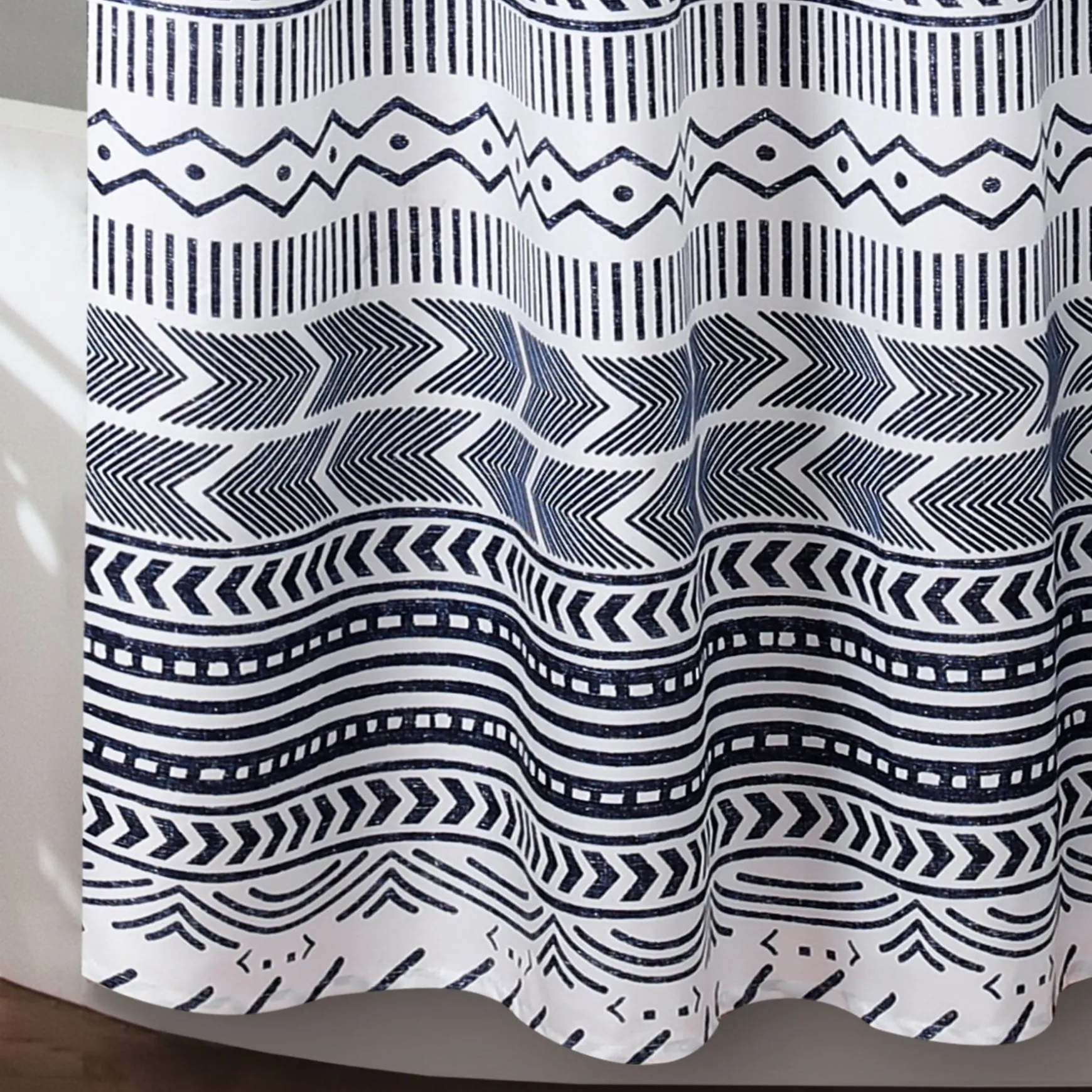Add Scandinavian style to your home with this shower curtain featuring stripes of various geometric patterns. This Hygge Geo Shower Curtain is perfect for a primary, guest or teenager’s bathroom.
