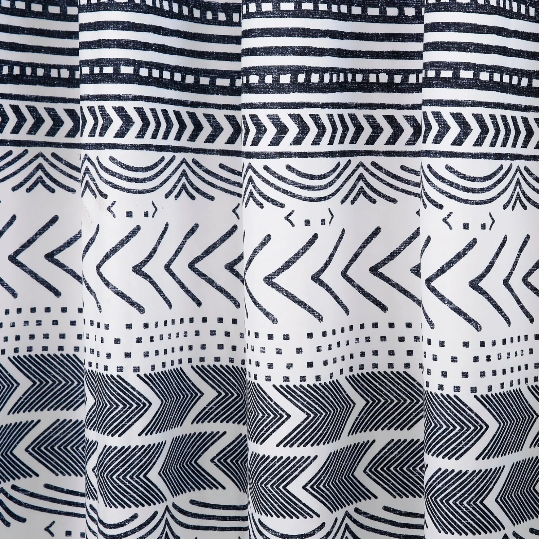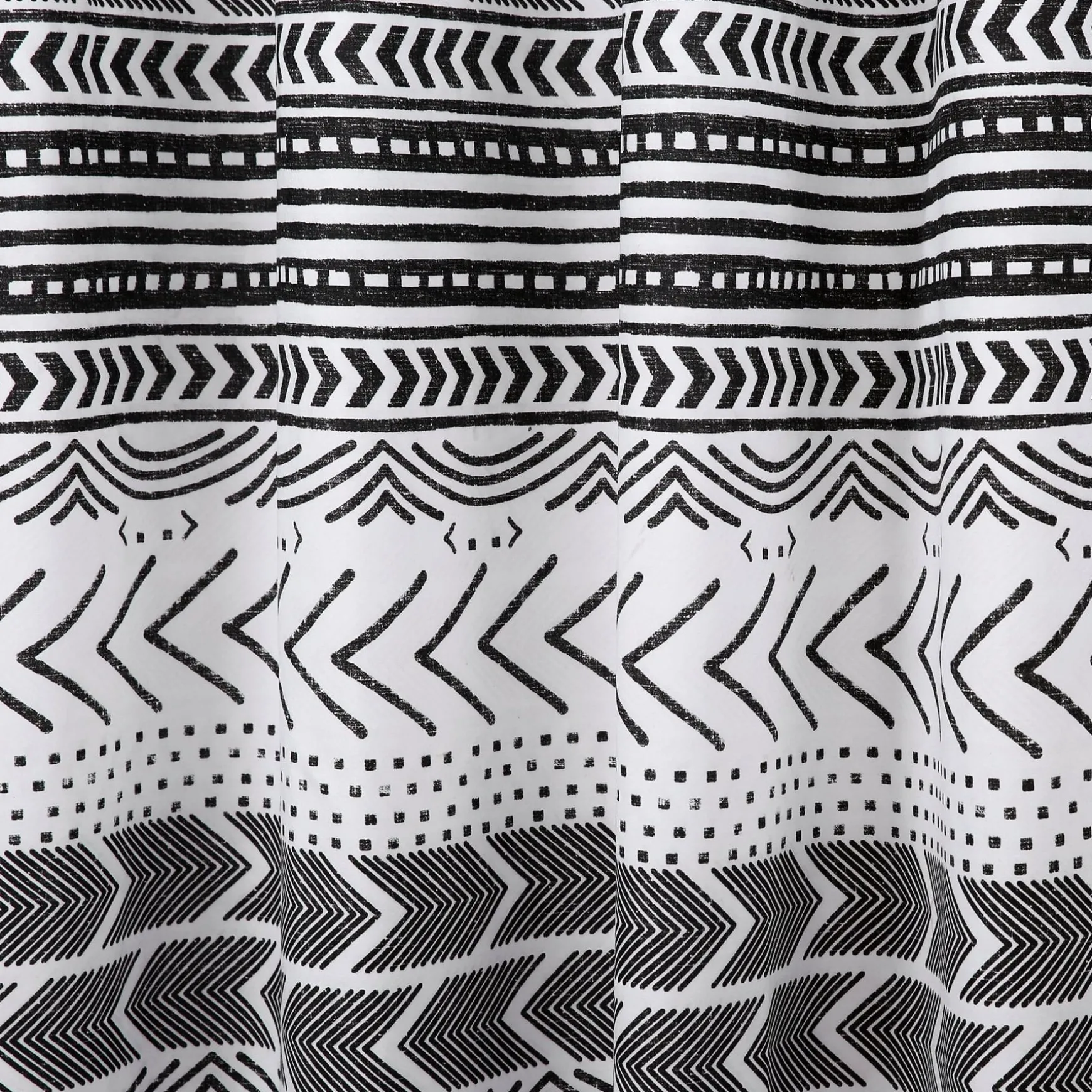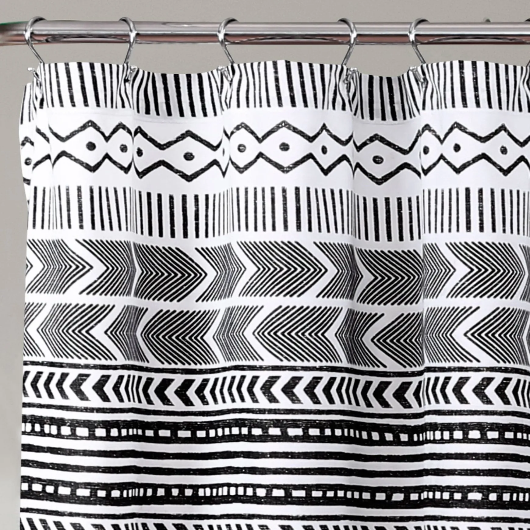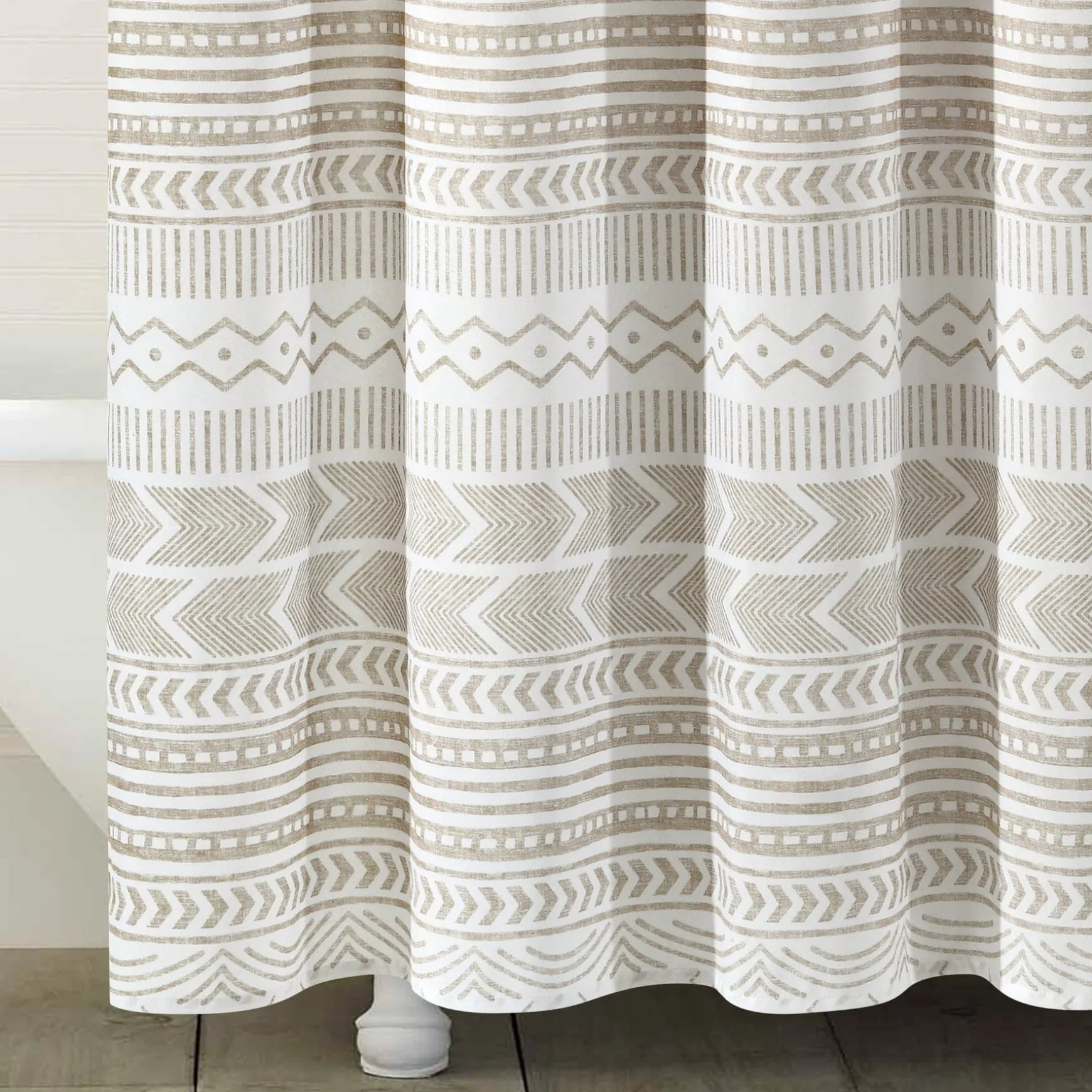 Add Scandinavian style to your home with this shower curtain featuring stripes of various geometric patterns. This Hygge Geo Shower Curtain is perfect for a primary, guest or teenager’s bathroom.