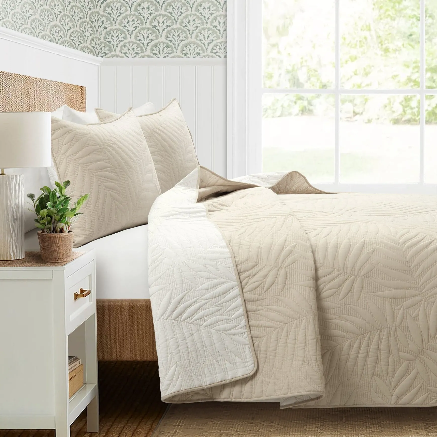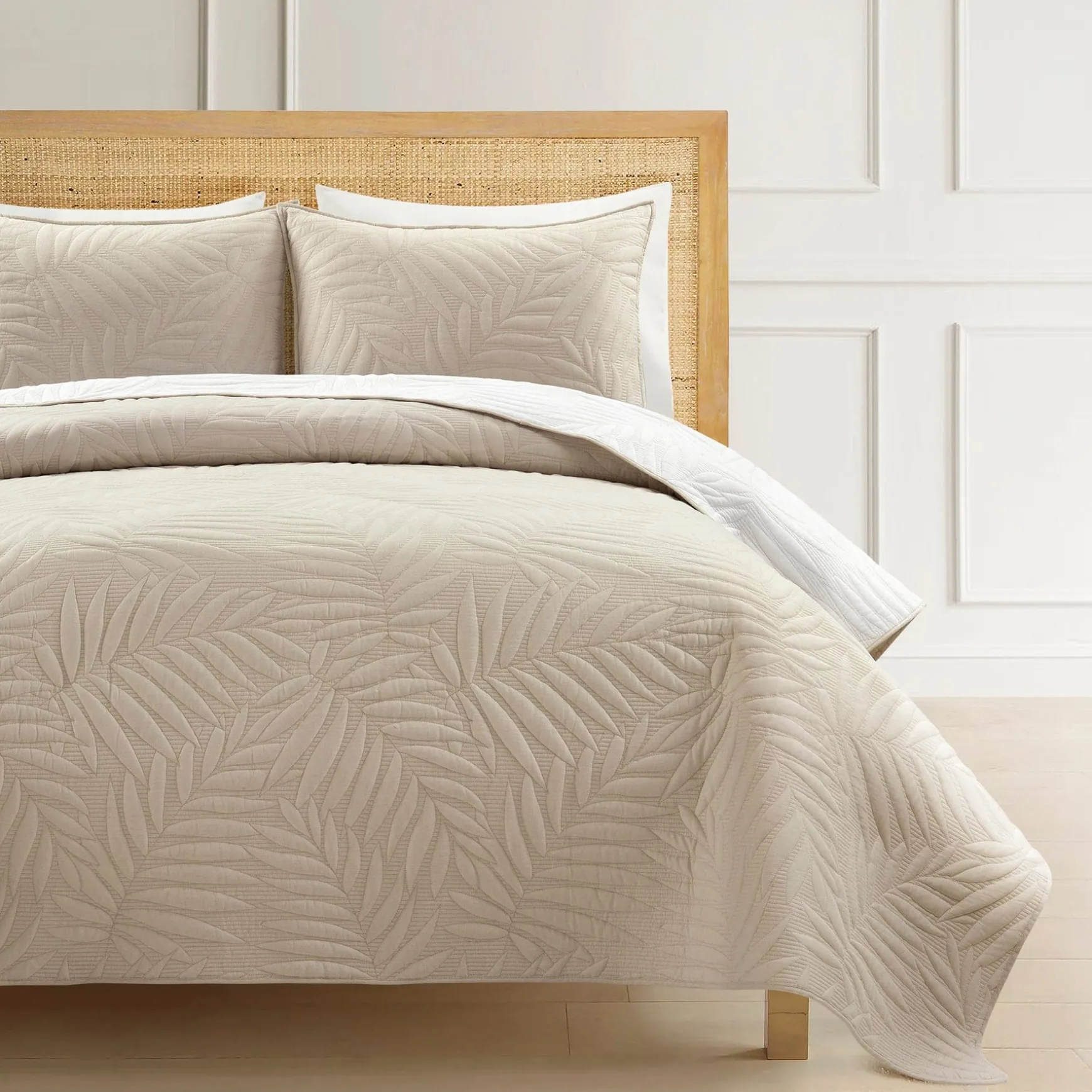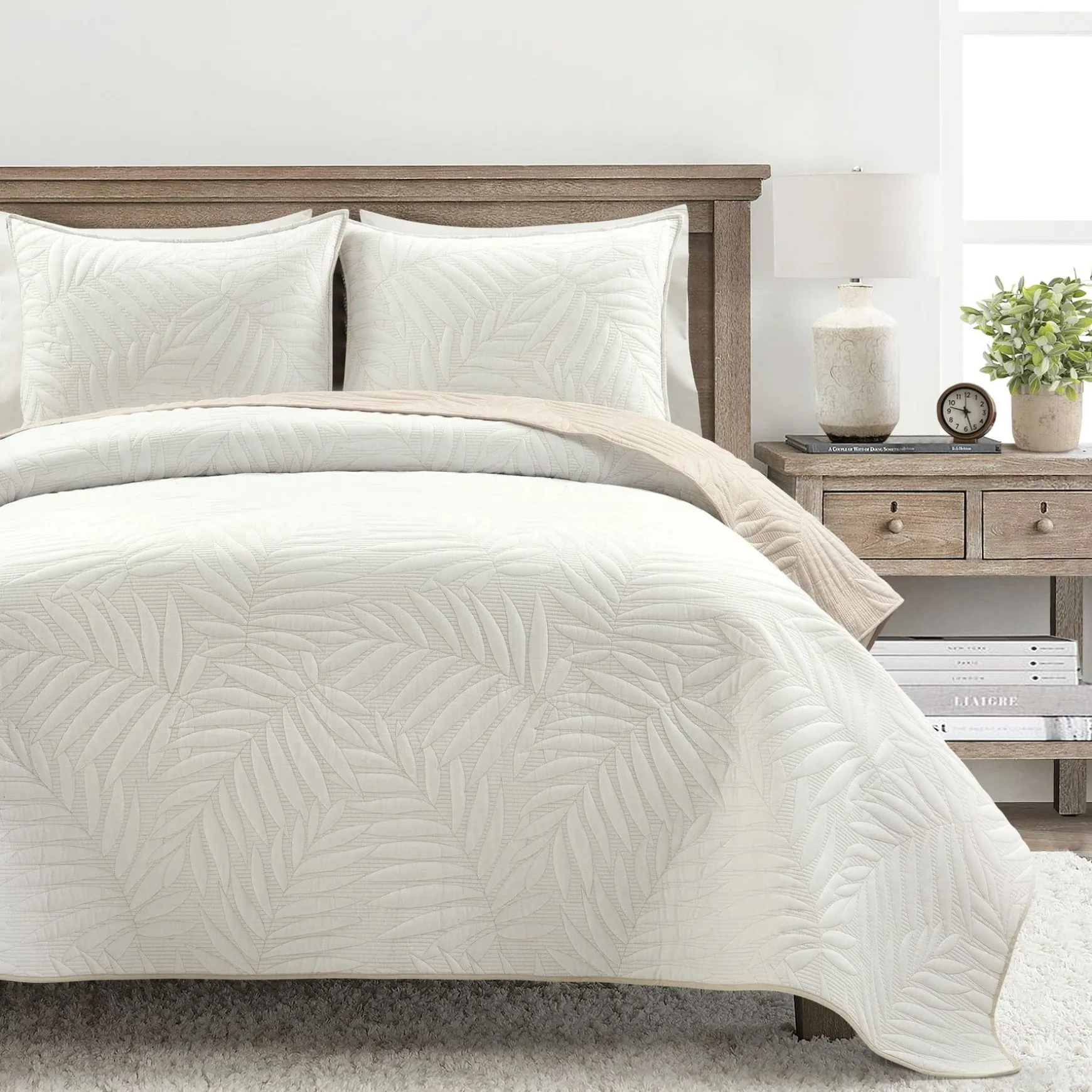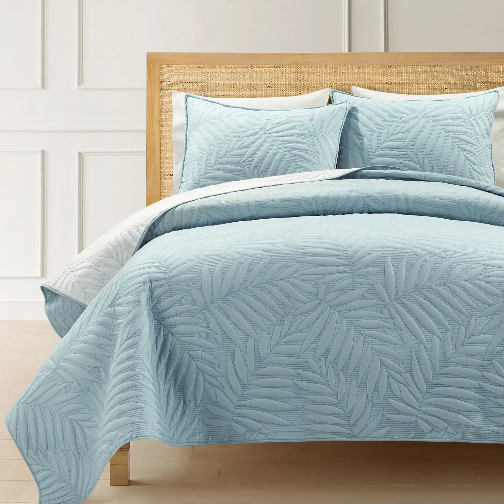 Refresh your decor effortlessly while enjoying the comfort of a stylish and cozy bed. This Isla Embroidered Leaf Reversible Cotton Quilt 3 Piece Set includes one soft quilt and two matching pillow shams. This quilt set easily fits into many different decor styles including coastal, minimalist, transitional, or Scandinavian.