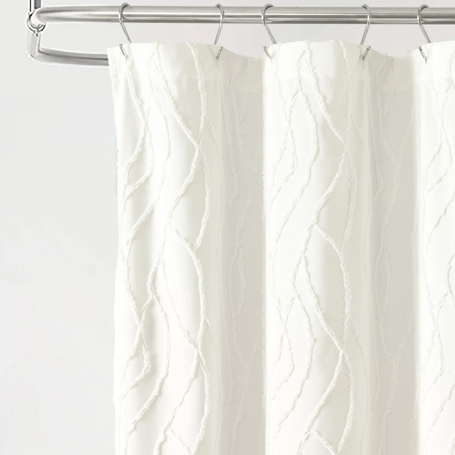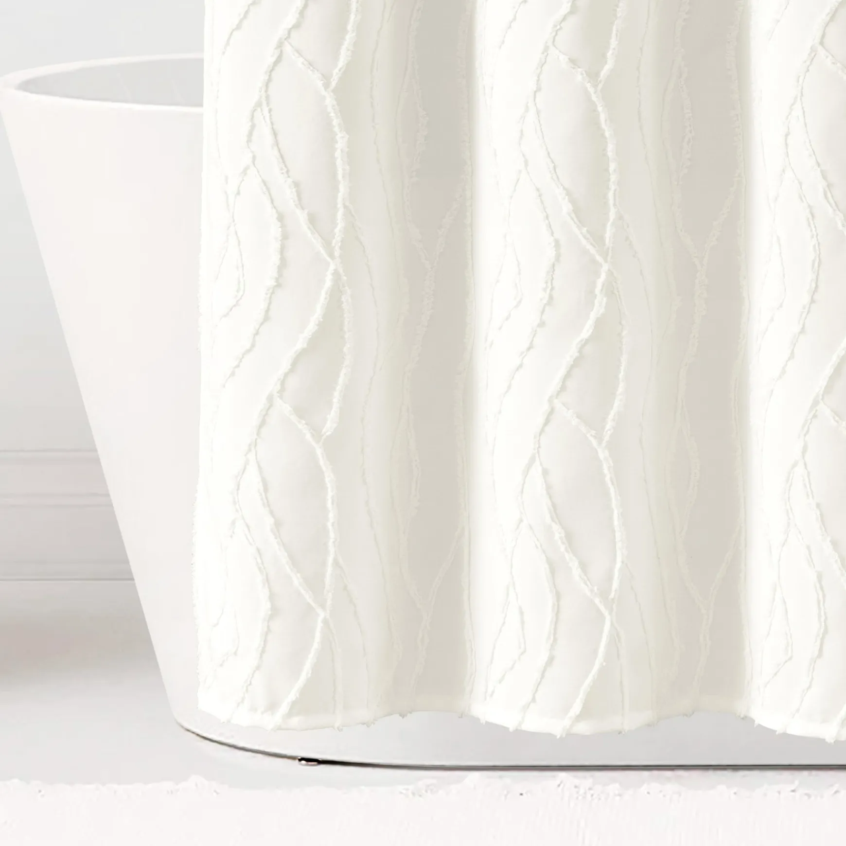Embellished with a unique wave pattern, this Jacquard Wave Shower Curtain brightens your bathroom with jacquard texture and a simple wave design. This soft white shower curtain is a great addition to a modern, boho, coastal, or cottage style bathroom.