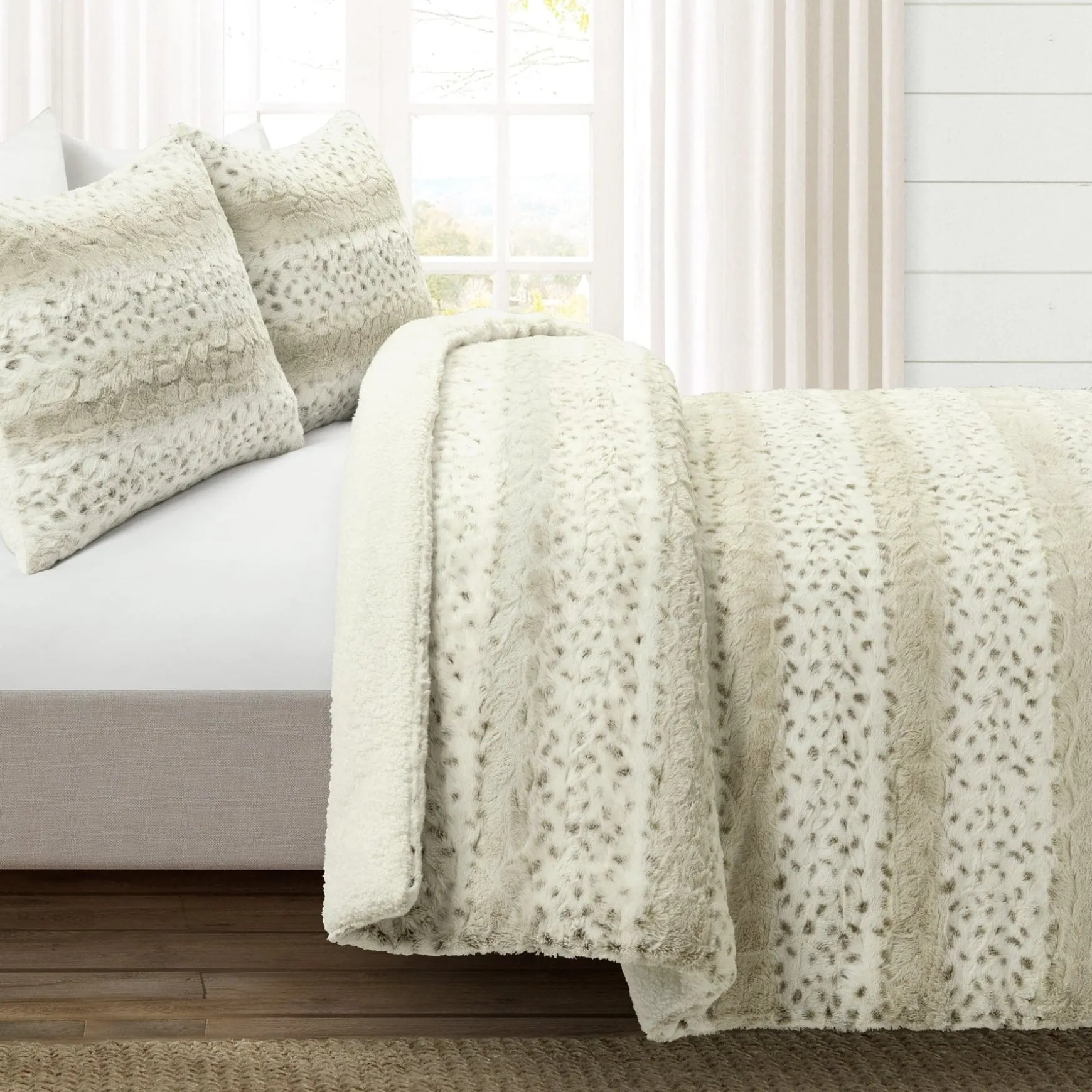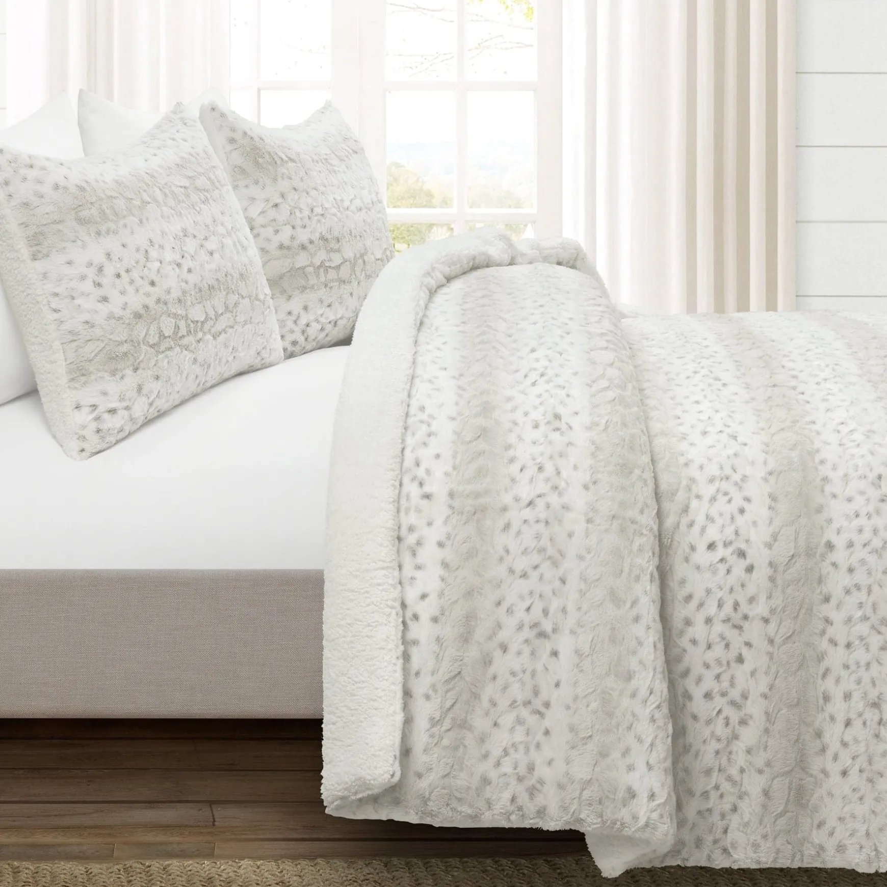 Available in two great color options, the Leopard Textured Faux Fur Comforter 3 Piece Set includes the comforter and two matching pillow shams.