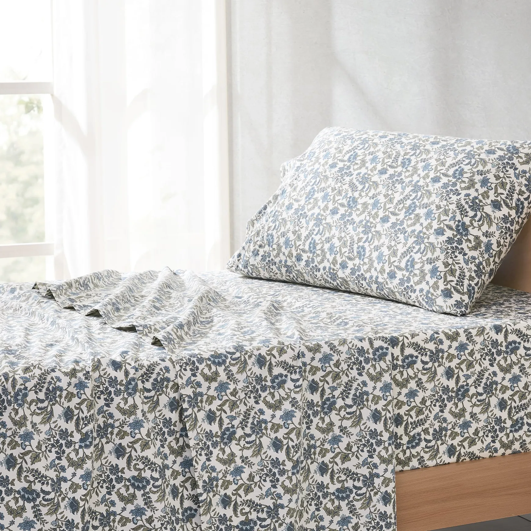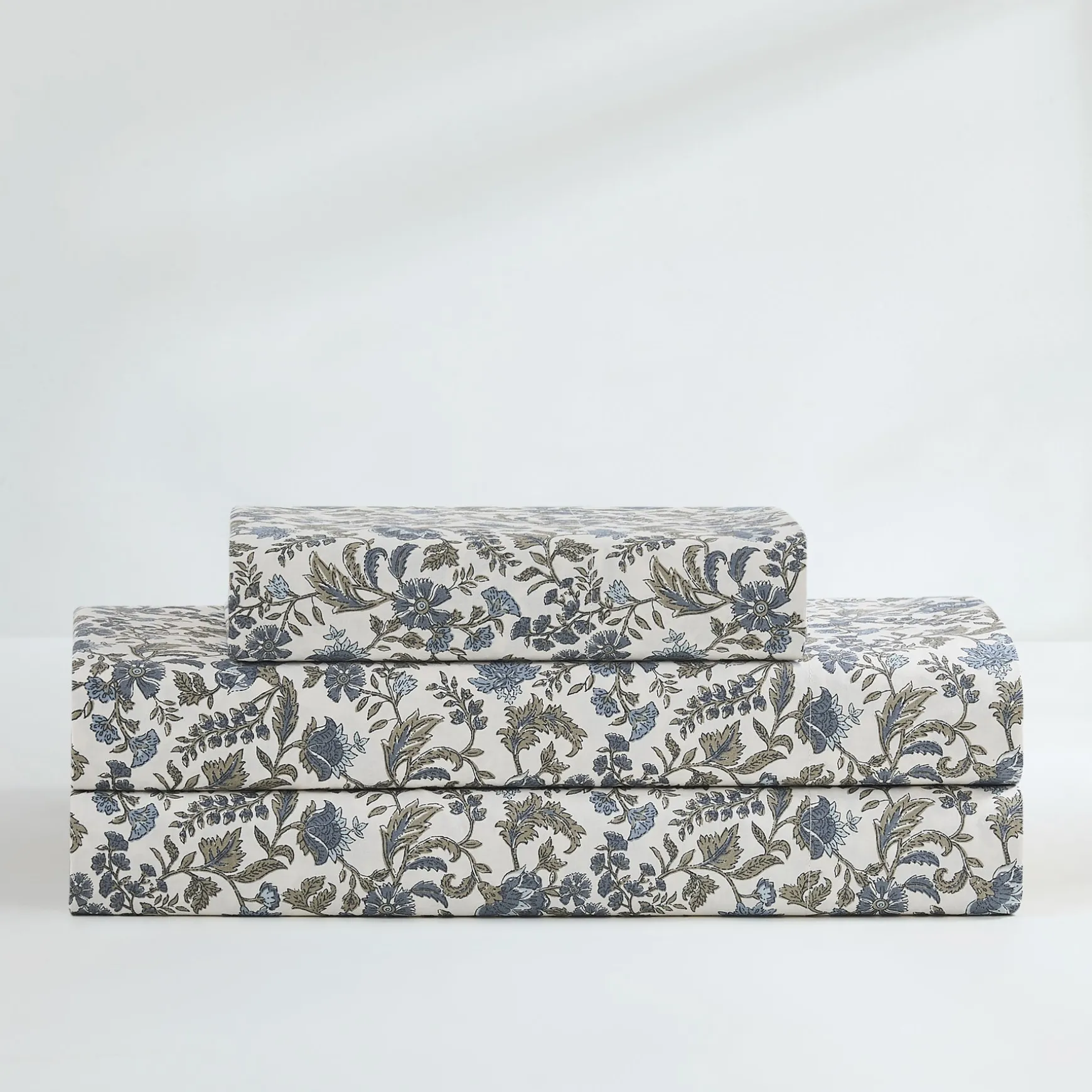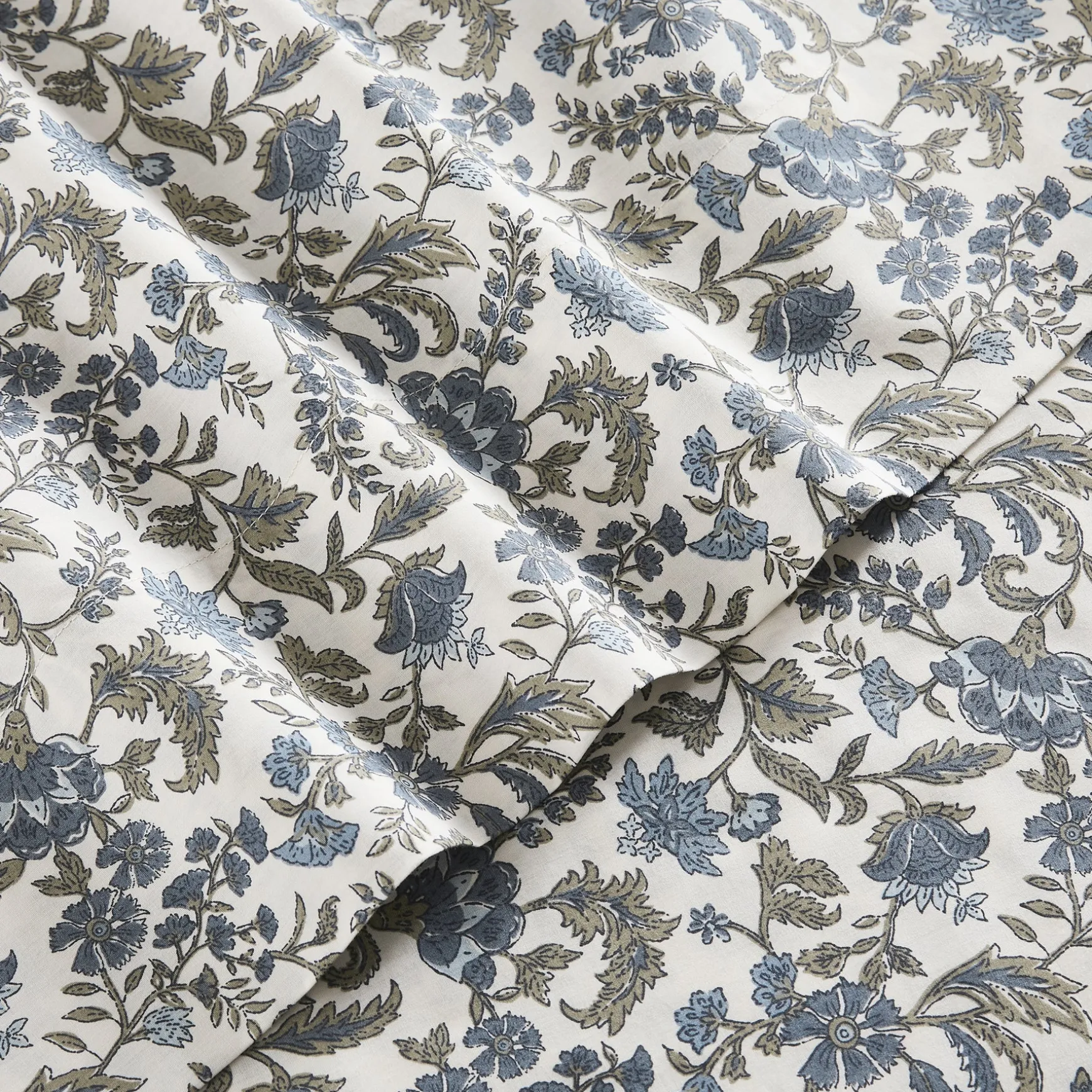 Infuse classic charm into your space with this traditional block print sheet set. You’ll feel like you’ve stepped into a garden with these bed sheets! The classic floral print complements vintage or cottage decor styles. Made with 100% cotton for a light, comfortable feel. This sheet set includes 1 flat sheet, 1 fitted sheet and pillowcases. STANDARD 100 by OEKO-TEX® certified, all components have been tested and certified free from harmful substances. Machine washable for easy care.