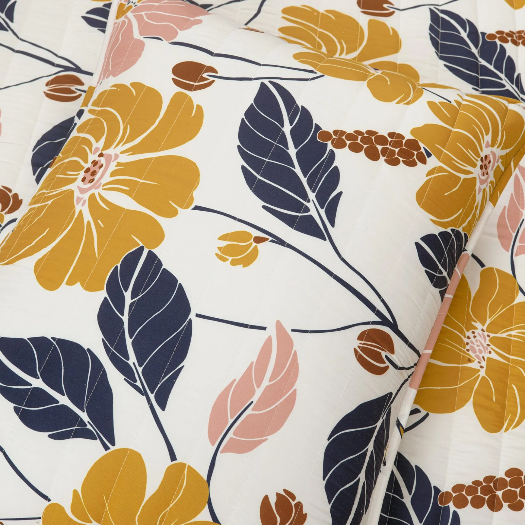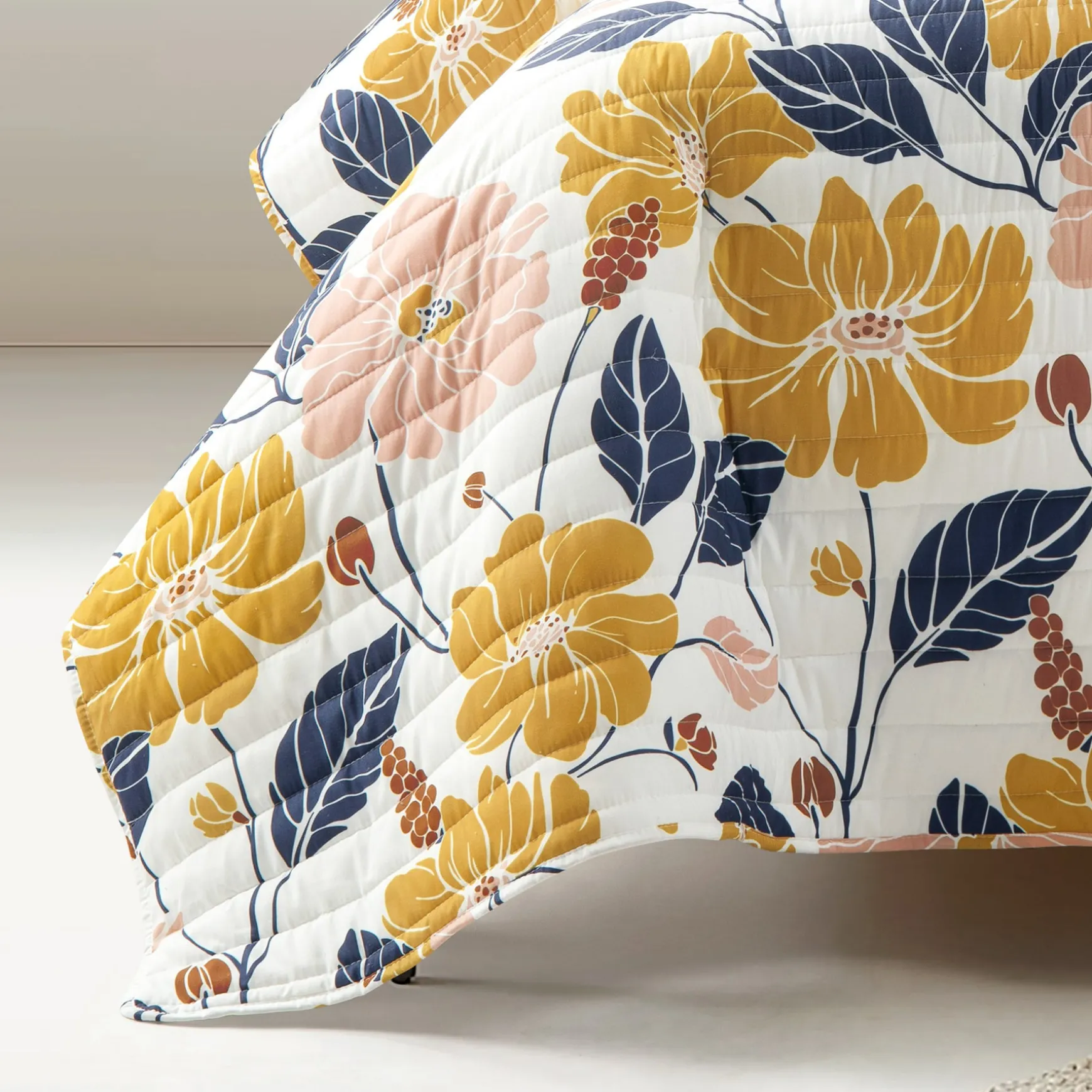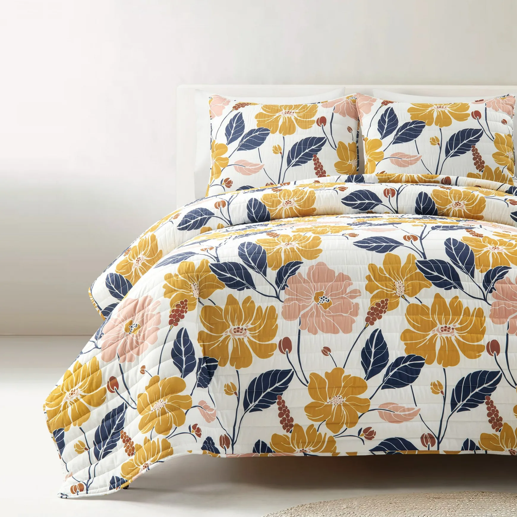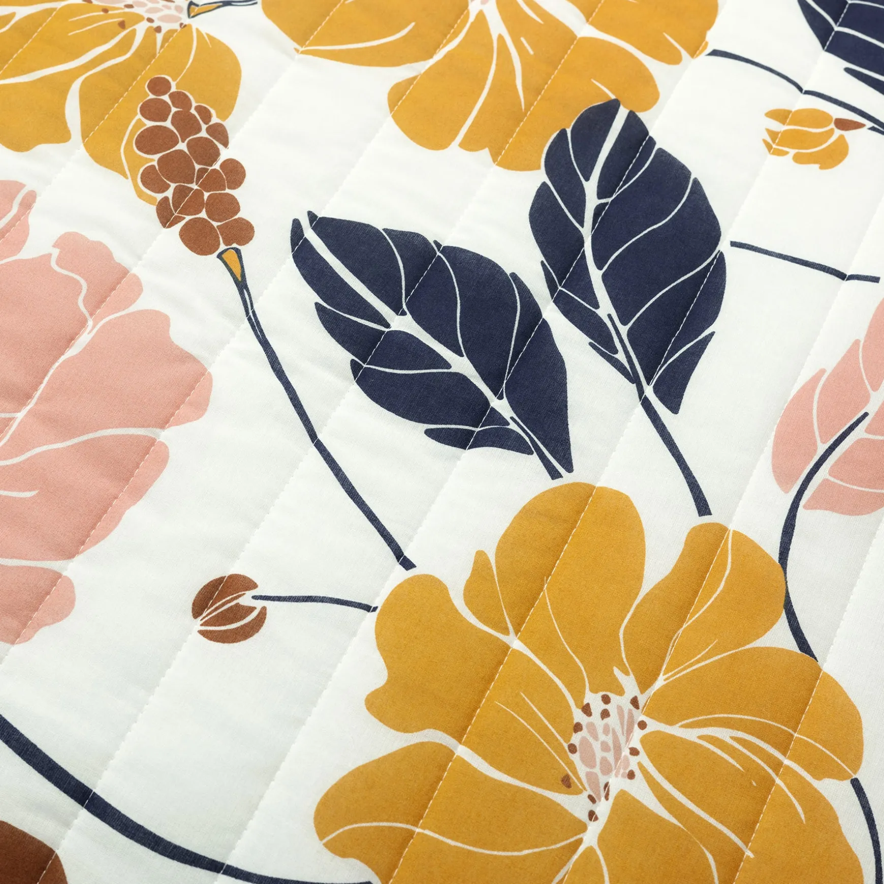 Introduce fun florals to your bedroom with our Pop Art Floral Cotton Quilt Set. Designed with big and bright blooming flowers, this cozy quilt set celebrates the fun and exciting spring season.