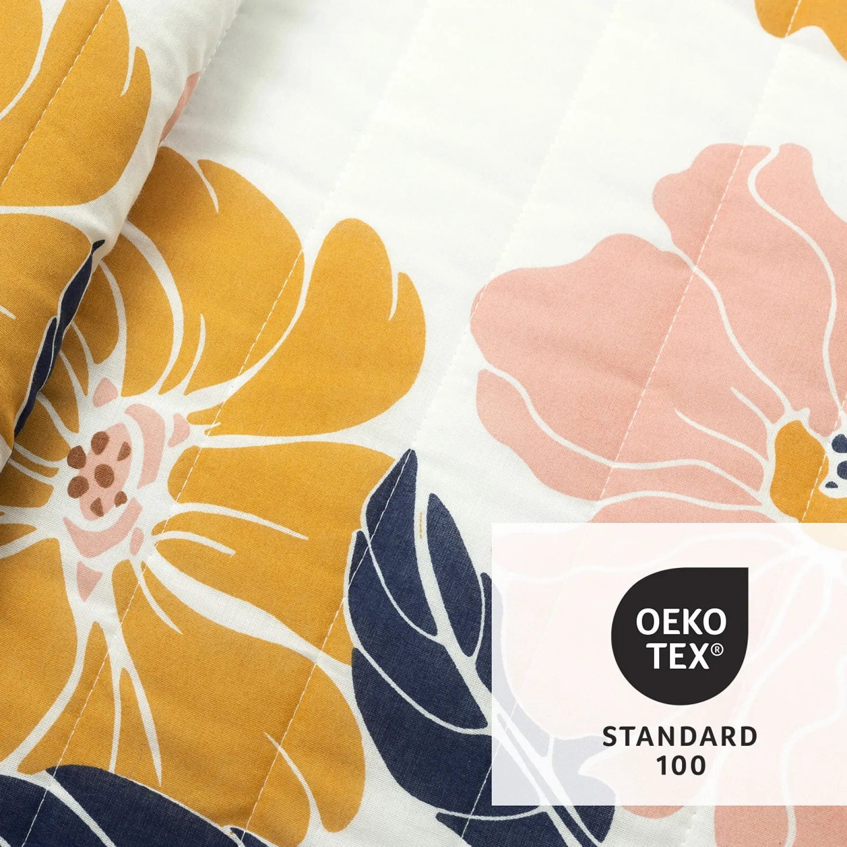 This Pop Art Floral Cotton Quilt Set is STANDARD 100 by OEKO-Tex® certified, which means the fabric, dyes and all components have been tested in an independent laboratory and certified against a list of more than 350 harmful substances.