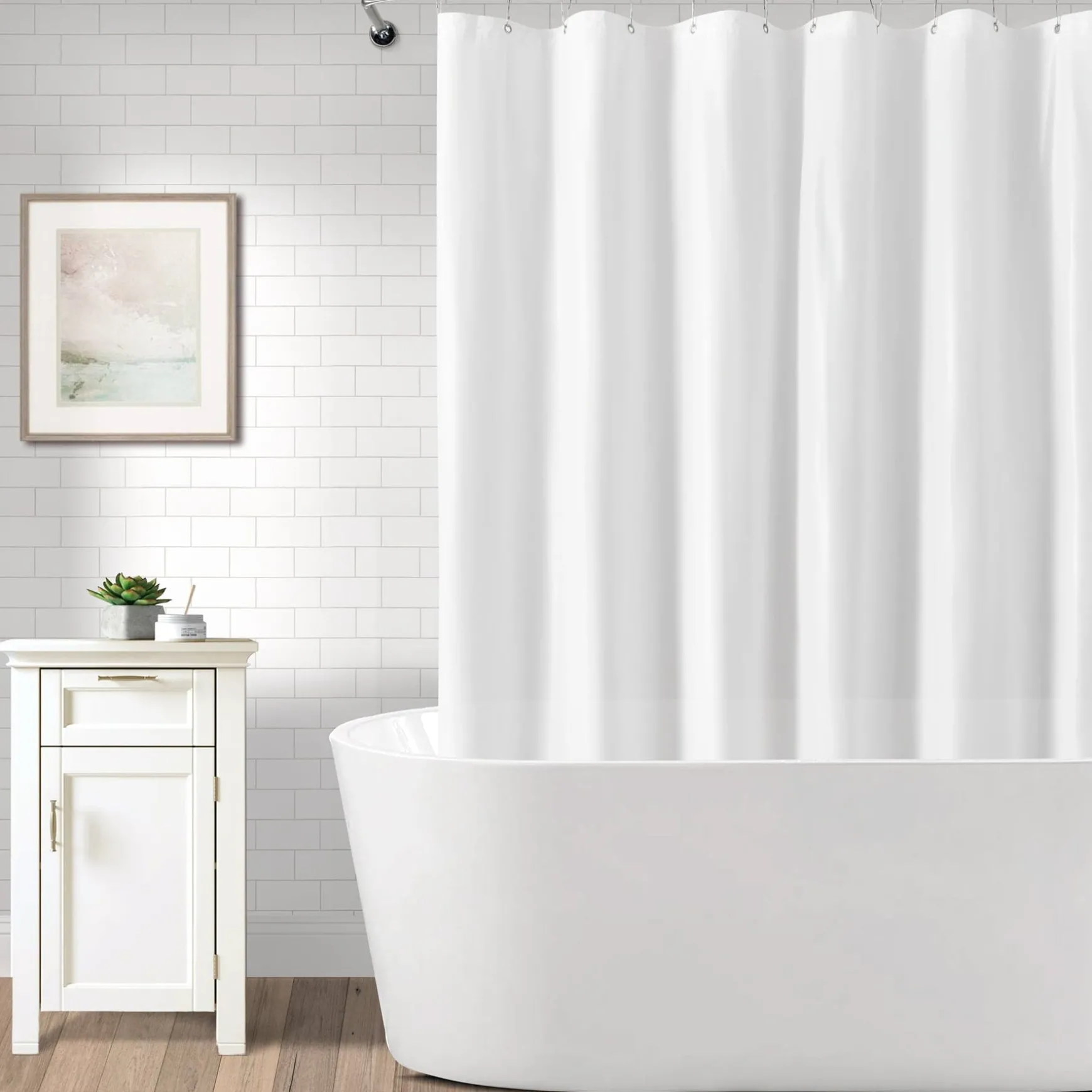 Enjoy a relaxing shower experience knowing your floor will be dry, when you hang our protective Mildew-Resistant Shower Curtain Liner. The mildew resistant material will ensure a long lasting life for your liner. Grommets line the top of the liner for easy hanging.