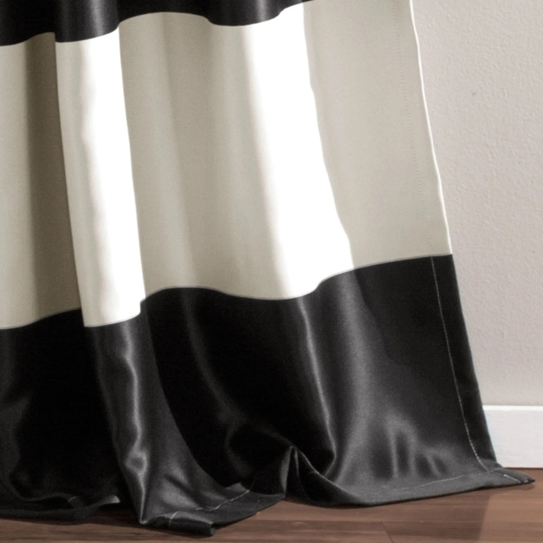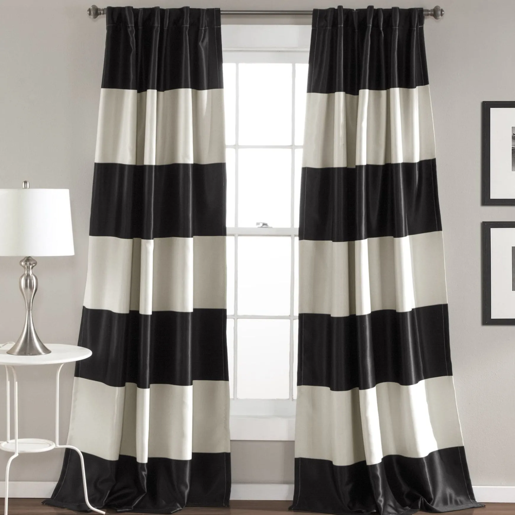 Our Montego Stripe Light Filtering Window Curtain Set features a modern design of thick stripes printed on light blocking fabric.