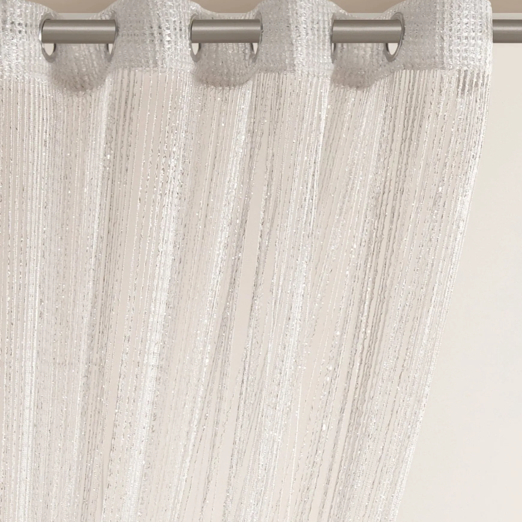 With this Night Sky String Thread Window Curtain Panel, you can decorate a part of your home with captivating shine and also have the ultimate photo backdrop for any occasion. A mix of white and shimmering metallic threads make this impressive visual possible.