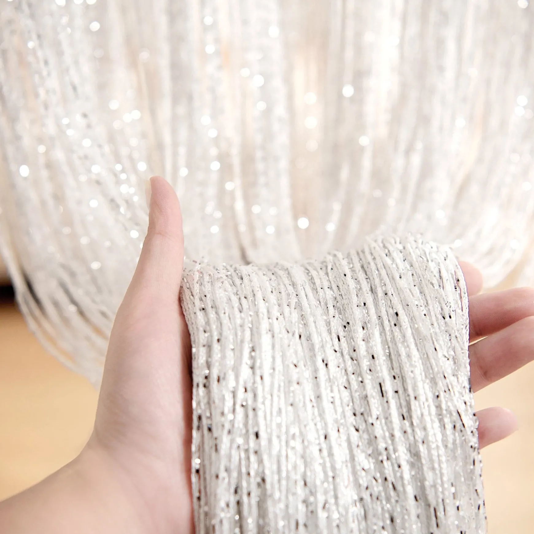 This is more than just a window curtain. These glimmering threads create a panel that can also be styled as a room divider, hanging doorway or even a photo backdrop. With this Night Sky String Thread Window Curtain Panel, there is no other decorative competition. Make any space or event more glamorous simply by hanging this decorative curtain panel.