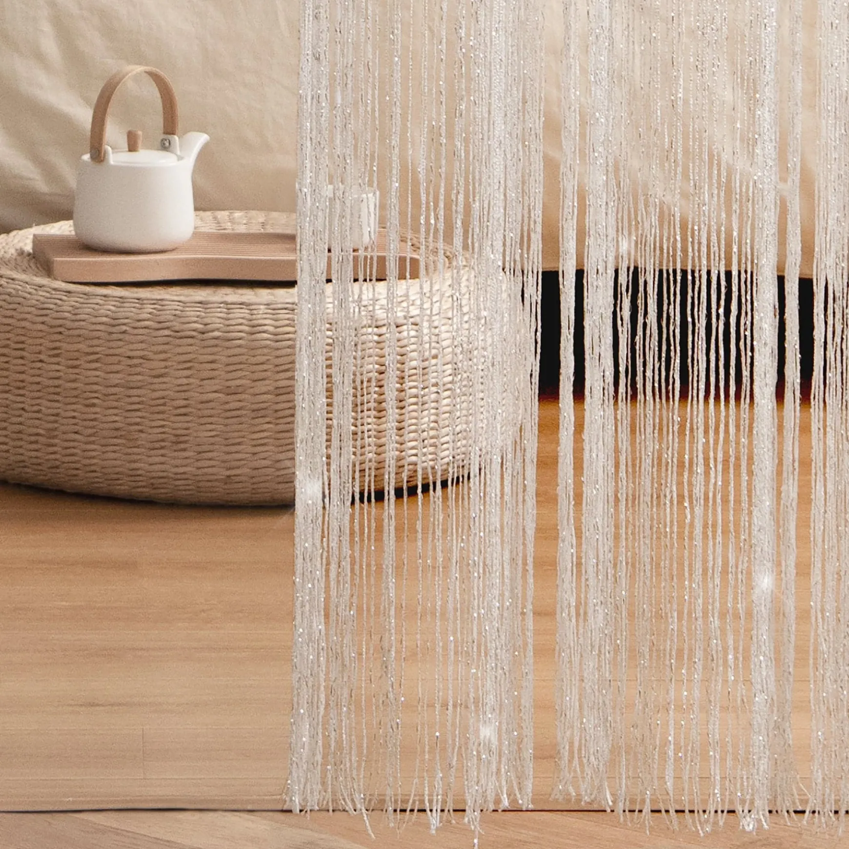 You and your guests will love passing through this Night Sky String Thread Window Curtain Panel as an eclectic doorway alternative or as a hanging room divider. It also makes a great entrance for a walk-in closet.