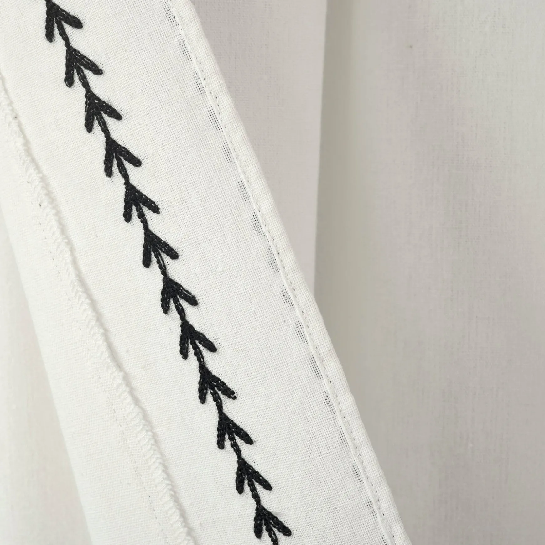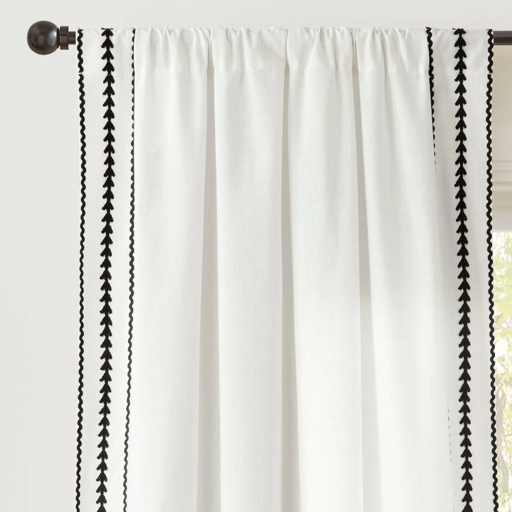 Give your windows sophisticated style and modern flair with our Olivia Ric Rac Embroidery Border Window Curtain Panel. The linen like material is light and airy to keep your space bright and inviting, while still providing ample privacy.
