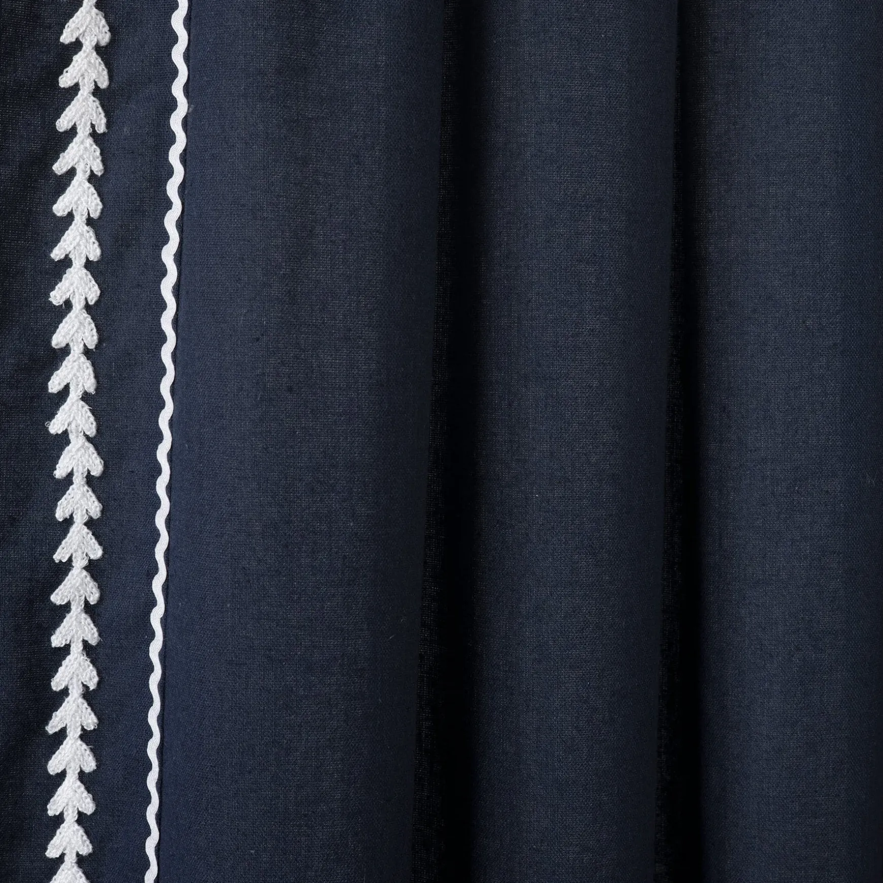 This style is sold by the single panel, so if you need to replace one panel or need an odd number of panels to cover your windows, you won’t have to purchase more than you need. However, you will need to purchase two panels to get the look in the photos. Each Olivia Ric Rac Embroidery Border Window Curtain Panel measures 84 inches in length and 42 inches in width.
