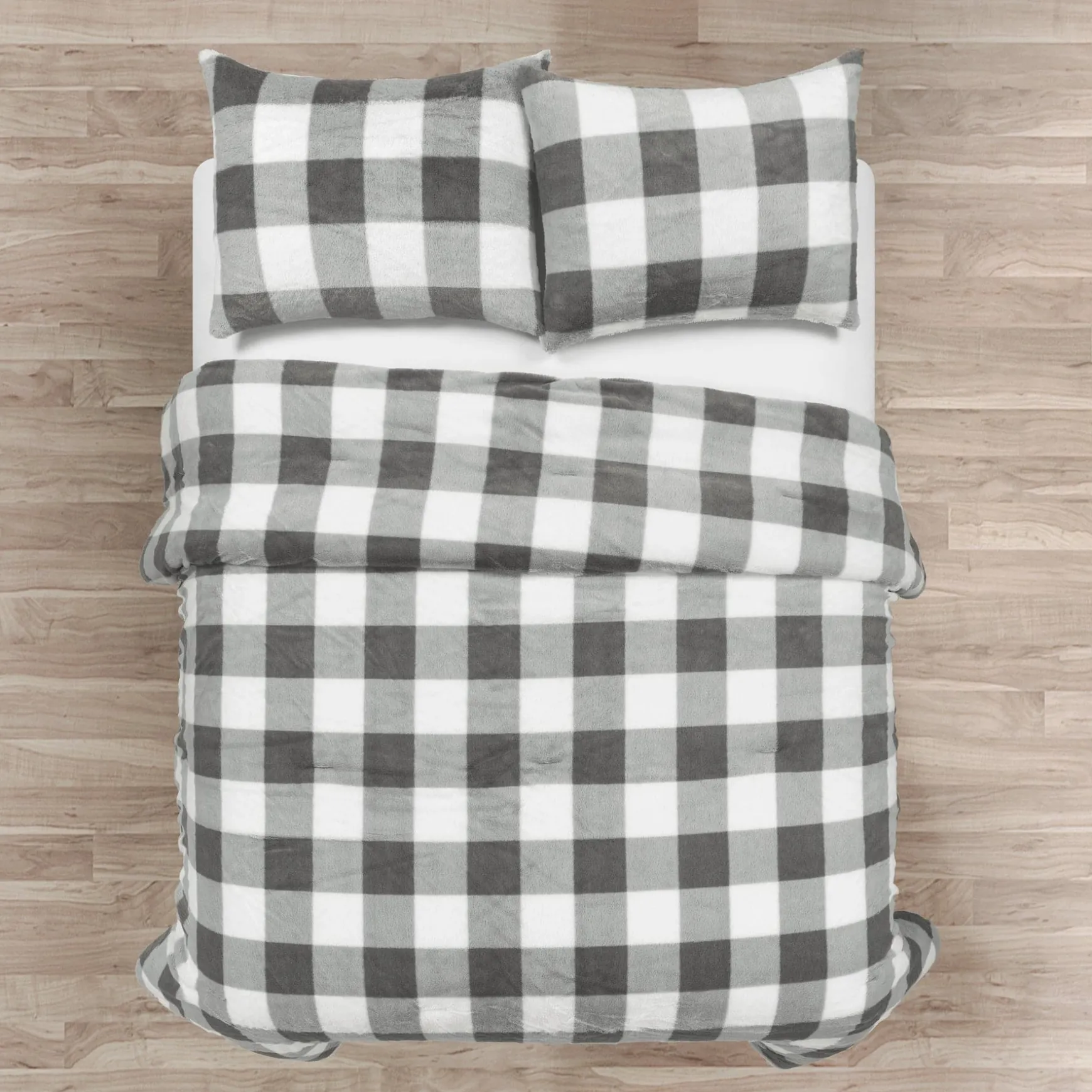 This plush Plaid Ultra Soft Faux Fur All Season Comforter Set comes with the comforter, and matching sham(s). One shame is included in the Twin size, and two shams are included in the larger sizes.