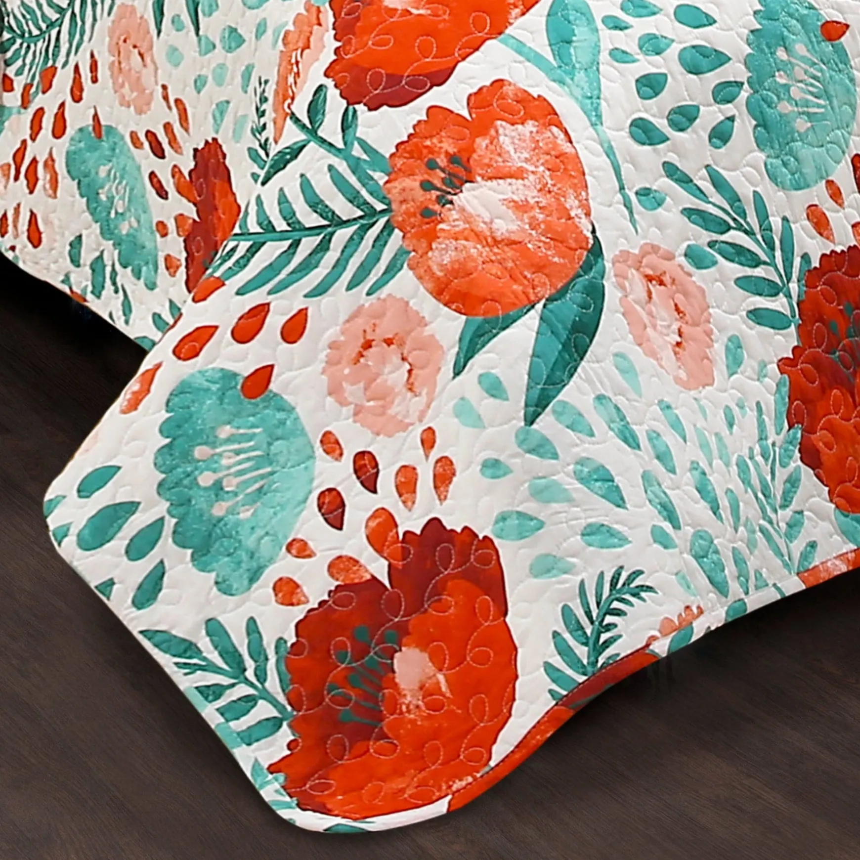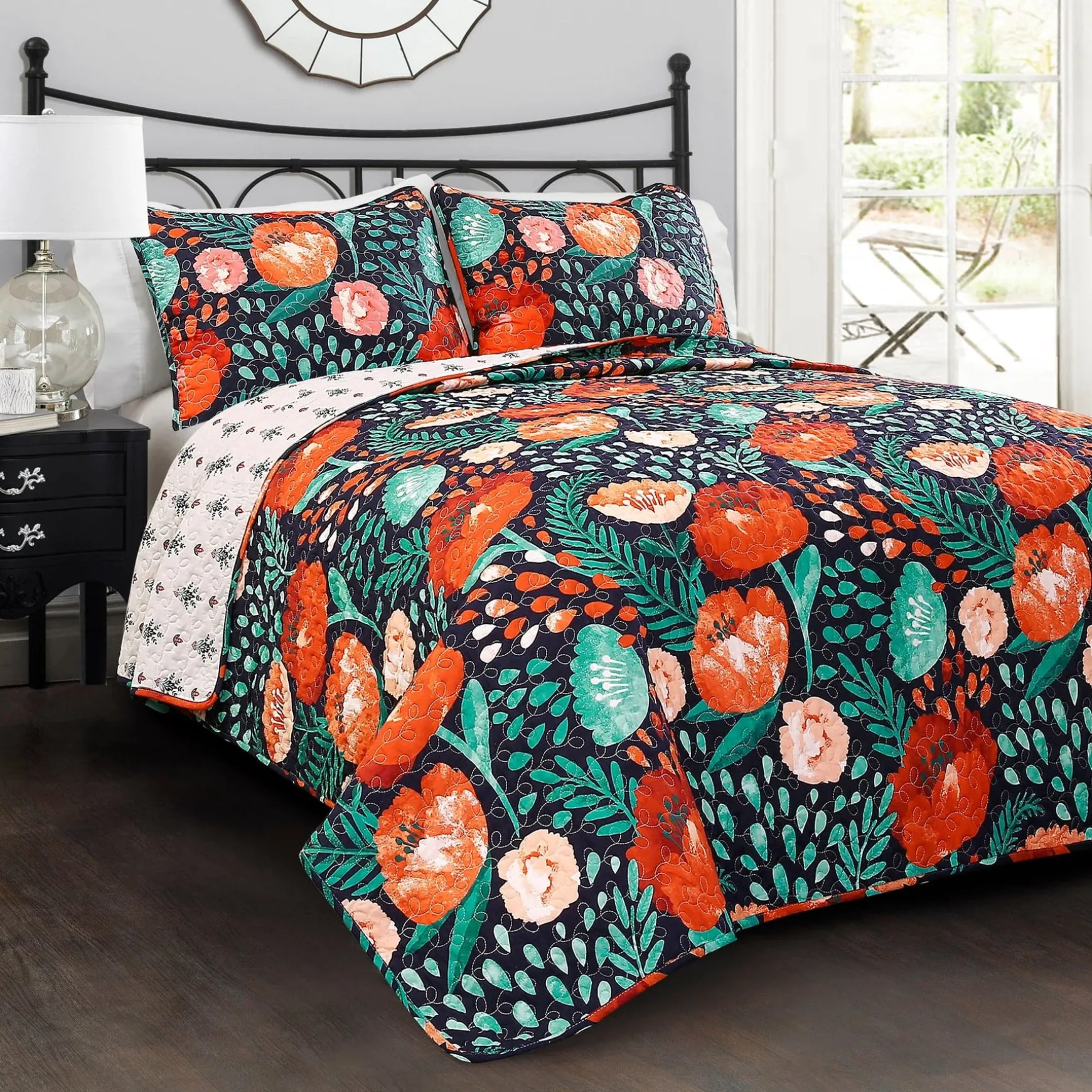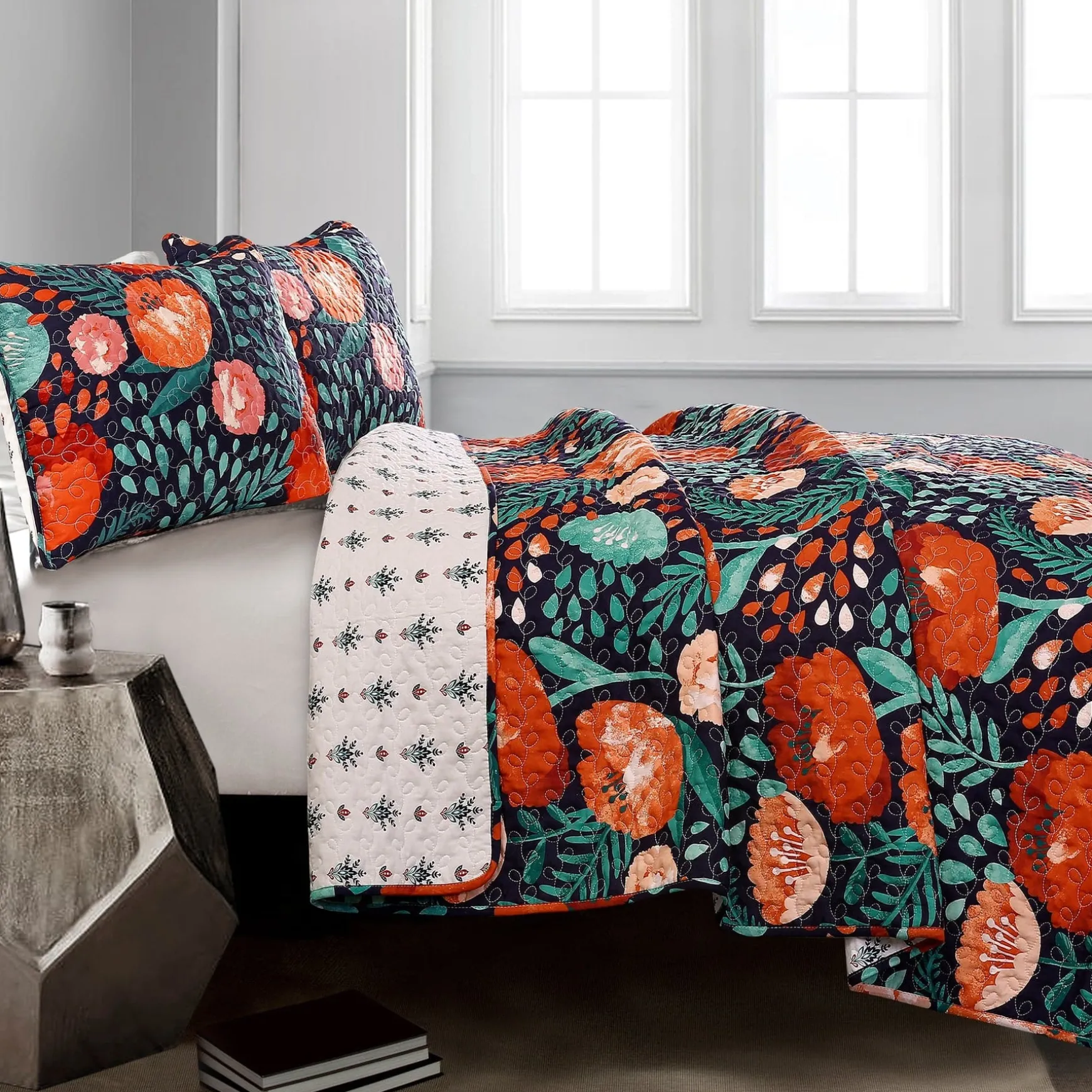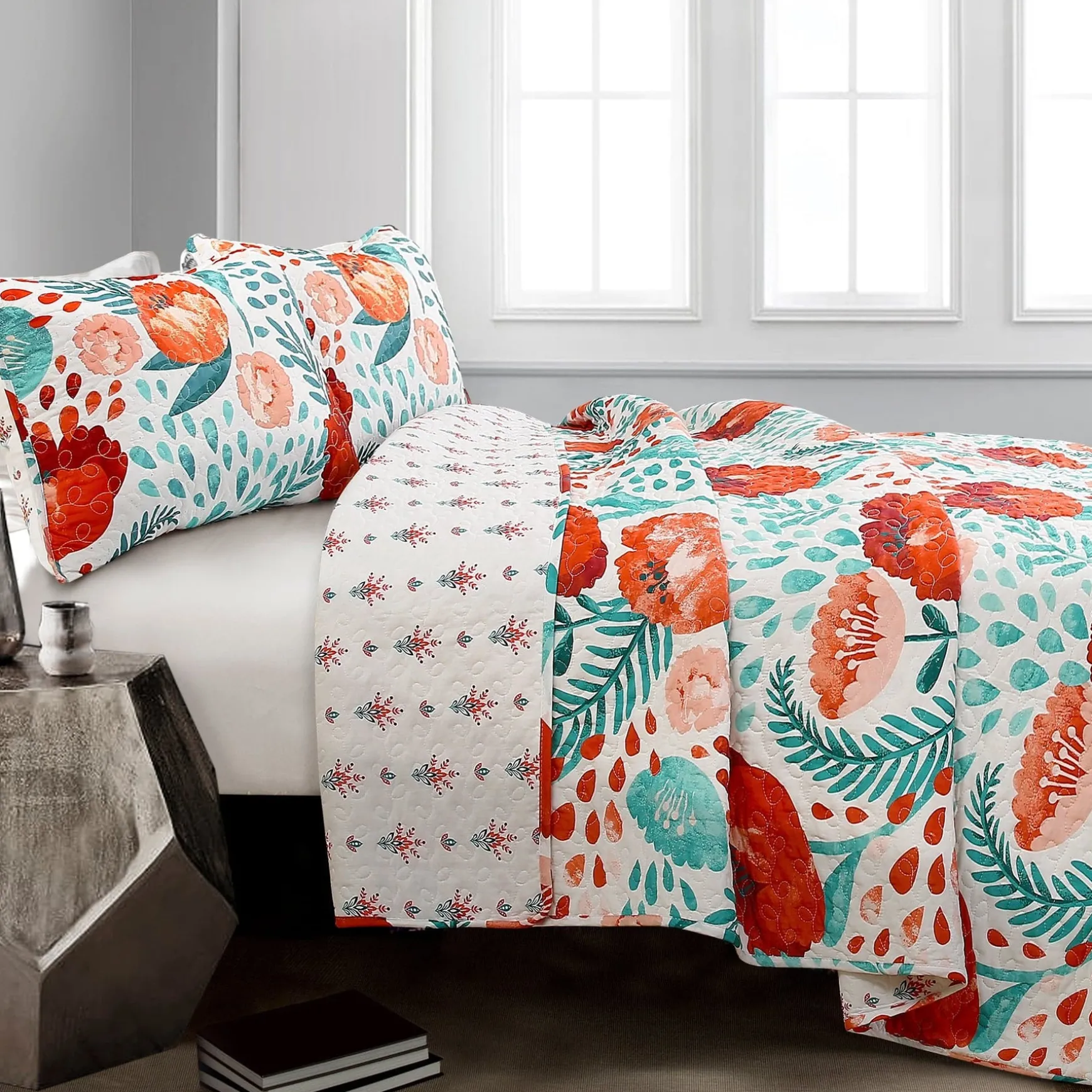 Bring the look of a colorful and thriving garden into your home with this Poppy Garden Quilt 3 Piece Set. The poppies appear to be jumping off the fabric with their vibrant colors. This quilt is sure add life to your bedroom.