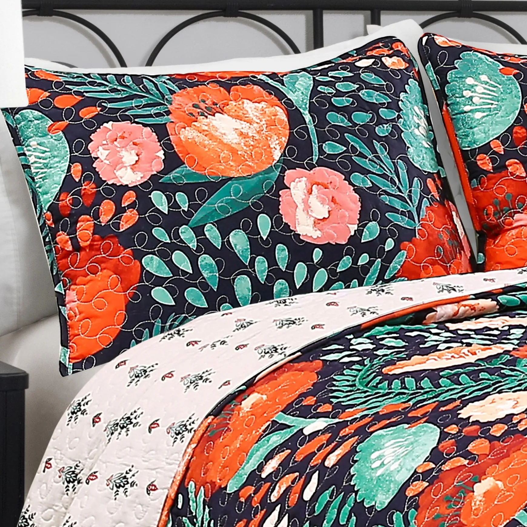 This gorgeous cotton quilt set is perfect for a farmhouse or country style bedroom. The look of this Poppy Garden Quilt 3 Piece Set brings your beautiful flower garden inside.