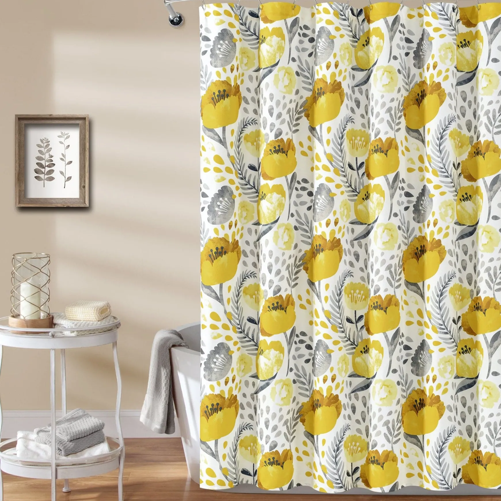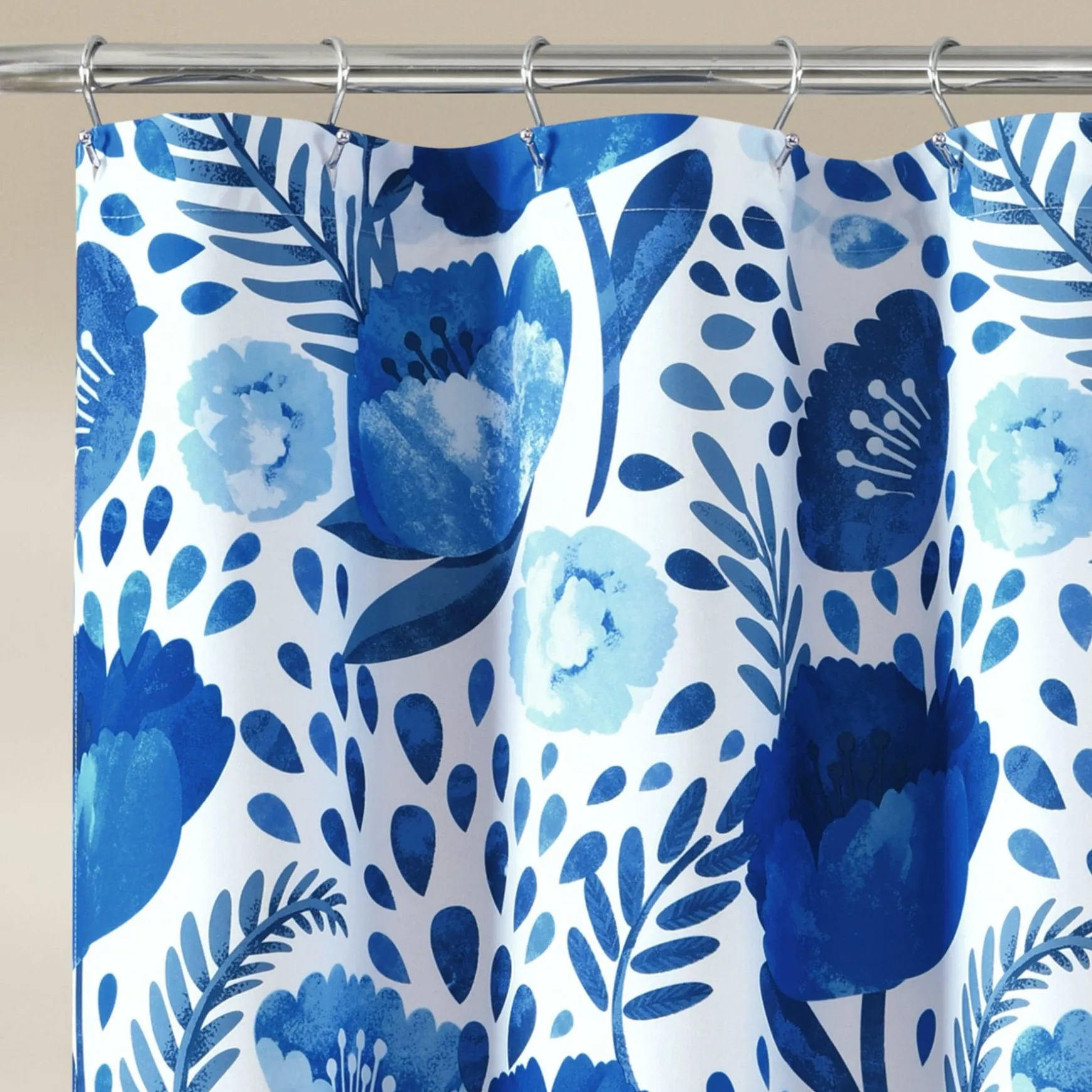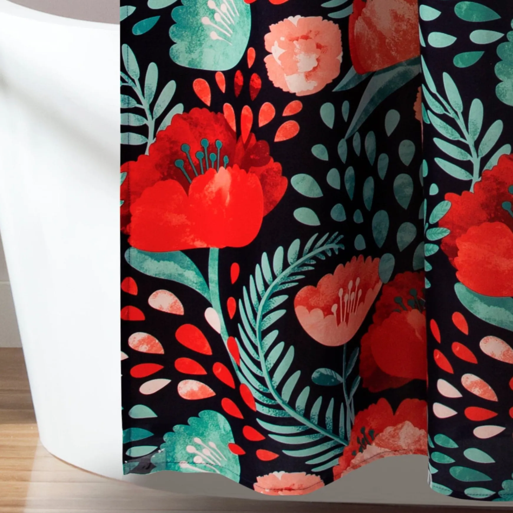 The Poppy Garden Shower Curtain is available in multiple colors to make it easy to match with your existing bathroom decor.