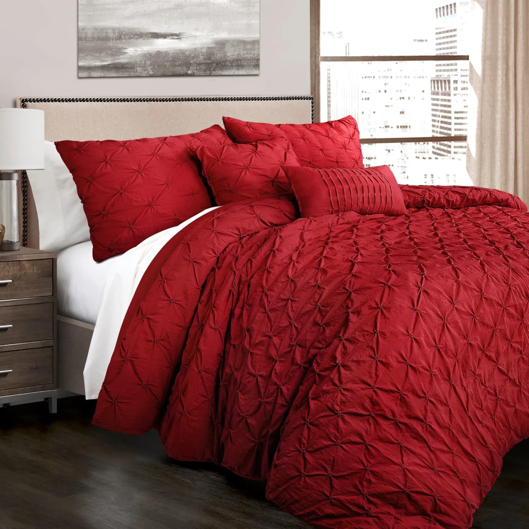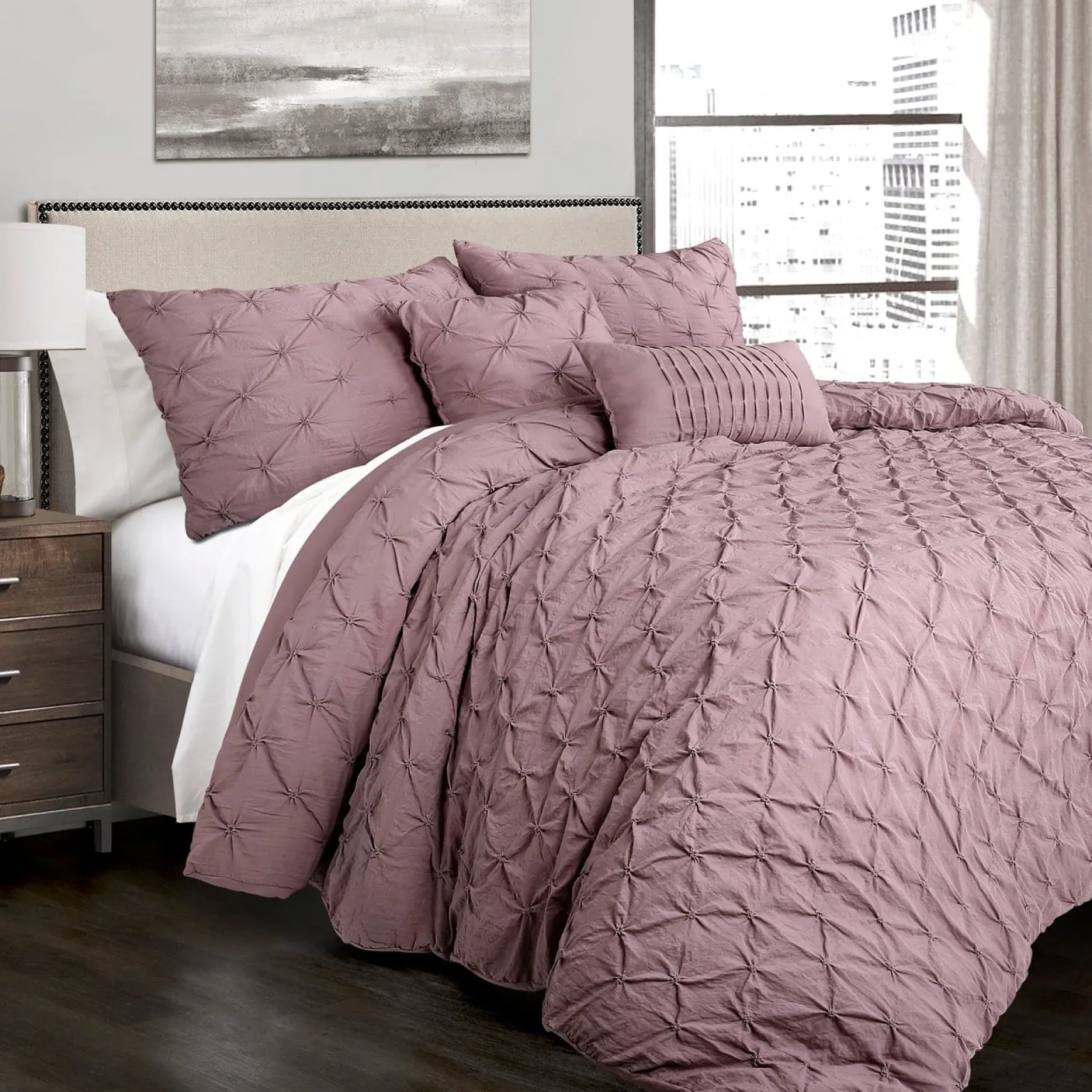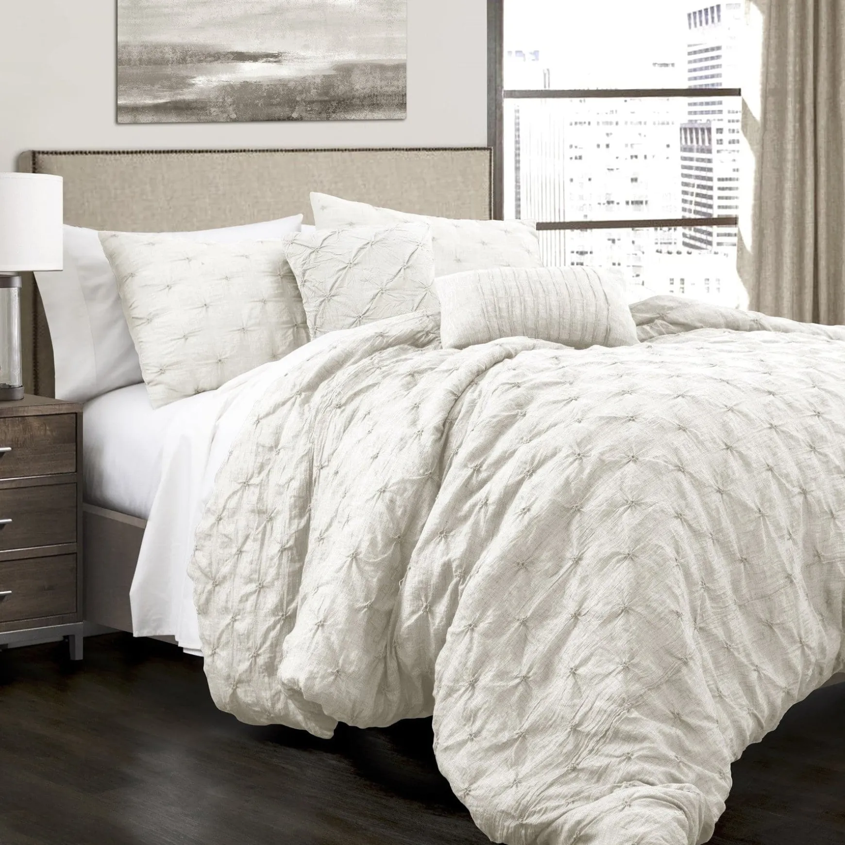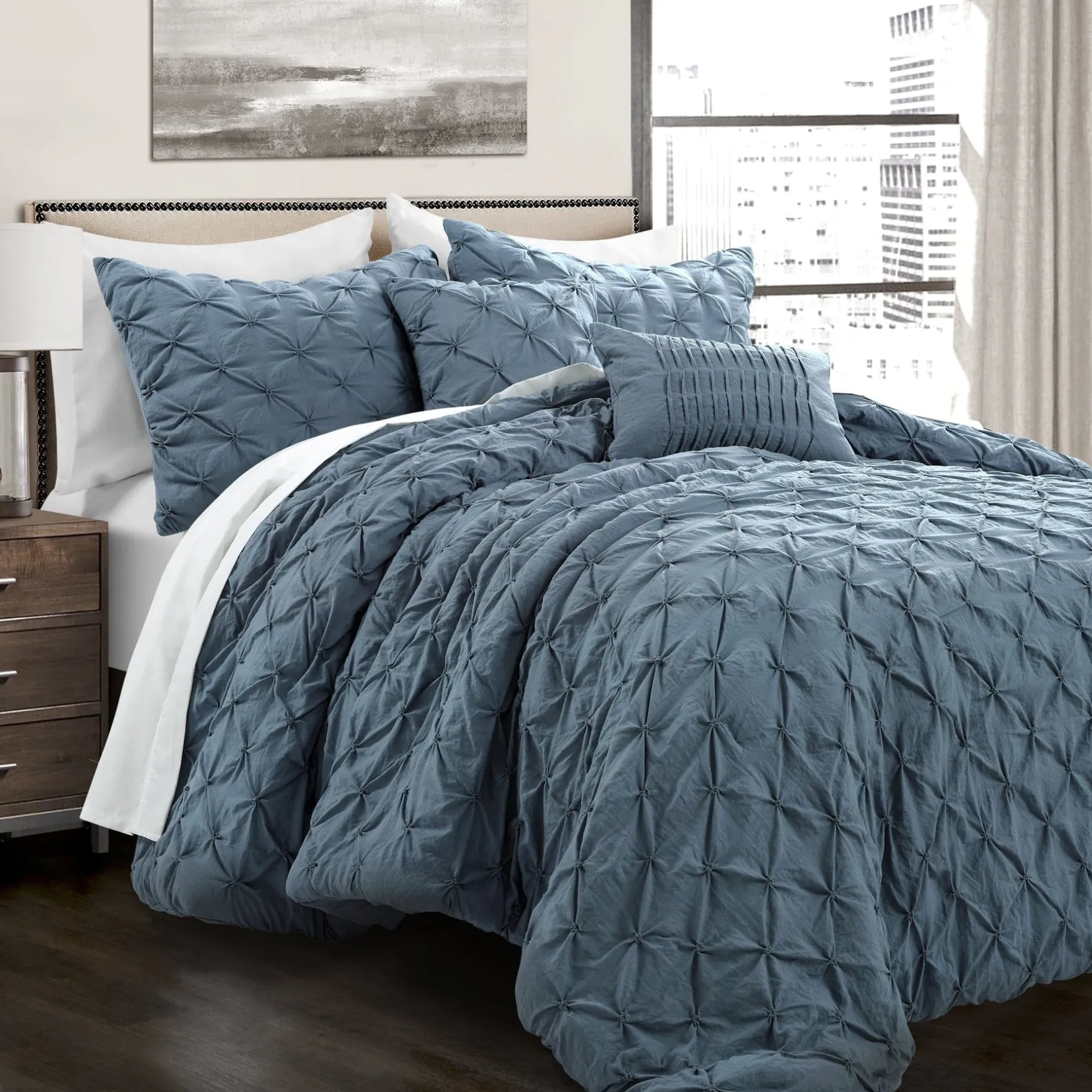 Because the look of the Ravello Pintuck 5 Piece Comforter Set is neutral with its solid color design, you will have no problem fitting it into many design themes from your minimalist style bedroom to a chic or casually coastal bedroom theme. Whatever you choose for your decor around this comforter set will set the tone for the rest of the space.