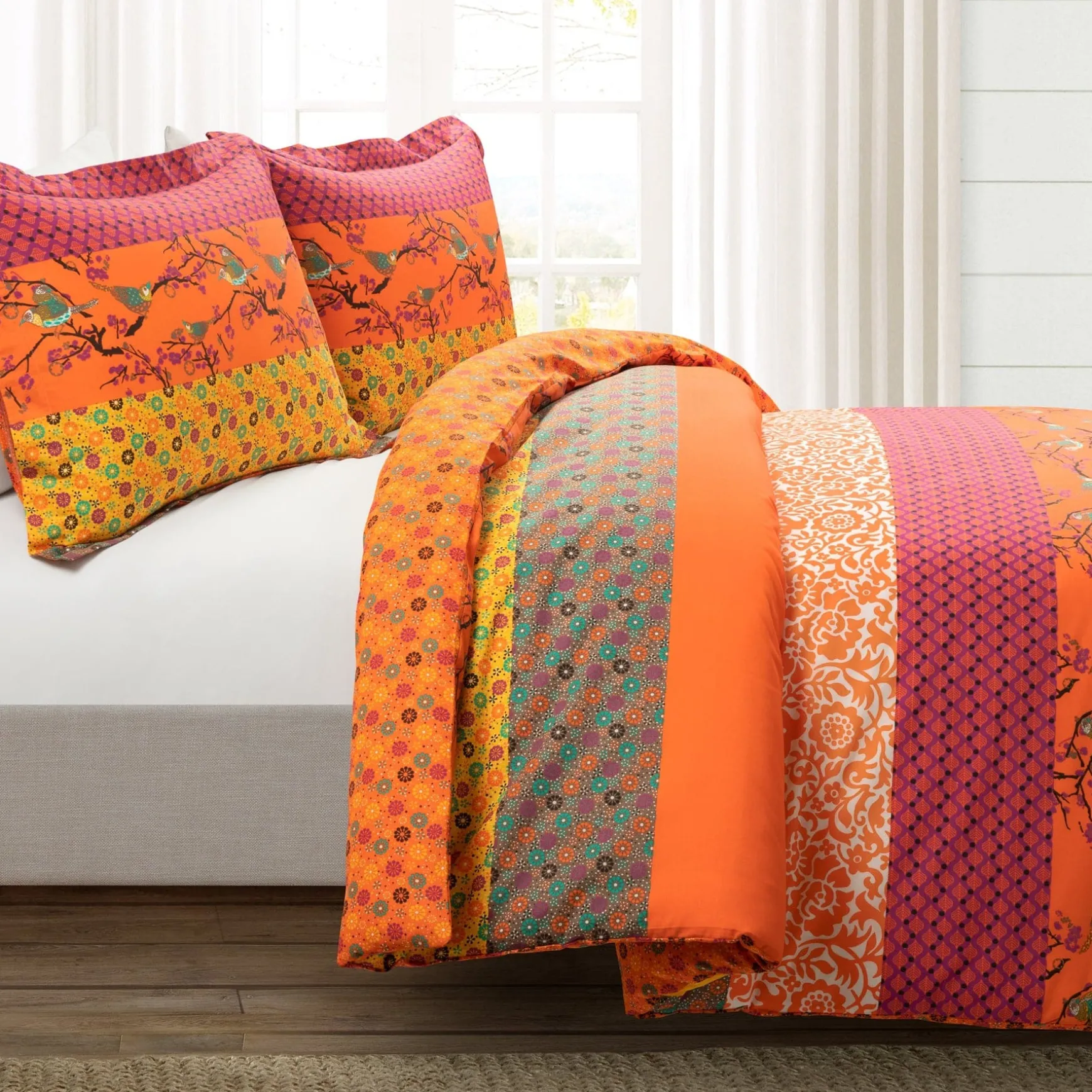 Colors and patterns are two keys to the boho style. Decorate your bold bedroom with the bold stripes of this Royal Empire Reversible Cotton Duvet Cover 3 Piece Set. The reversible nature of this item gives you a second chance to style with a floral design.