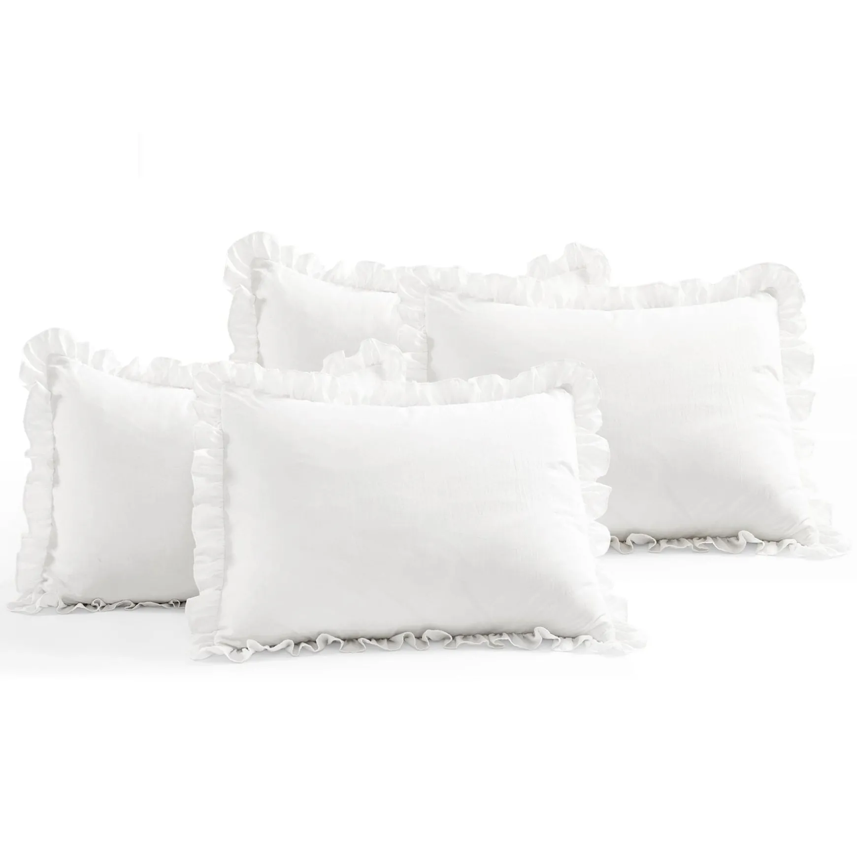 - Pillow Shams: 20″H x 26″W + 2″ Ruffle
