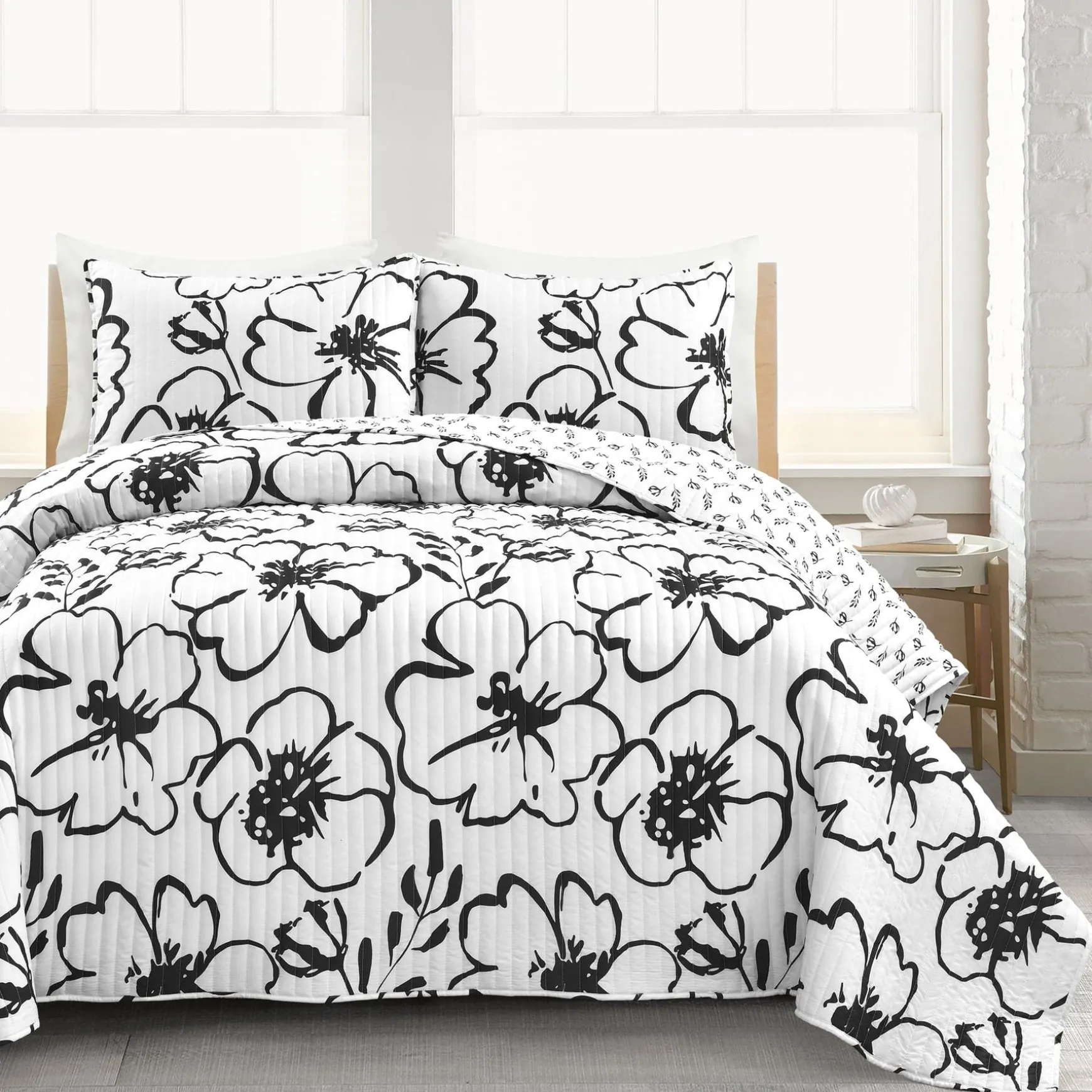 The bold floral pattern printed on the front of this Scandinavian Floral Quilt 3 Piece Set was designed to offer a look you won’t find anywhere else. The reverse side of this quilt set features a circular pattern of leaves and flowers on a white background, allowing you the opportunity to change the feel of your room in an instant. Simply flip over the quilt and/or shams for a whole new look.